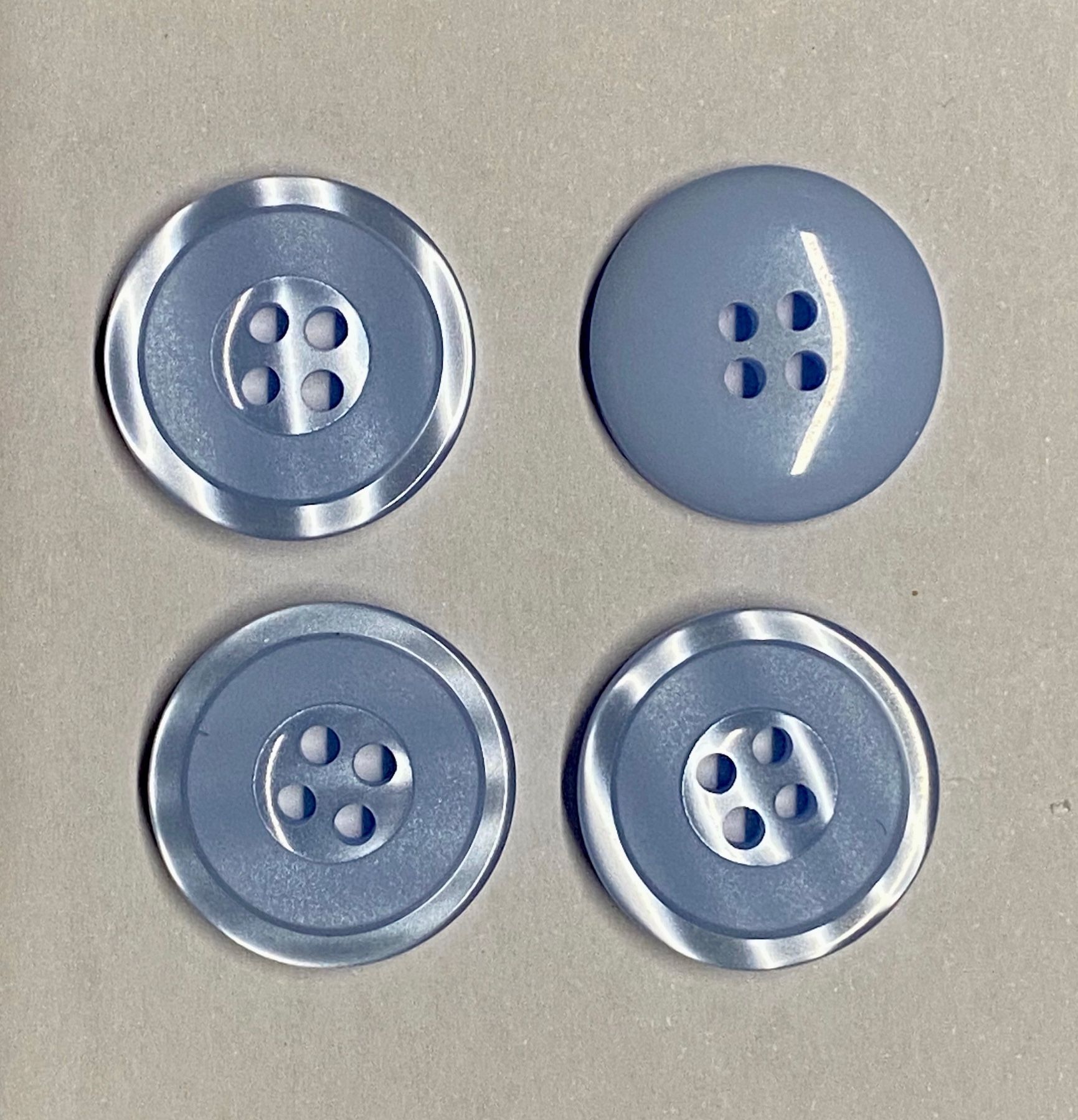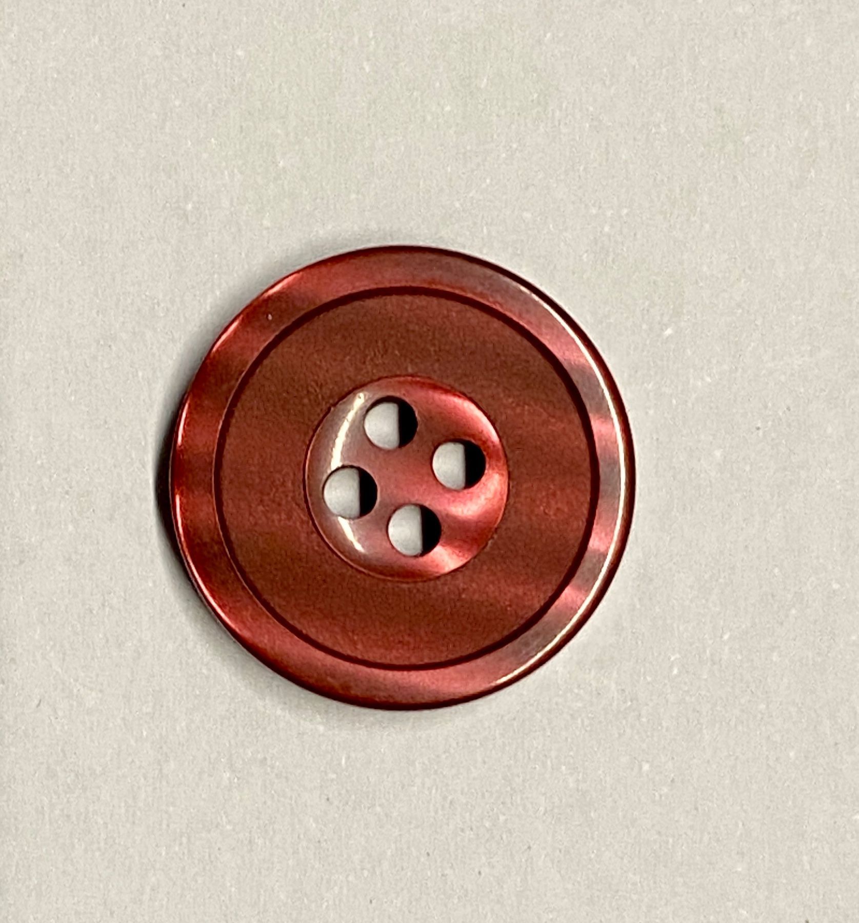 Innen und Außenring mit Perlmutteffekt - 4-Loch Knöpfe blau oder rot; Innen u. Außenring mit Perlmutteffekt. Duchmesser ca. 20 mm Befestigung 4-Loch Wir verkaufen diesen Knopf in Packungen zu ca. 10 Stück