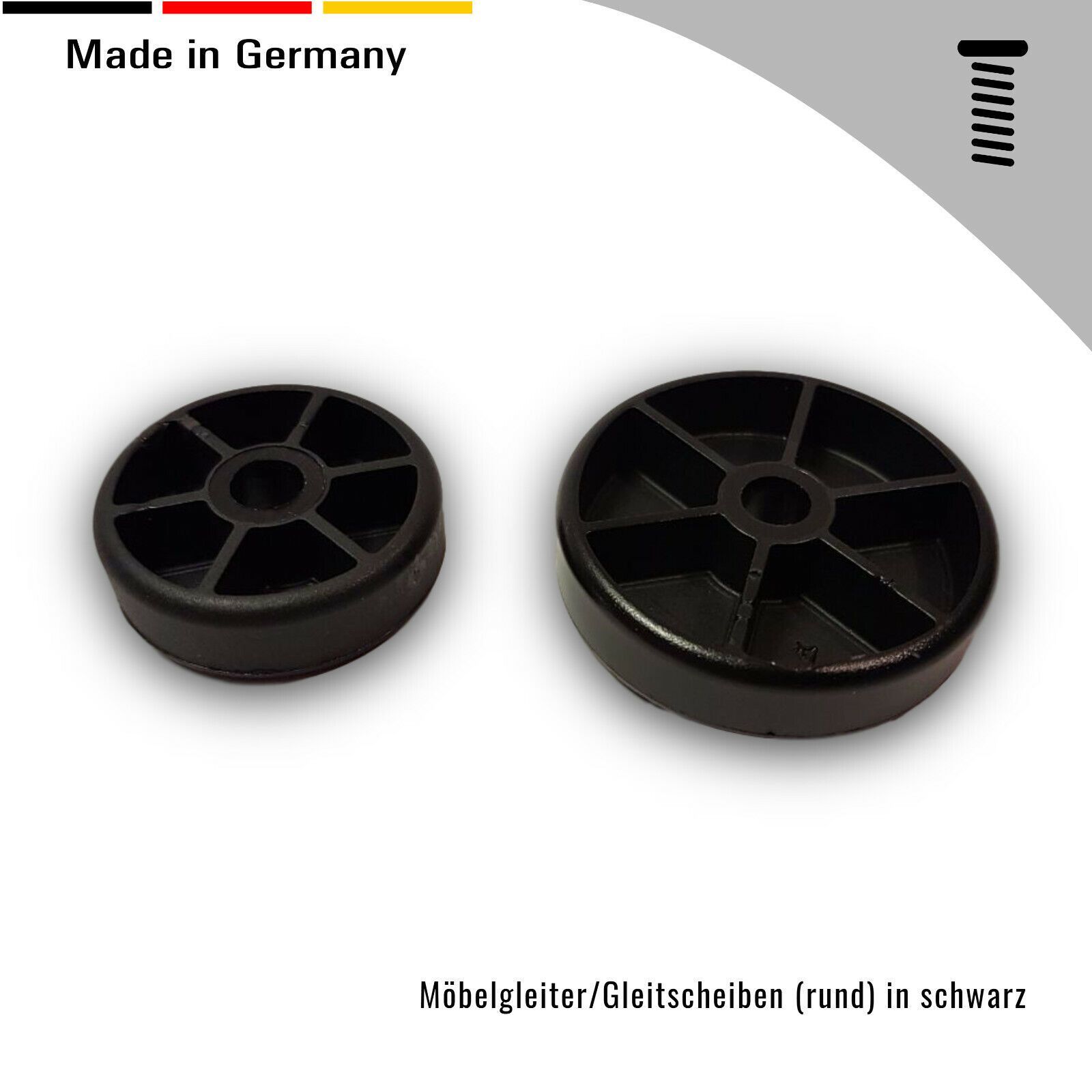4 Möbelfüße Polsterfüße Gleitscheiben für Möbel, 30 + 40 mm, Schwarz Mit Bohrung für Senkkopfschraube Abmessungen: D x H x d = Außendurchmesser x Höhe x Bohrung Material: Kunststoff PA Farbe: Schwarz Entdecken Sie auch unsere anderen Angebote Filzgleiter, Möbelfüße, Unterlegscheiben, und vieles mehr