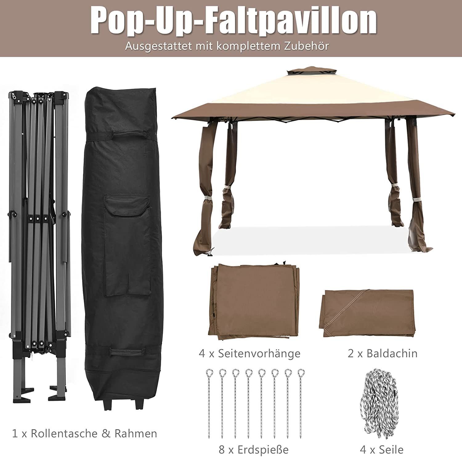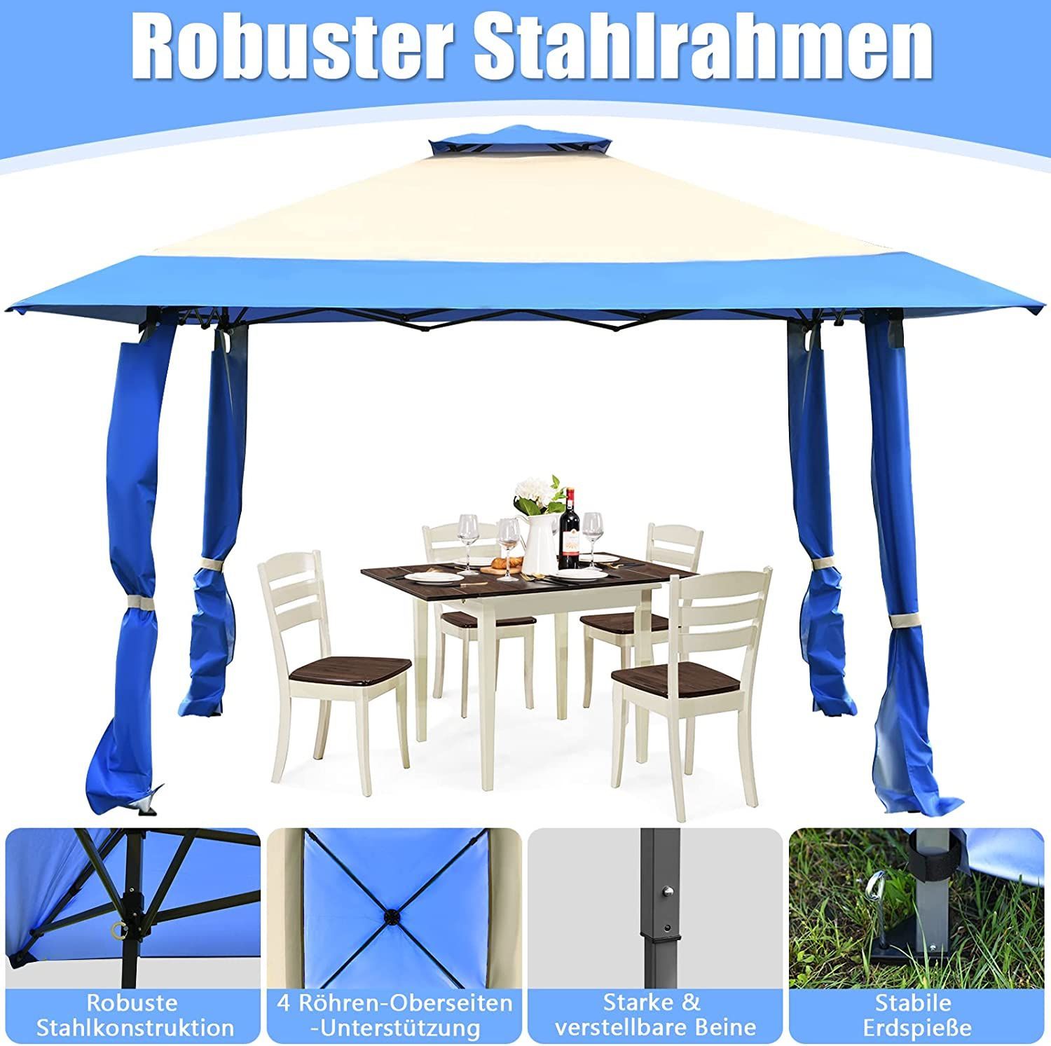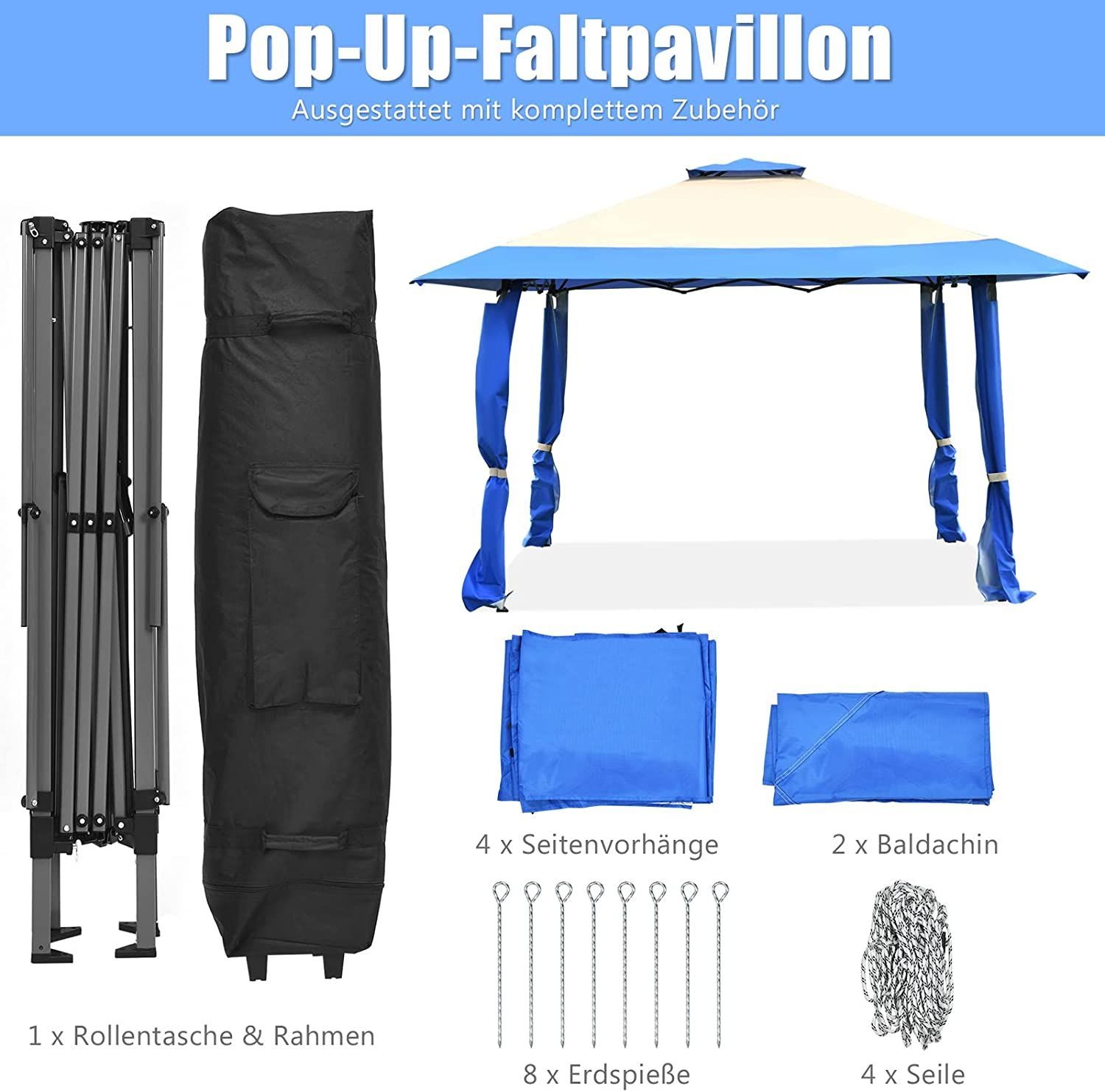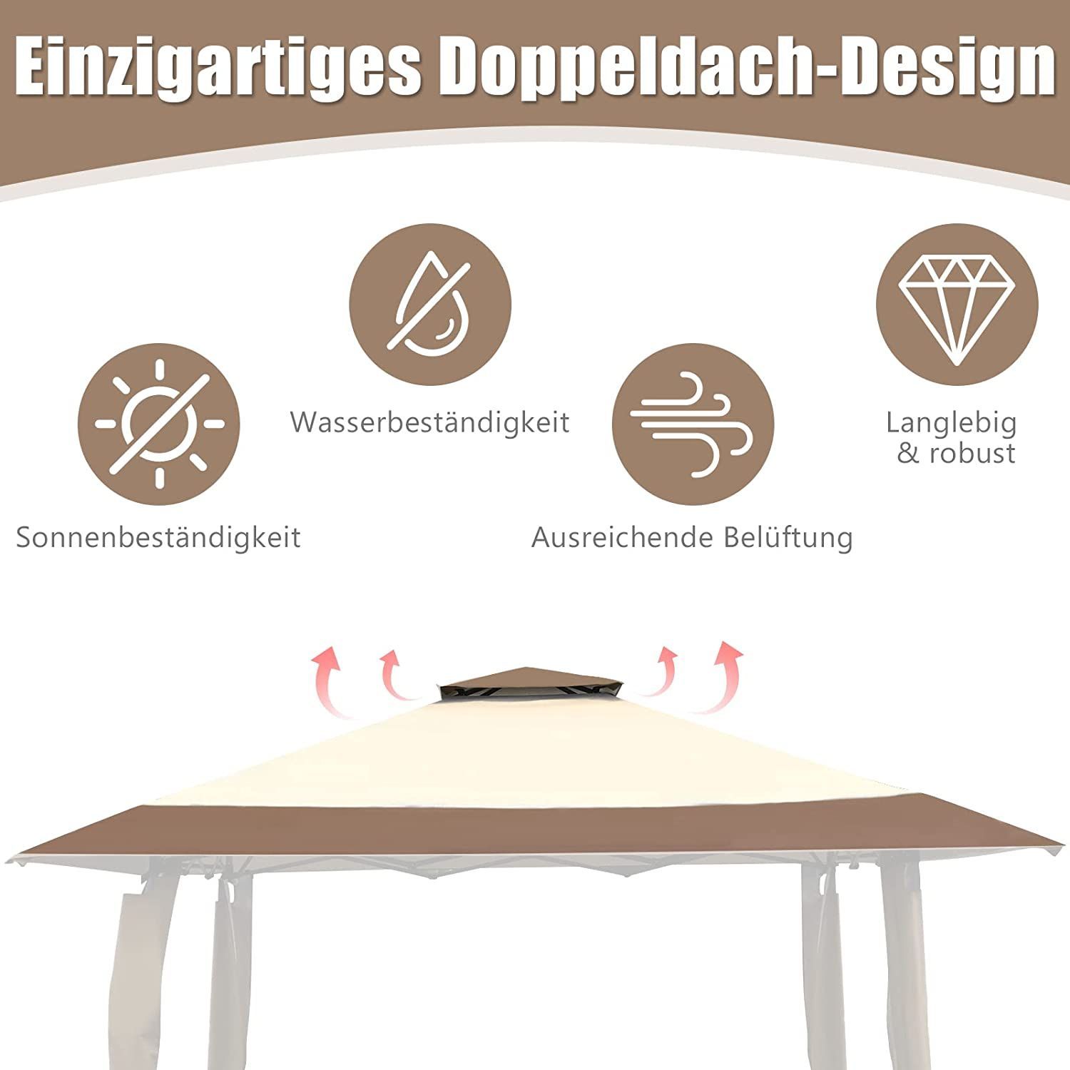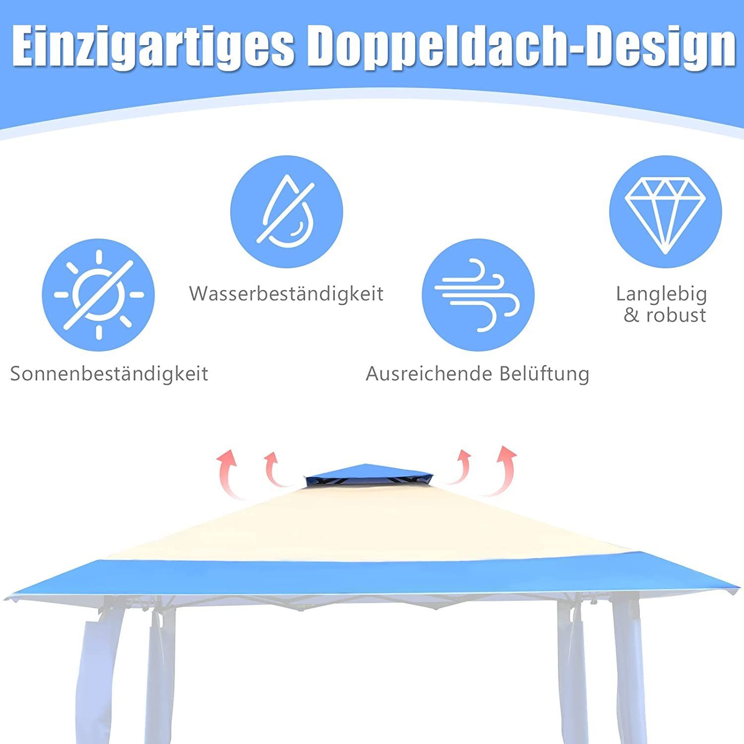 4 m x 4 m Pavillon mit Doppeldach, Partyzelt aus Oxford-Gewebe, Metall Gartenpavillon