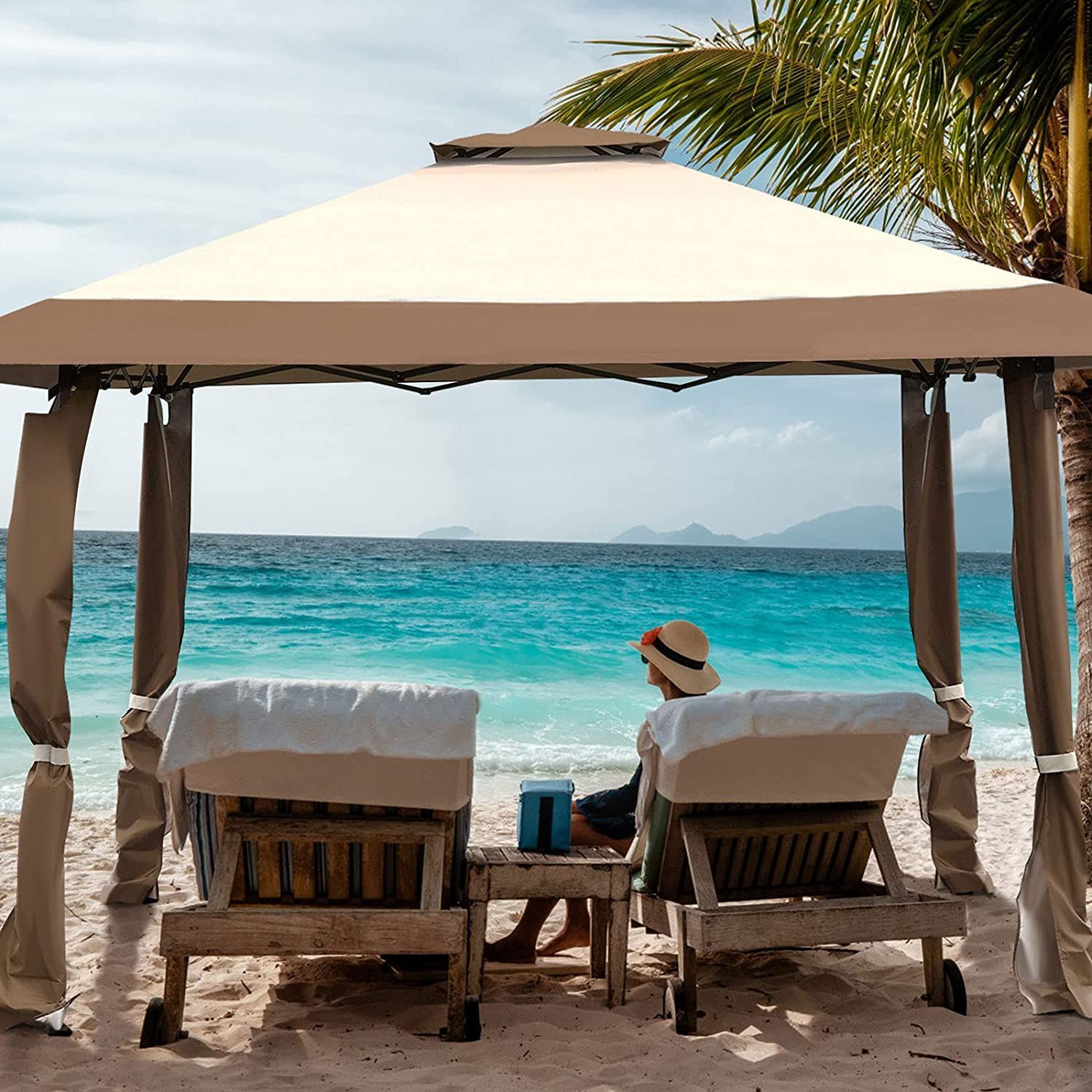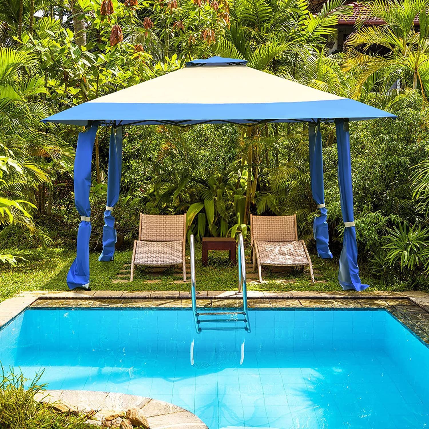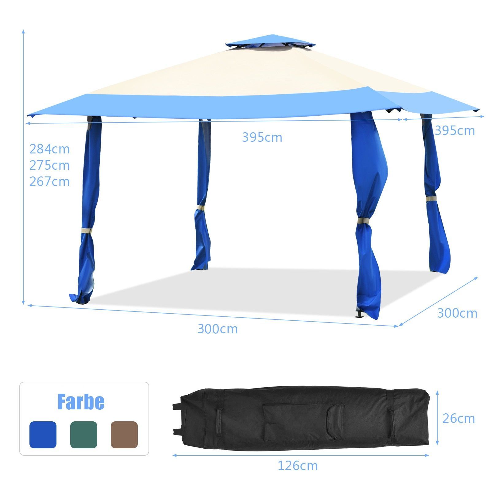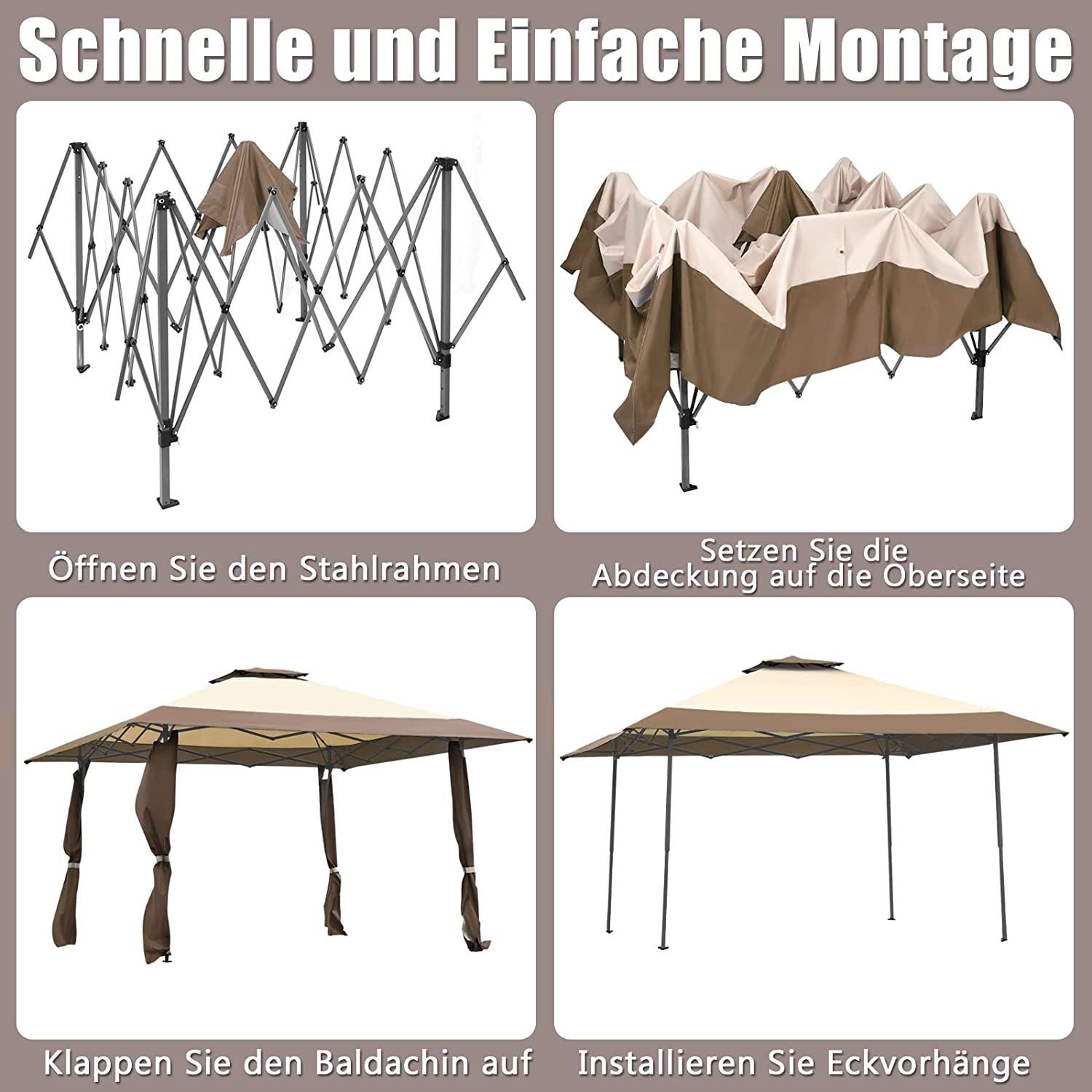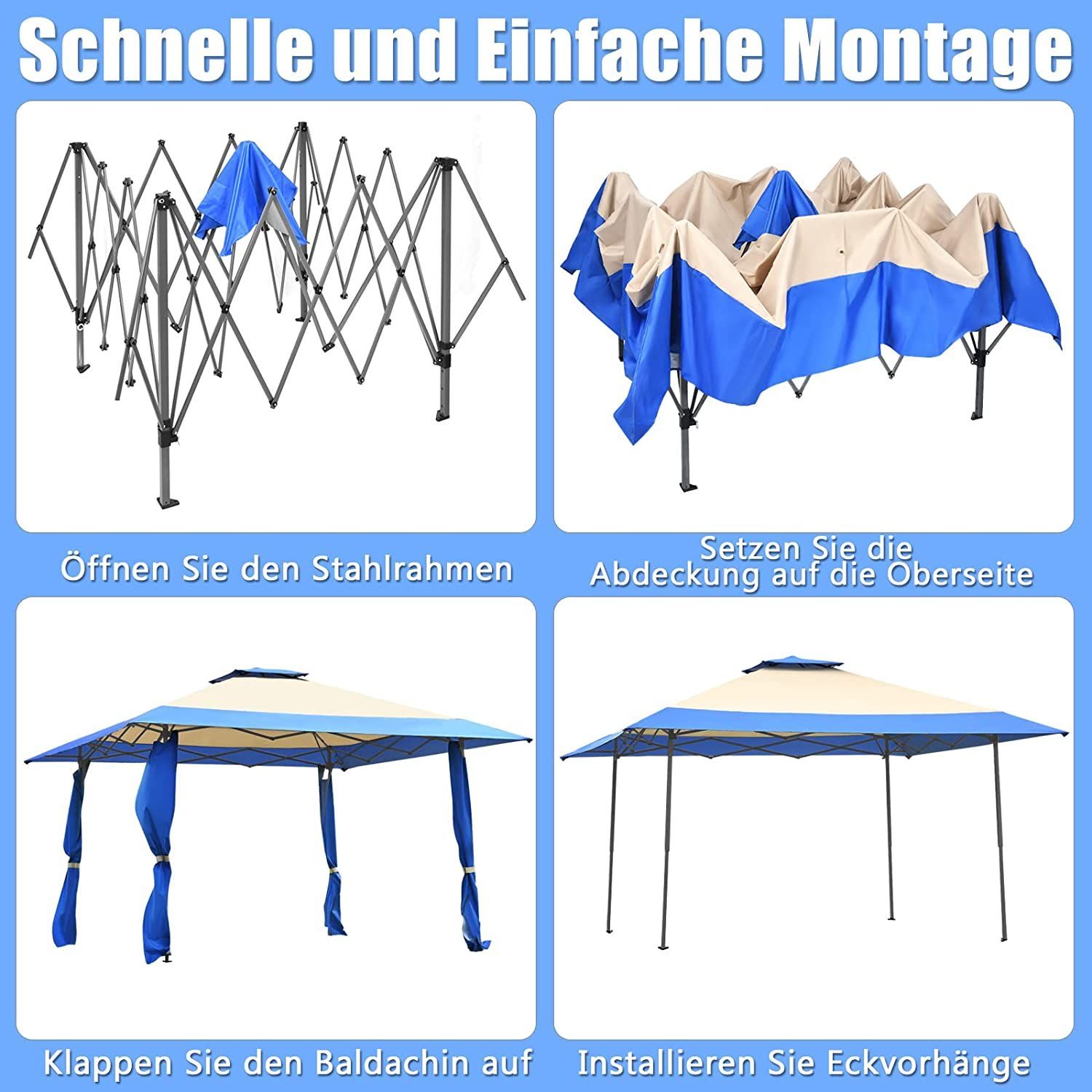 4 m x 4 m Pavillon mit Doppeldach, Partyzelt aus Oxford-Gewebe, Metall Gartenpavillon