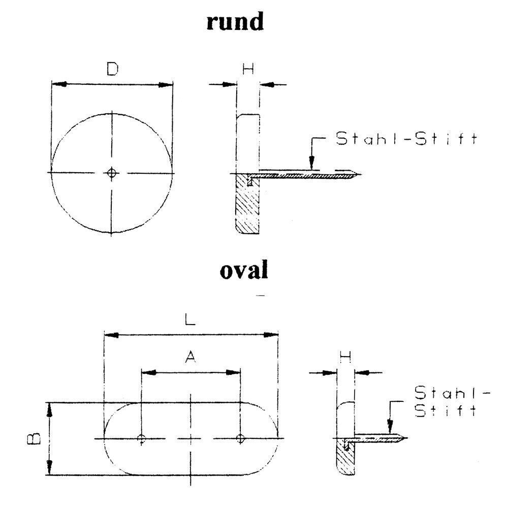 4 St. Stuhlgleiter rund oder oval, Kunststoff Stahl, Braun Diese Nagelgleiter aus Kunststoff sind die idealen Möbelgleiter für Stühle und Möbel mit Holzfüßen. Die Gleiter sind in runder und ovaler Ausführung in verschiedenen Maßen erhältlich. Zur Montage der Möbelgleiter mit Nagel benötigen Sie eine