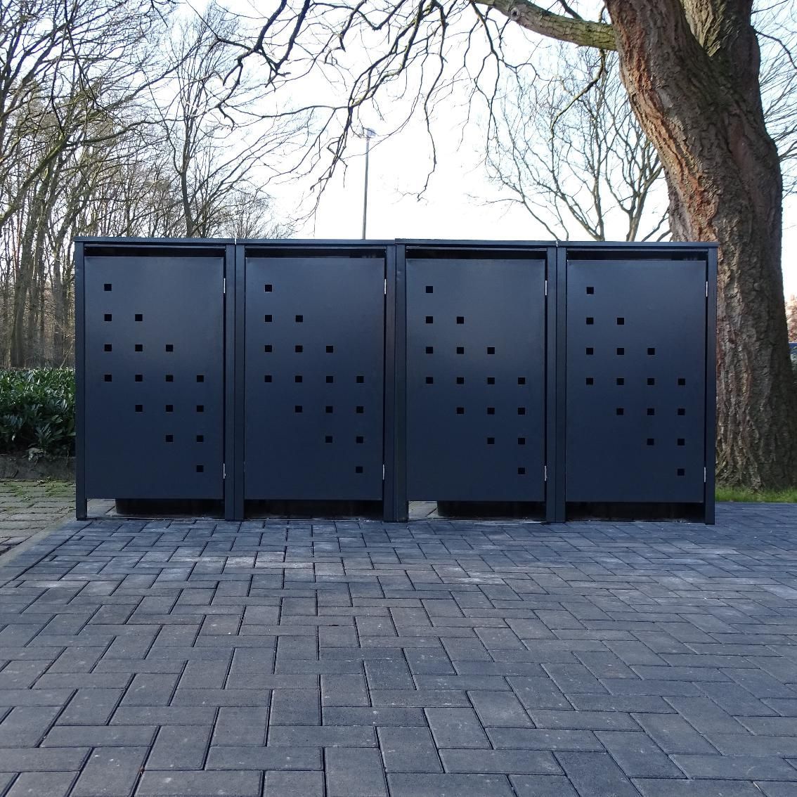 4 Mülltonnenboxen Modell No.3 Anthrazitgrau komplett in RAL 7016 für 120 Liter Mülltonnen