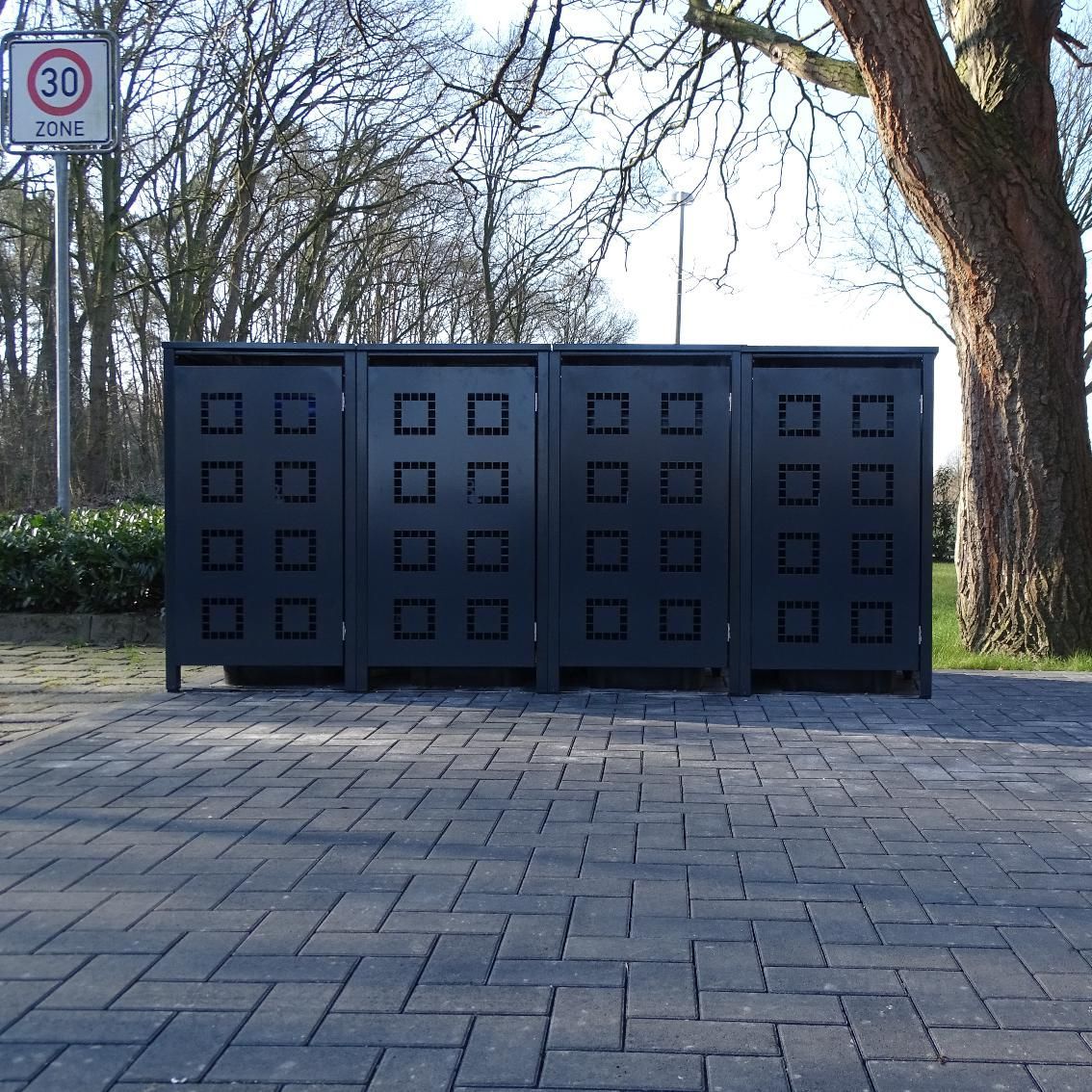 4 Mülltonnenboxen Modell No.5 Anthrazitgrau komplett in RAL 7016 für 240 Liter Mülltonnen