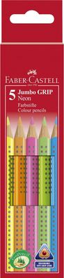 FABER-CASTELL 110994 Buntstift Jumbo GRIP Neon - 5 Farben sortiert, Kartonetui