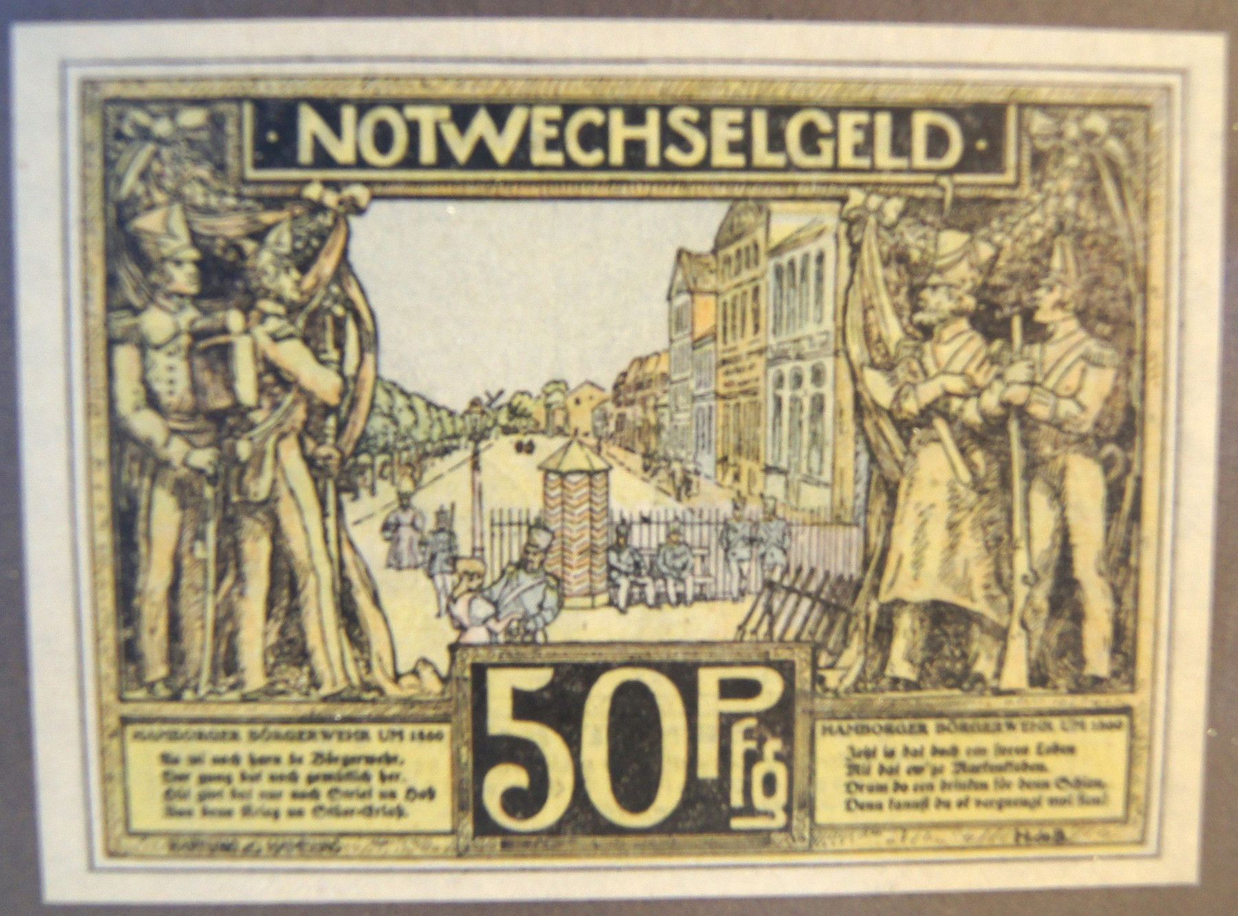 4 Notgeldscheine Hamburg von 1921 im Rahmen /5612