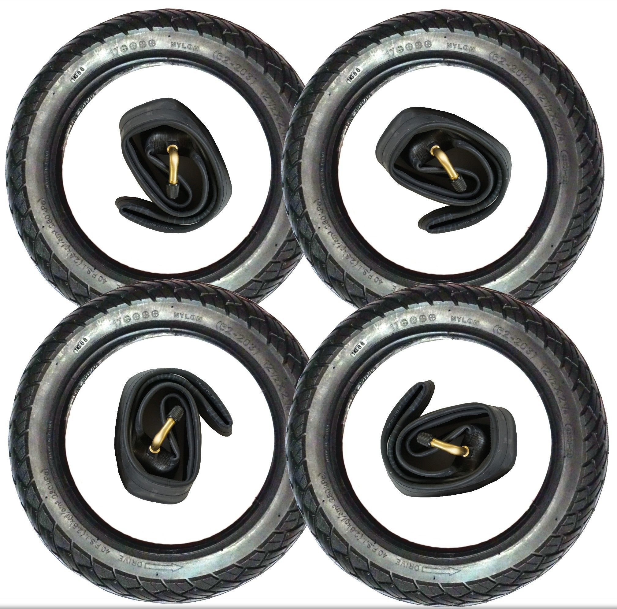 4 Set 12" Reifen + Schlauch 12 1/2 x 2 1/4 = 62-203 Kinderwagen Roller