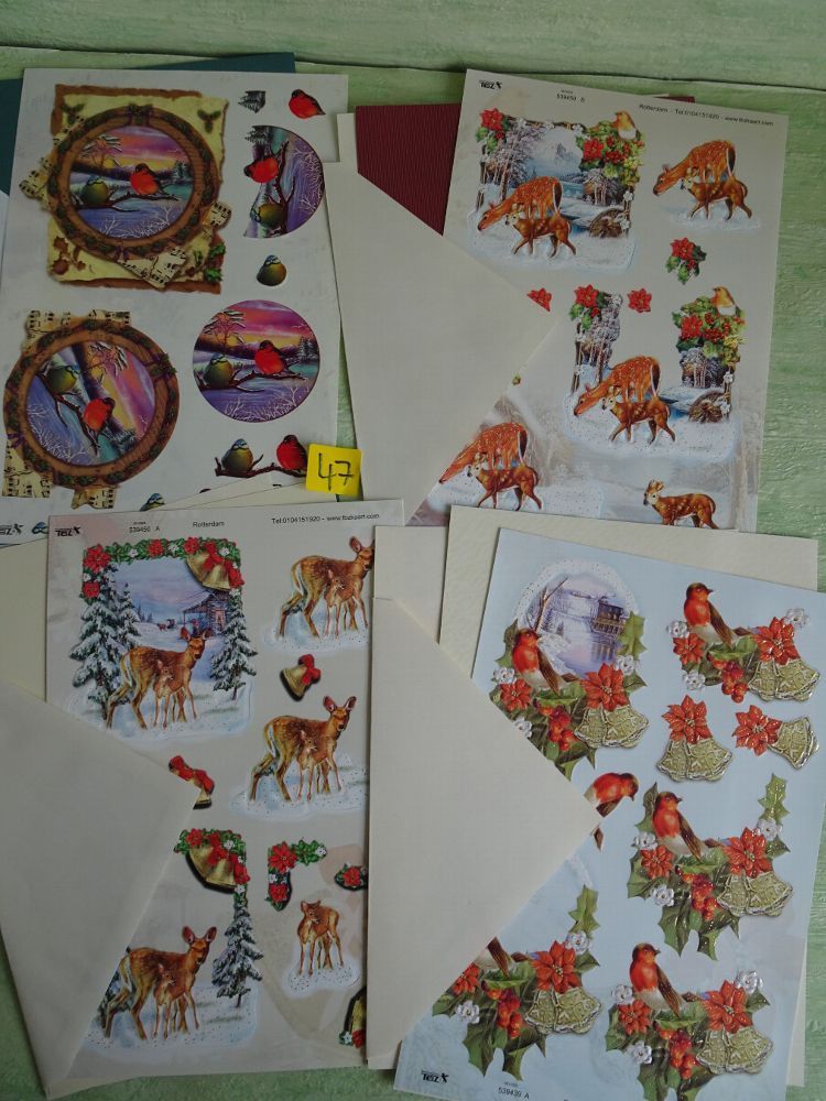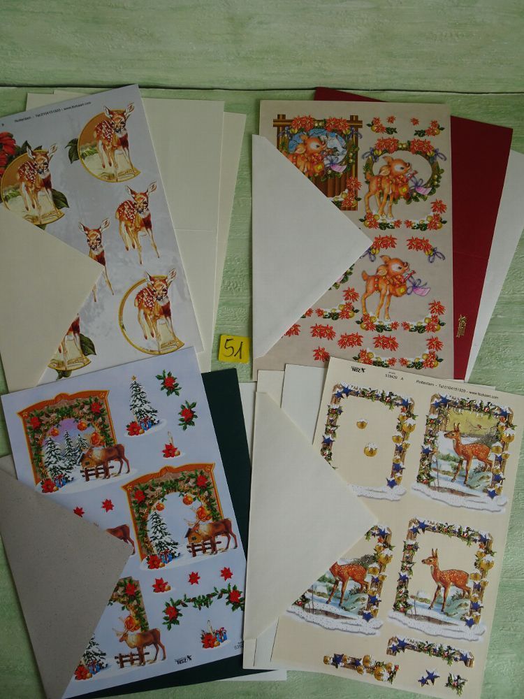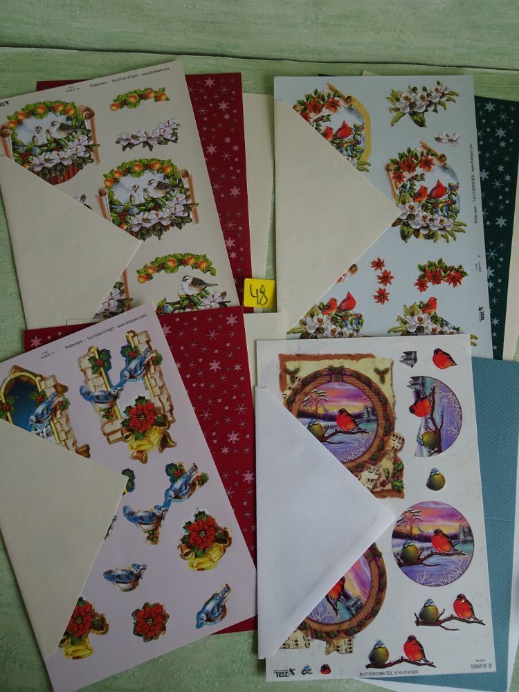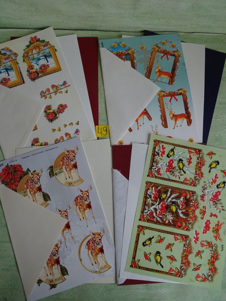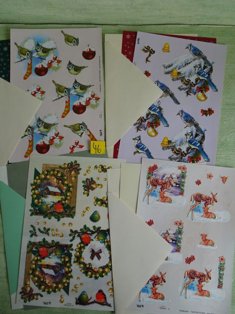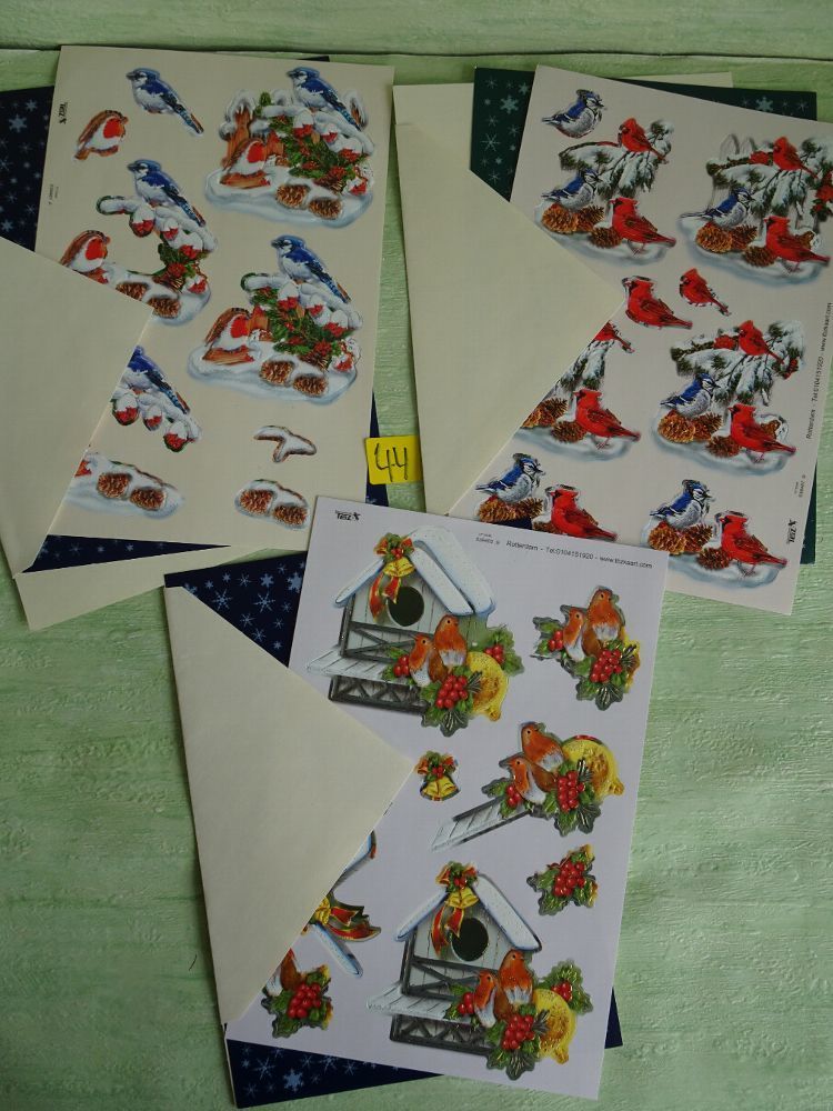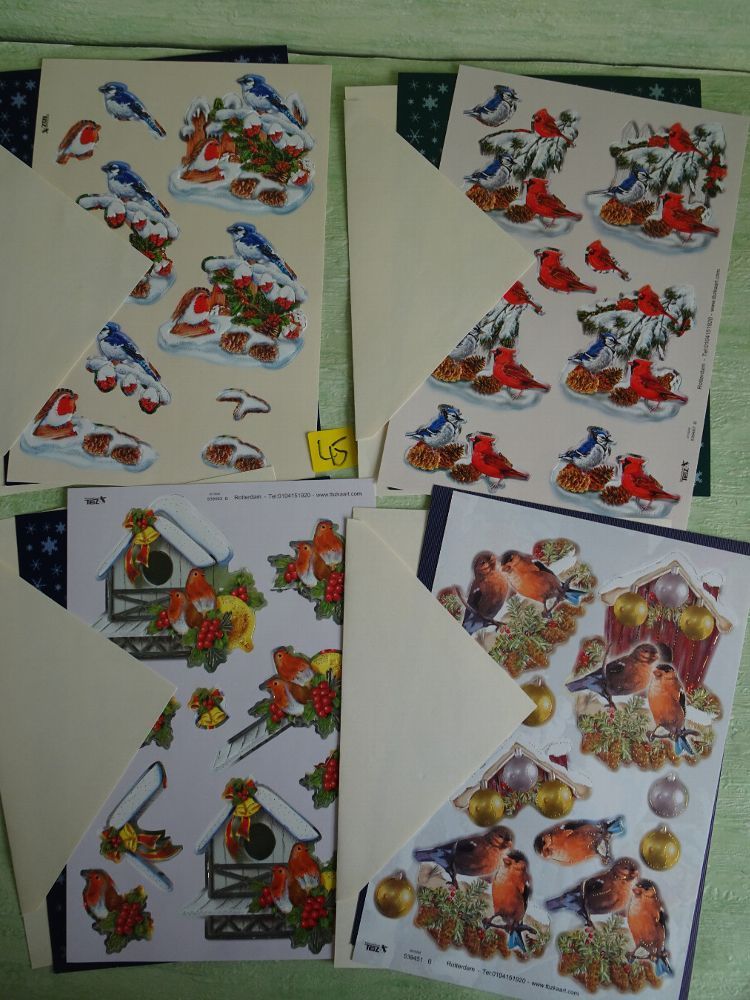 4 SETs TBZ 3D Bogen Din A5 Karte Einleger Kuvert Tiere Weihnachten Vogel Vögel Winter
