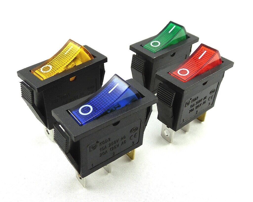 4 Stück Wippenschalter, 15A 250VAC 3 Pin, Geräteschalter, Wippe beleuchtet