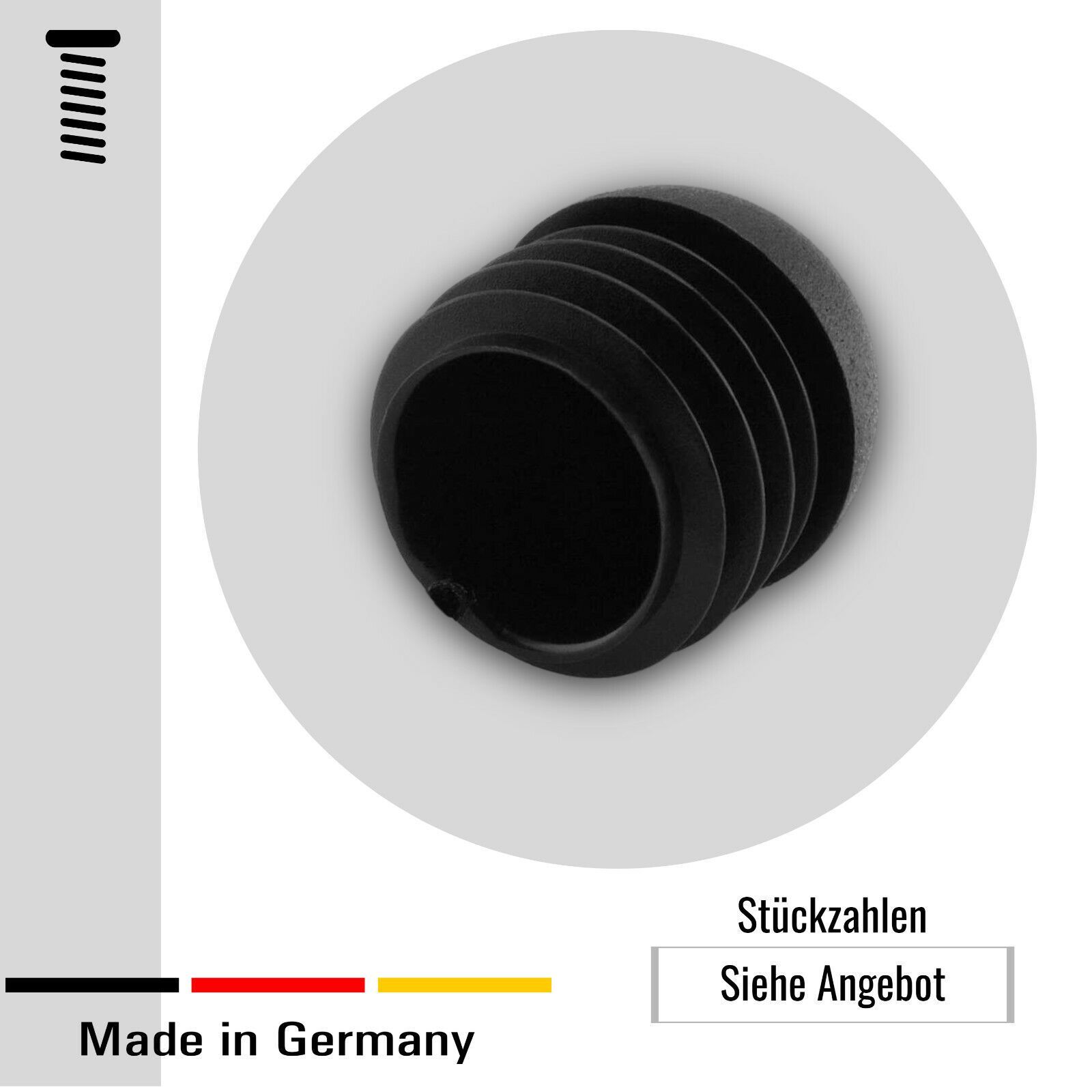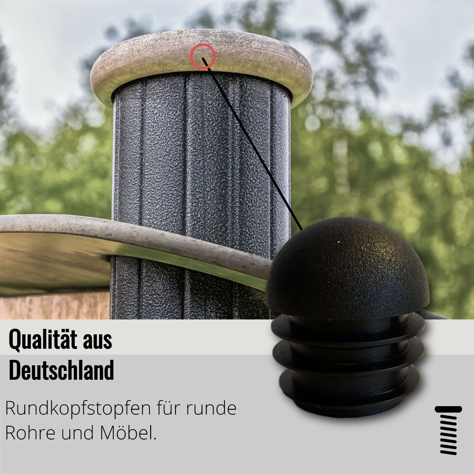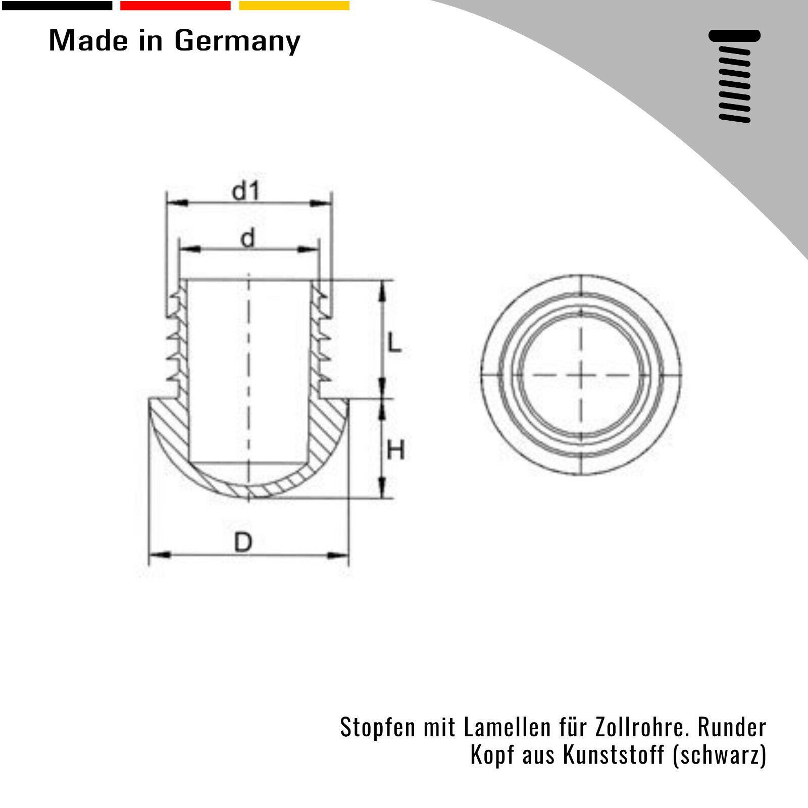 4 Stopfen/ Abdeckkappen mit Lamellen für Zollrohre runder Kopf Kunststoff Schwarz