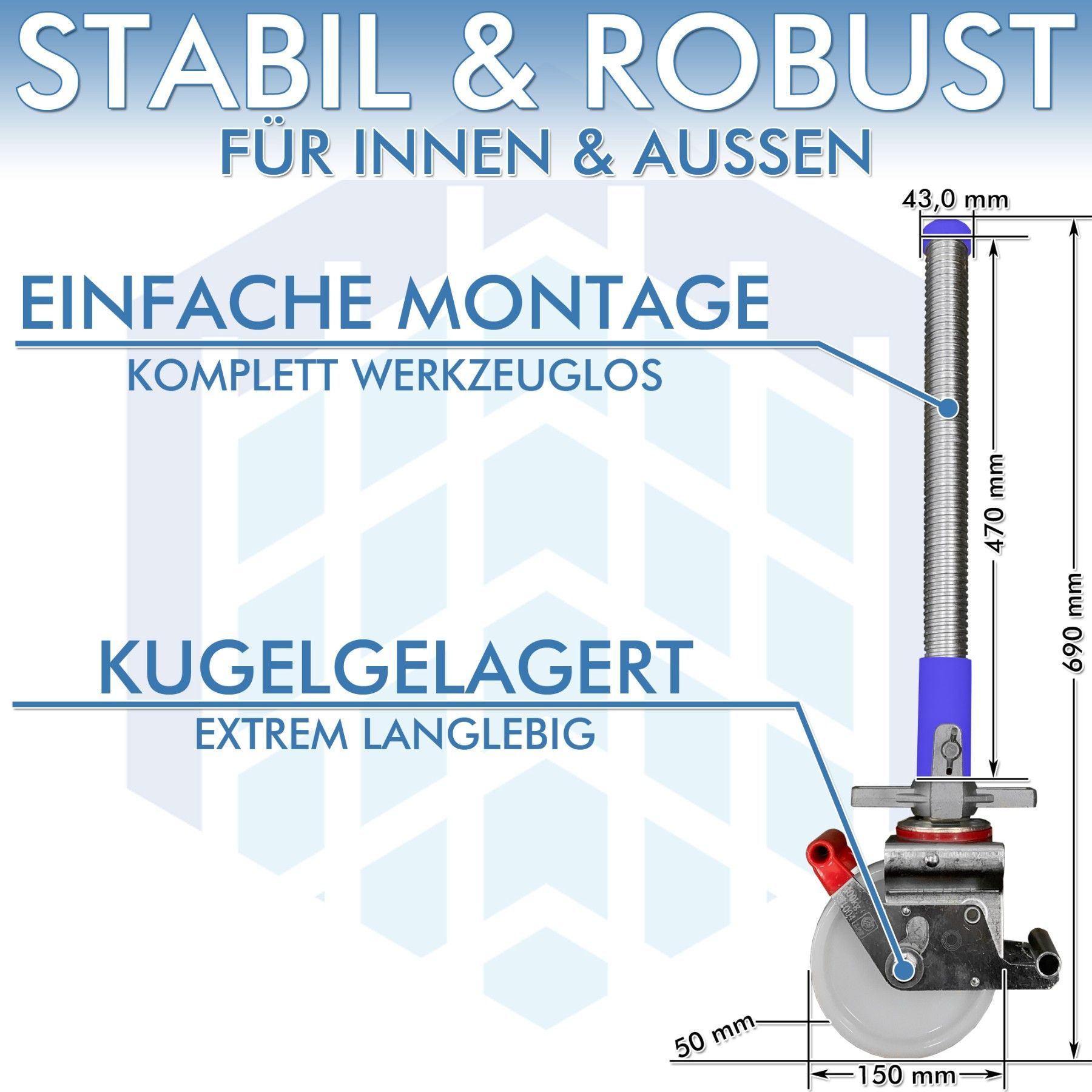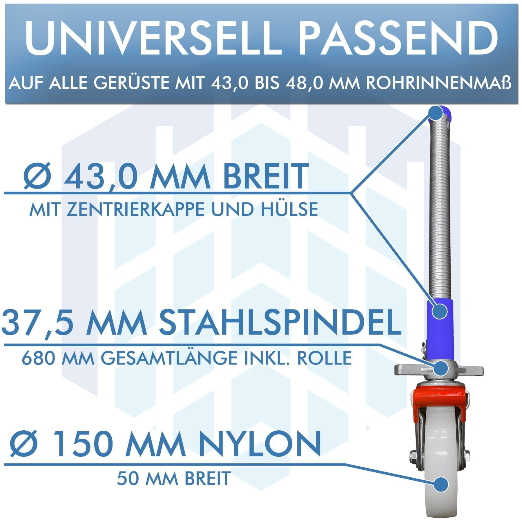 4 Stück Gerüstrollen 150 mm Nylon, kompatibel zu KRAUSE* Gerüsten