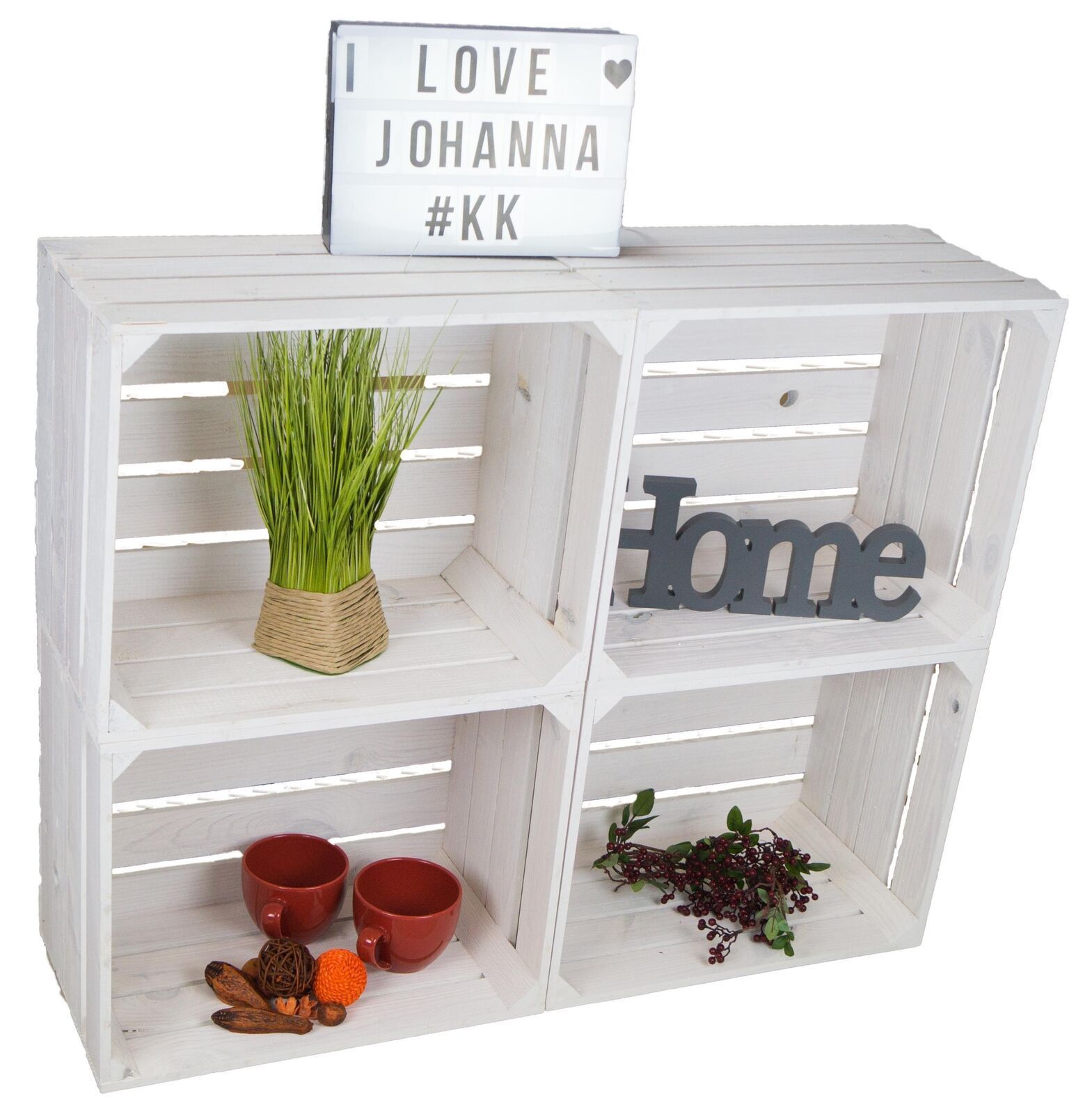 4 Stück neue Obstkisten "Johanna" weiß lasiert Holzkisten Apfelkisten Weinkisten