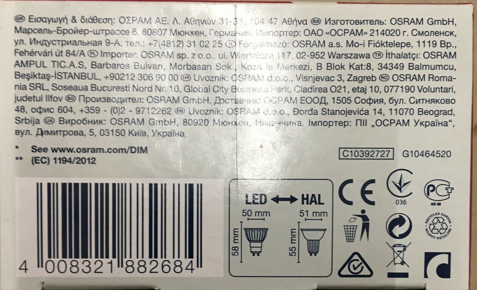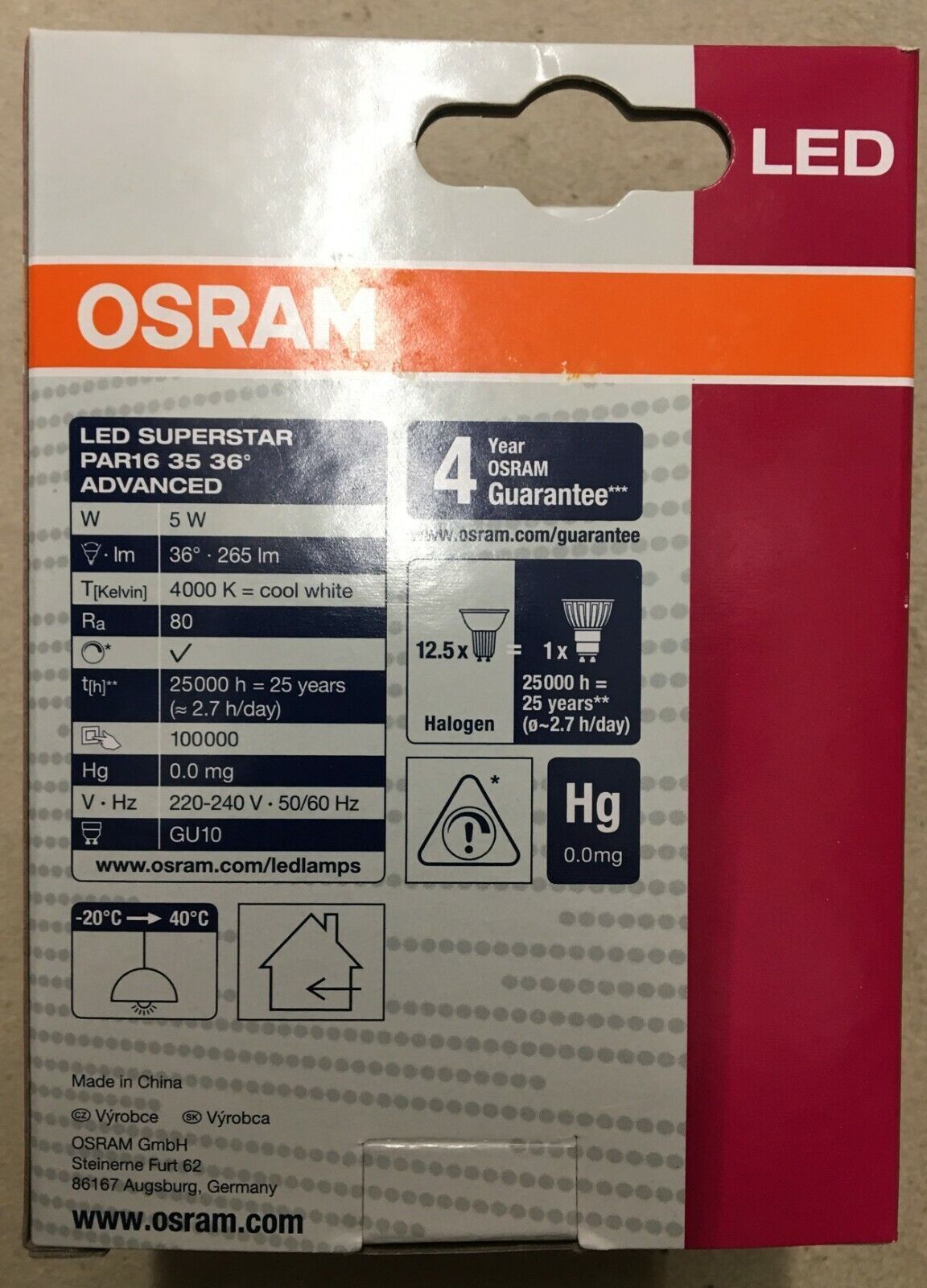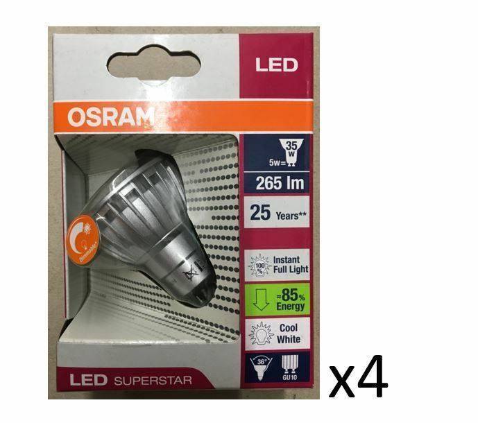 OSRAM 4 Stück Osram LED GU10 5W(35W) 840 265 lm. 36G Dim