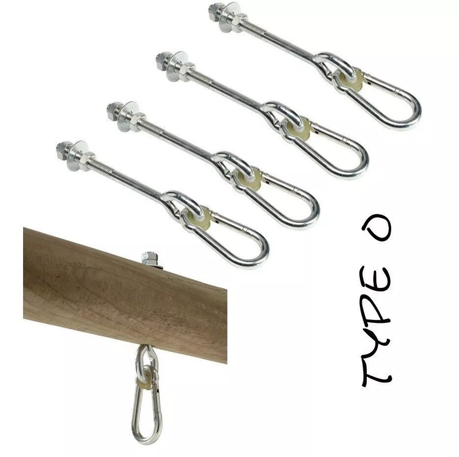 4 Stück Premium Schaukelhaken M12x250 mm mit Karabiner für Holzstärke 90-120 mm