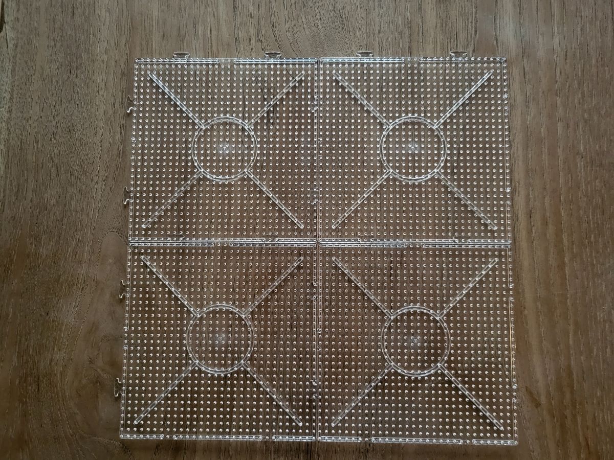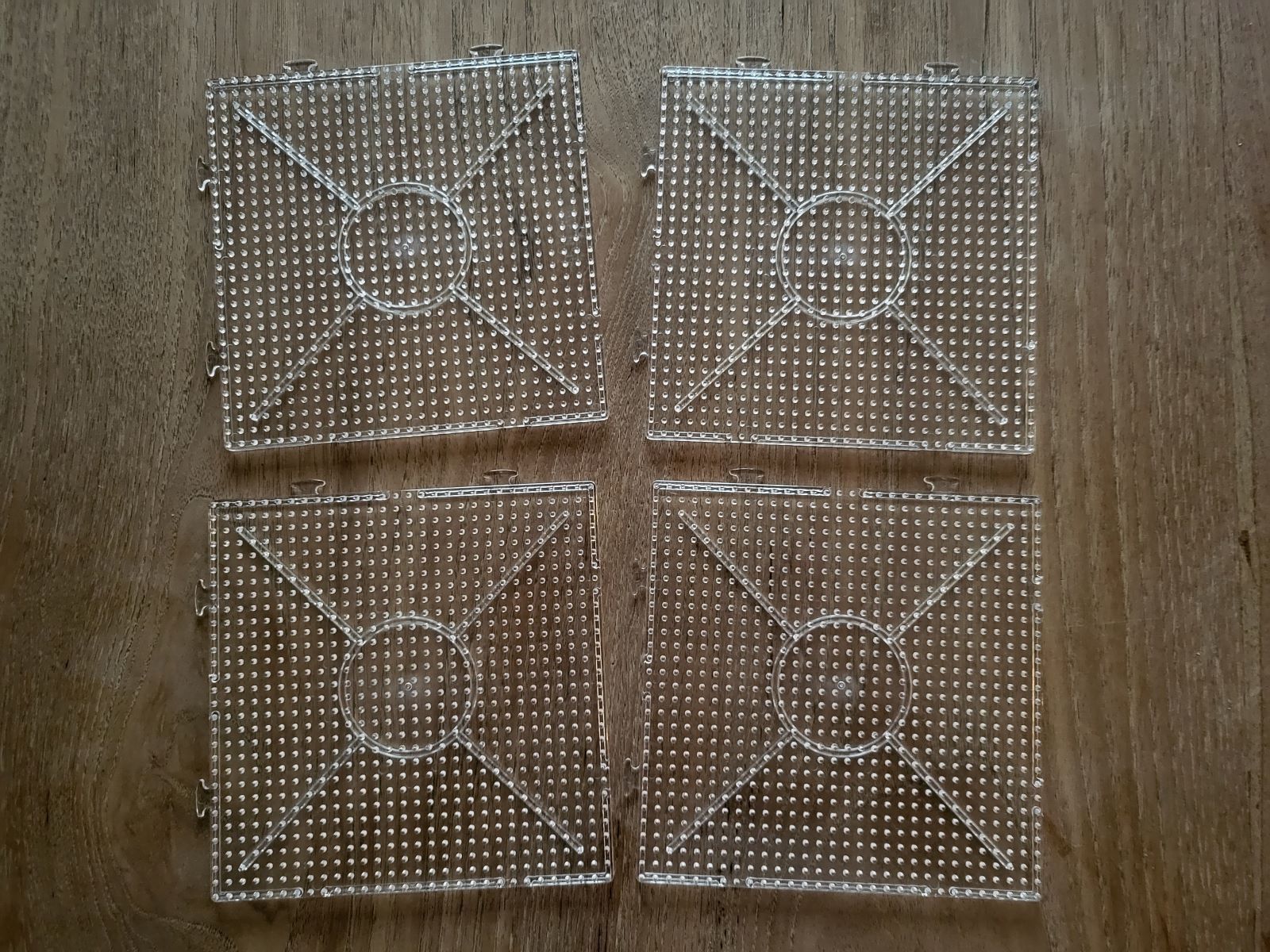 4 Stück - Steckplatte Quadrat transparent groß 15x15cm erweiterbar Bügelperlen midi