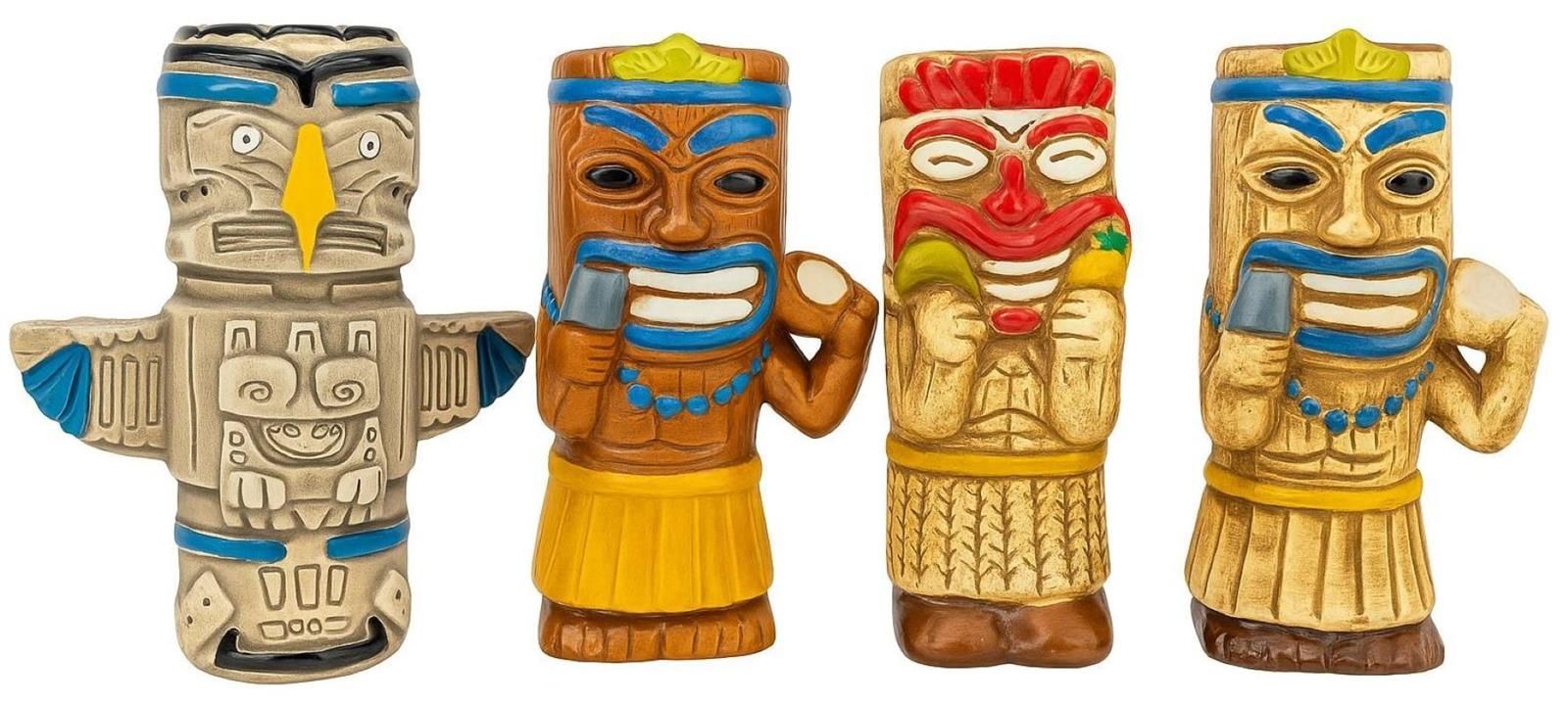 4 Stück Tiki Cocktail Becher mit Motiv 430ml-480ml Trinkglas Restaurant Bar Deko