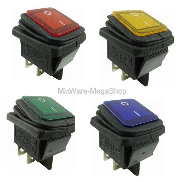 4 Stück Wasserdichte Wippschalter 2-pol (4 Pin) EIN-AUS 250V 16A, 1 pro Farbe