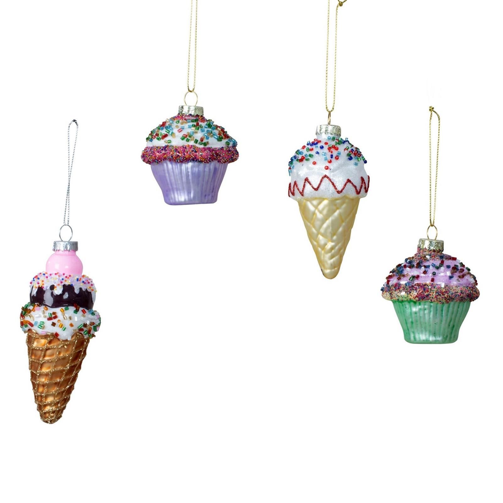 4 Stück Weihnachtsanhänger aus Glas Muffin und Eis Christbaumschmuck