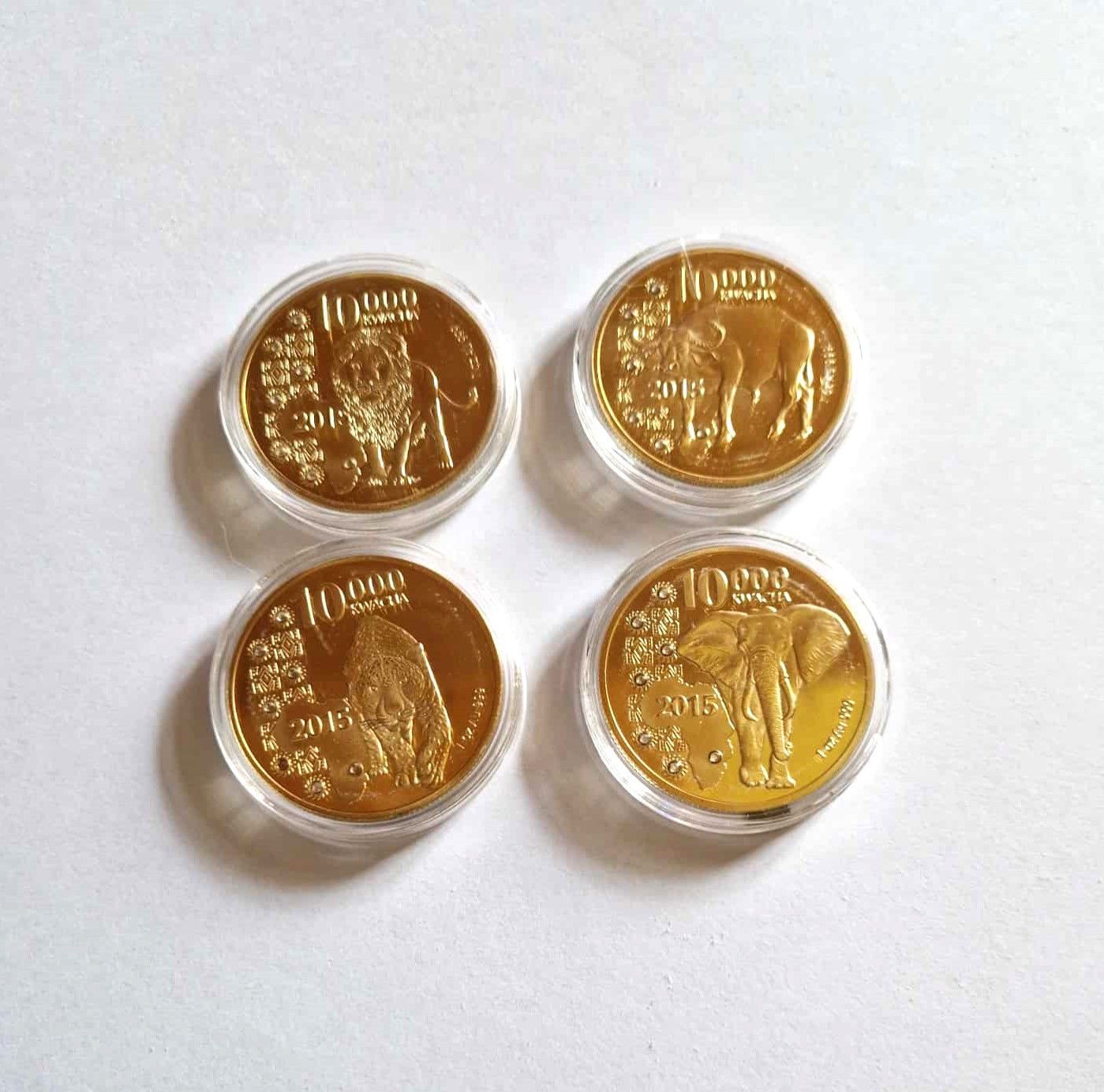 4 Stück schöner Medaillen Satz Zambia 2015 Bedrohte Tier Arten Diese Variante ist kaum noch im Handel erhältlich Technische Information zum Artikel Material vergoldet Größe: 40mm Erhaltung: Polierte Platte (Optische Mängel möglich) Verpackung: Kapsel Ideal für Sammler oder auch einfach nur ein schön