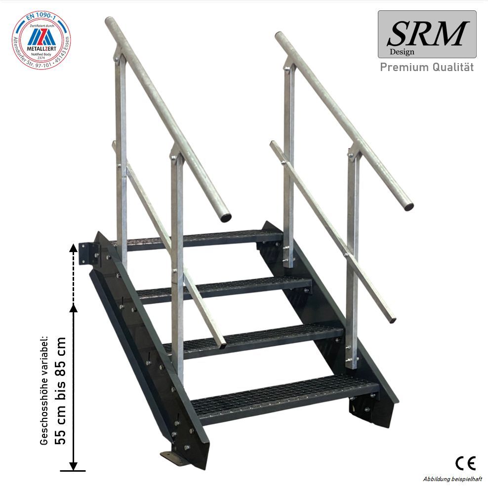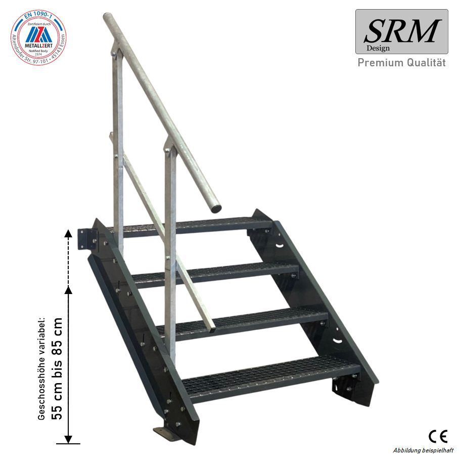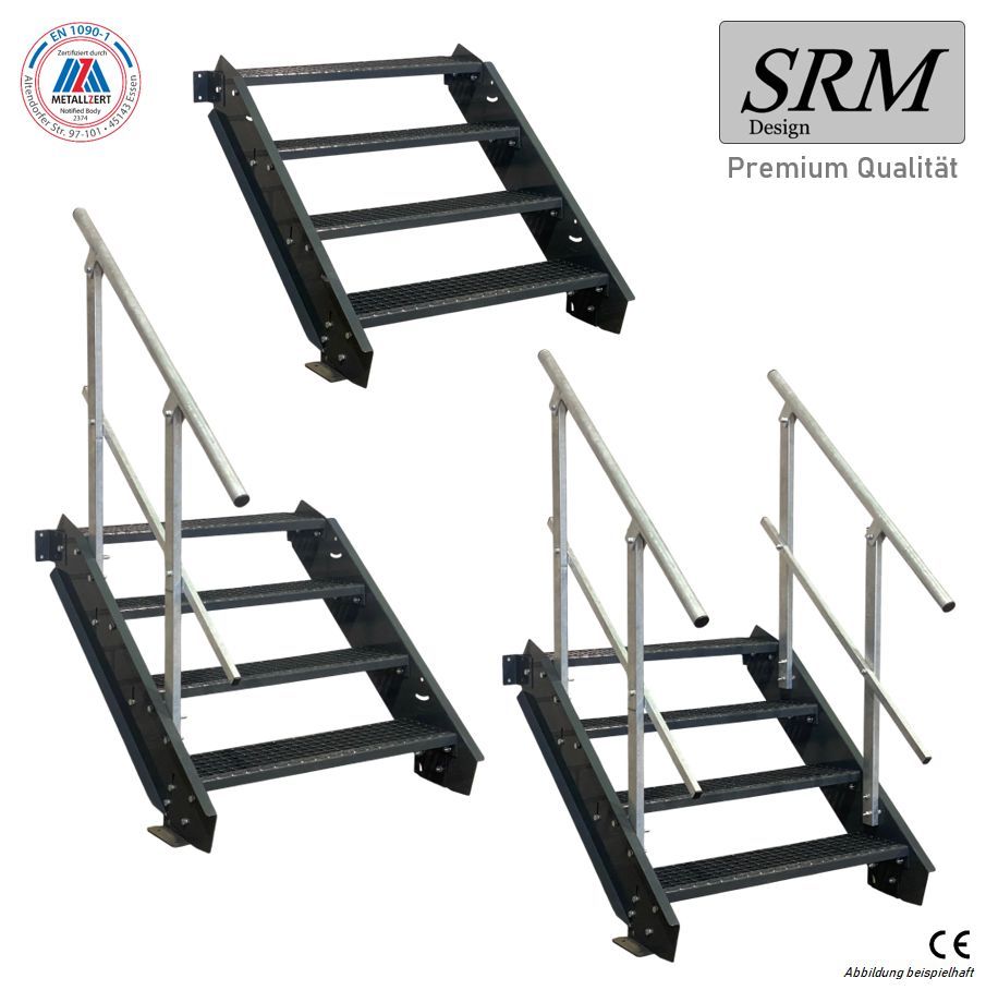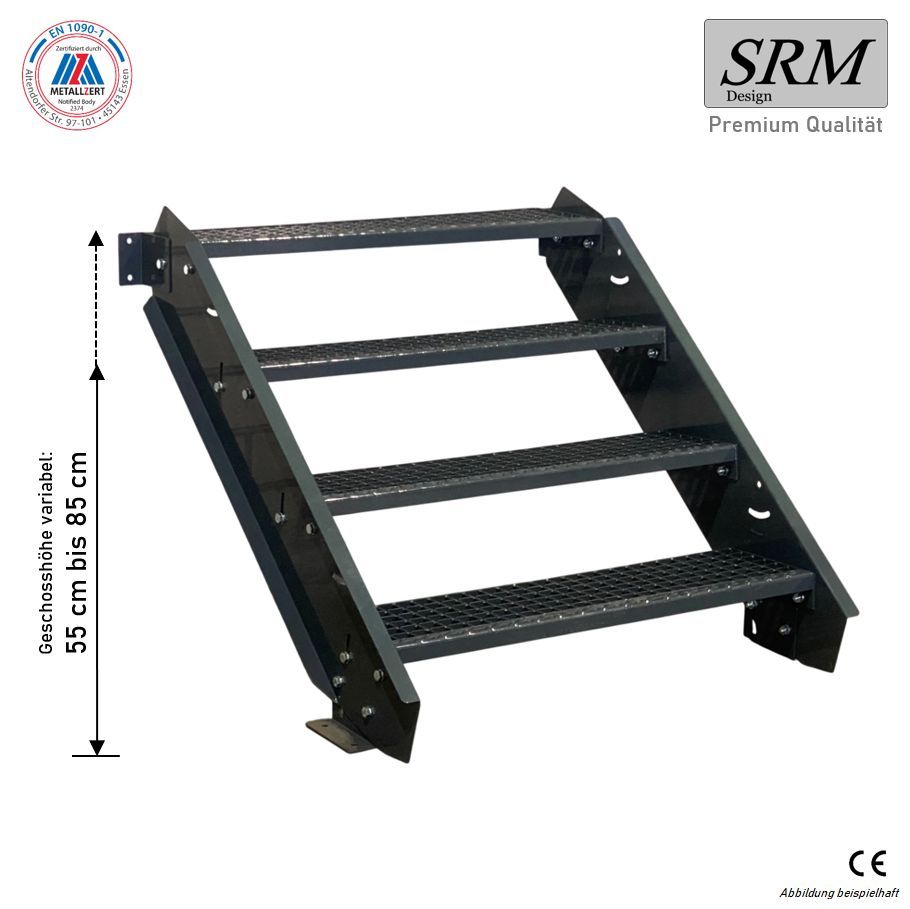 4 Stufen Stahltreppe komplett anthrazit Breite 60 - 160 cm Höhe 55 - 85 cm