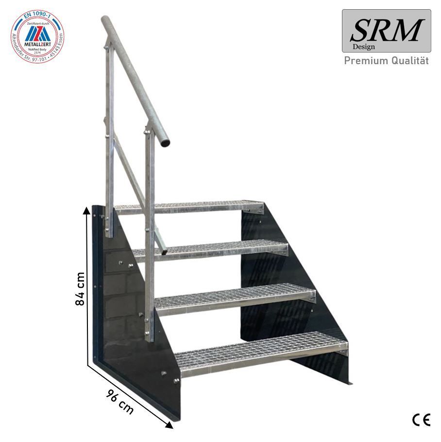 4 Stufen Treppe Breite 60 - 160 cm Standtreppe Höhe 84 cm anthrazit 1x Geländer
