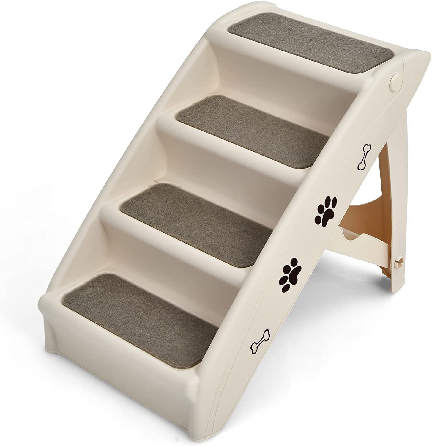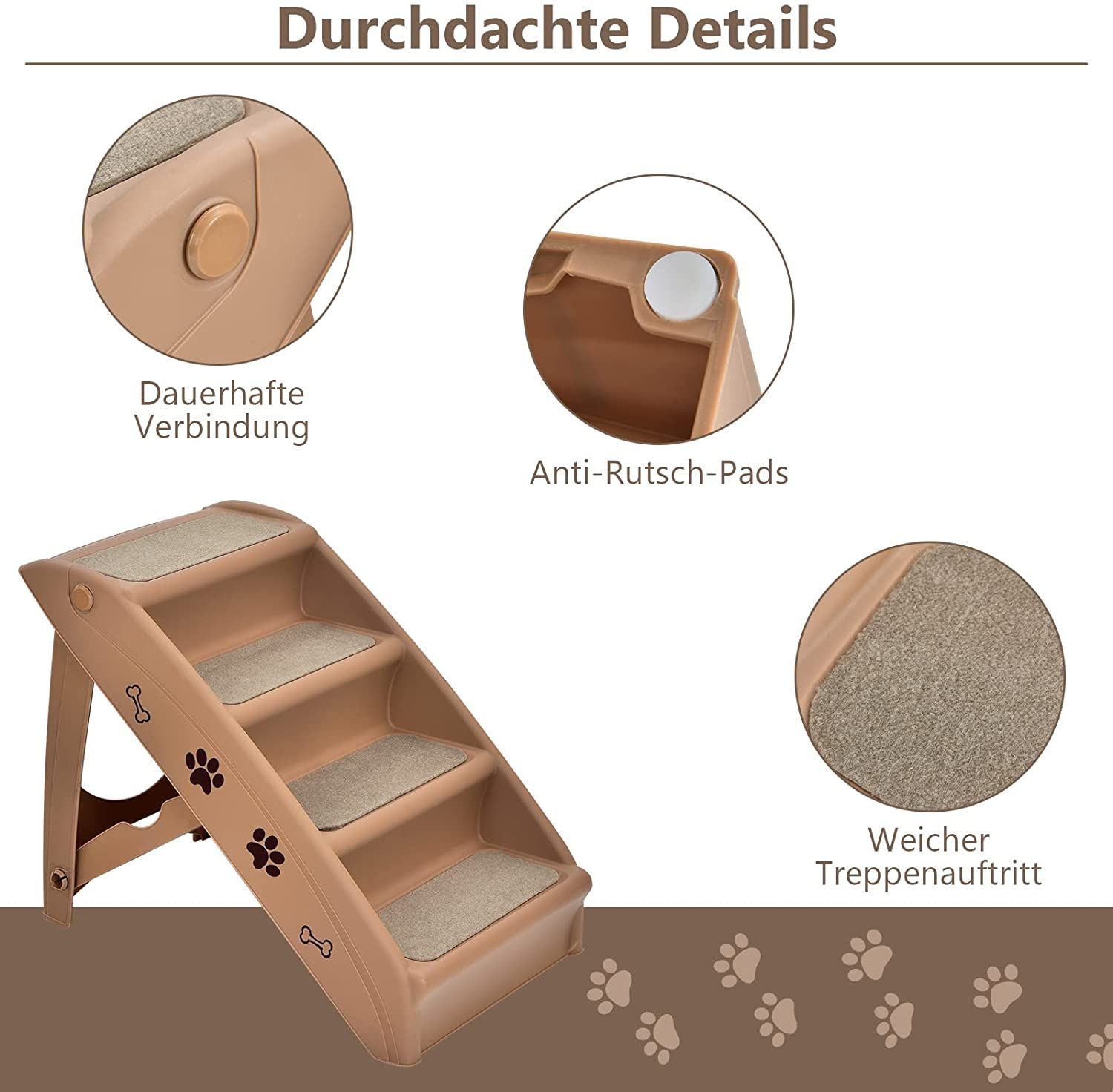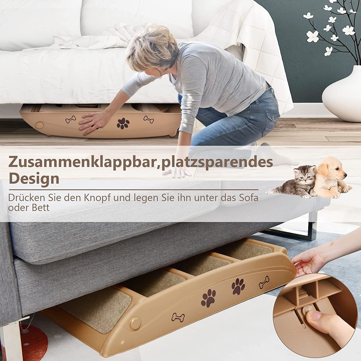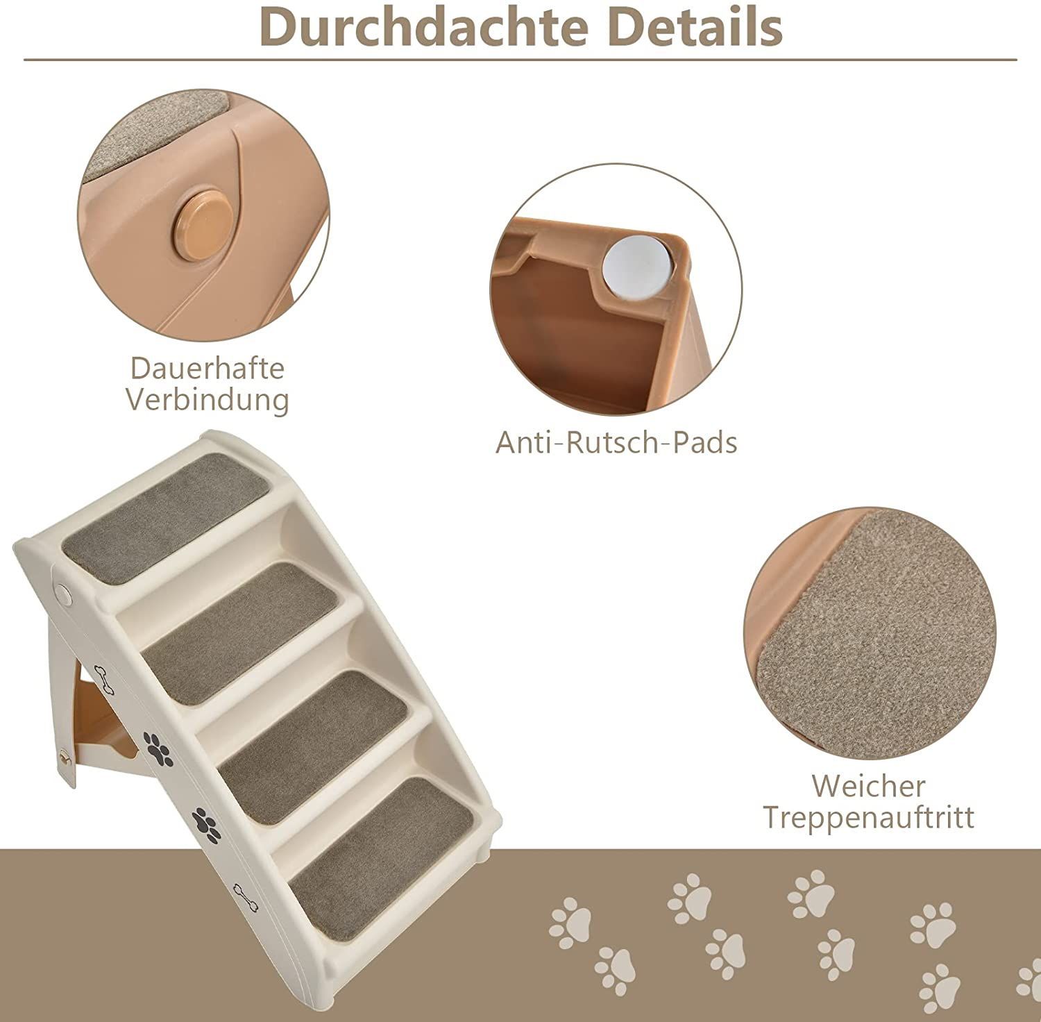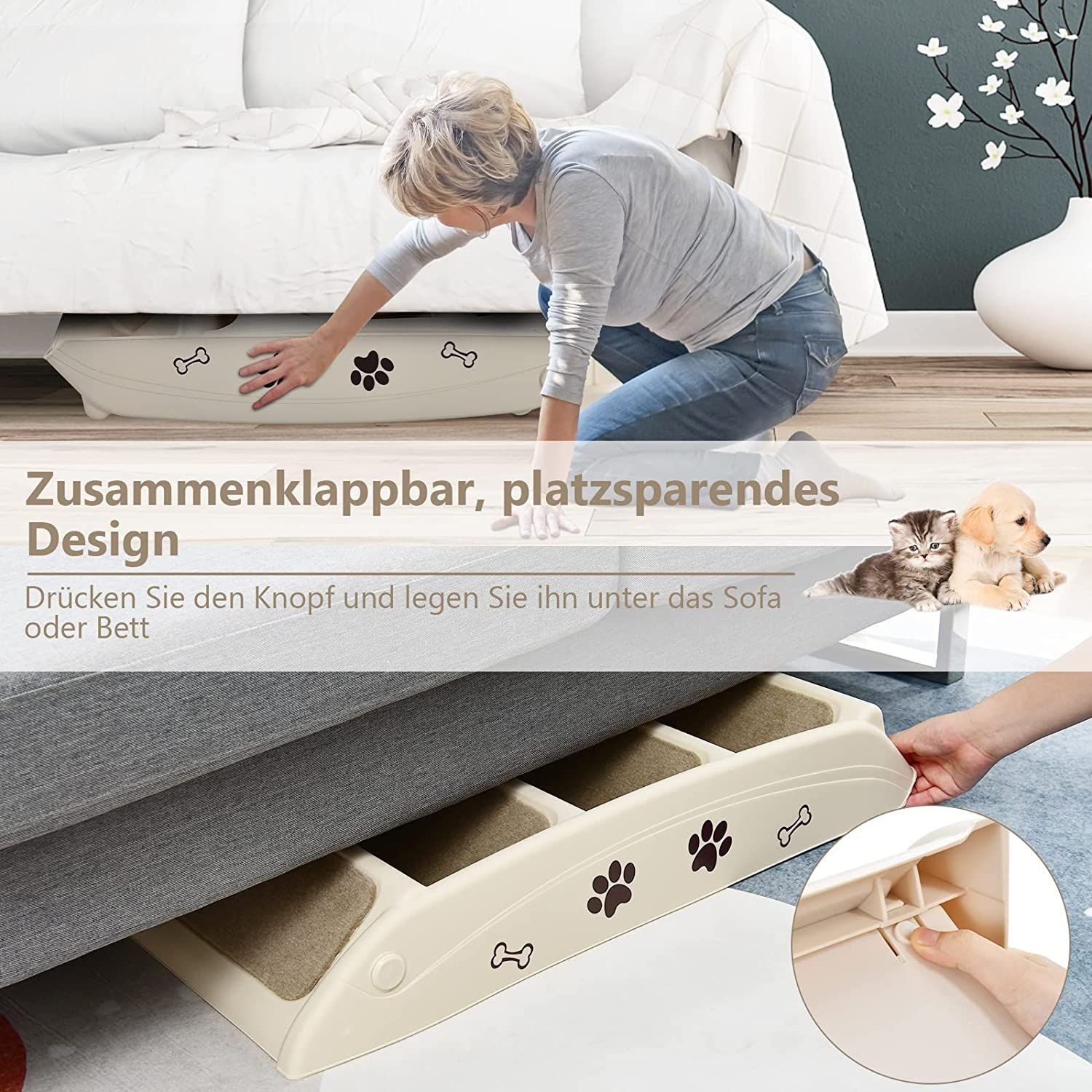 4-stufige Haustiertreppe mit Teppichboden Hundetreppe Kunststoff Katzentreppe faltbar