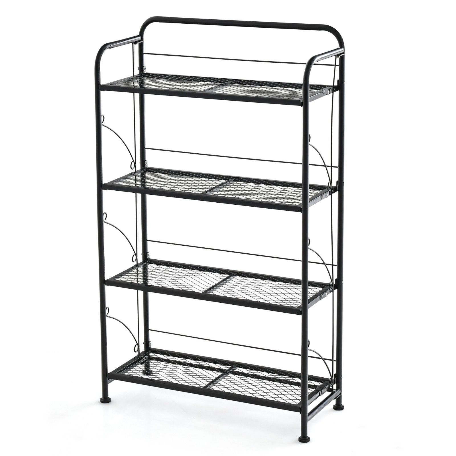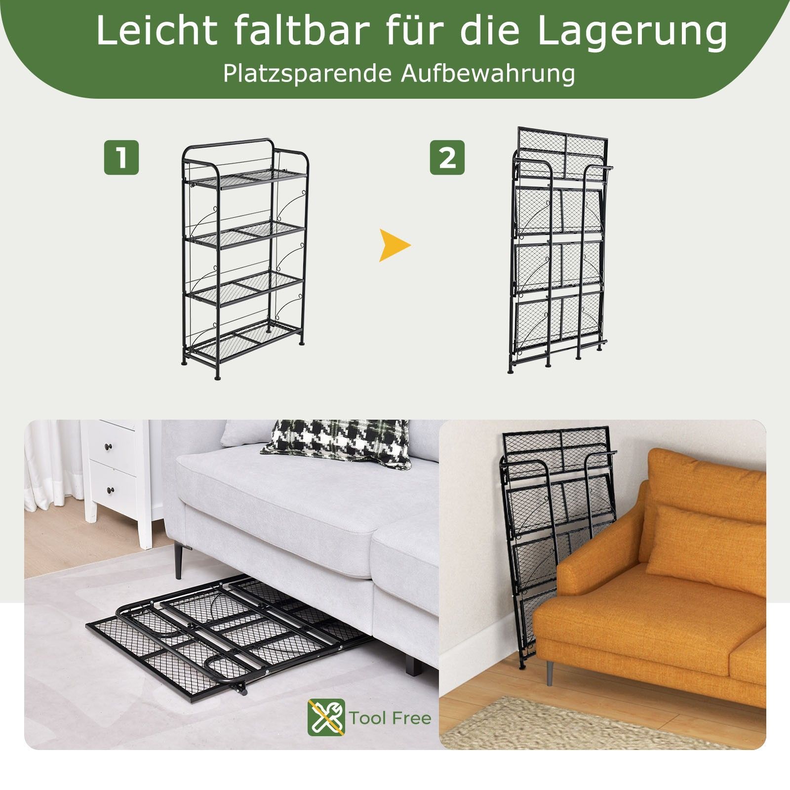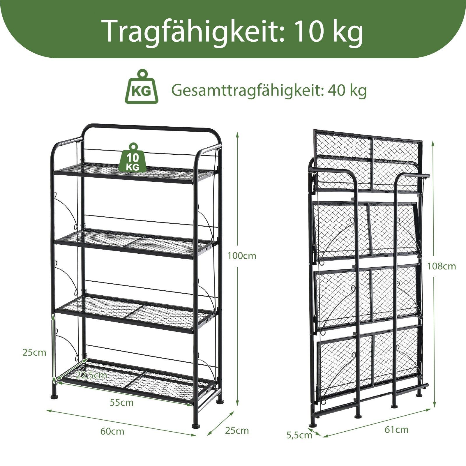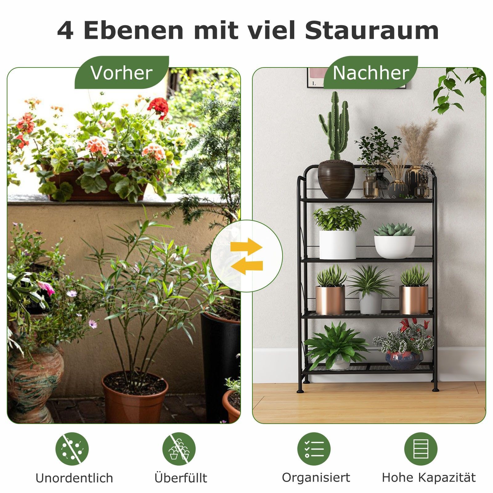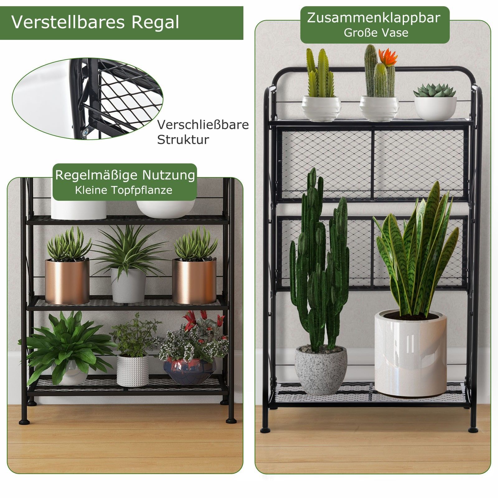 4-stufiger Metall Pflanzenständer klappbar, Blumenregal mit anpassbarer Ablage