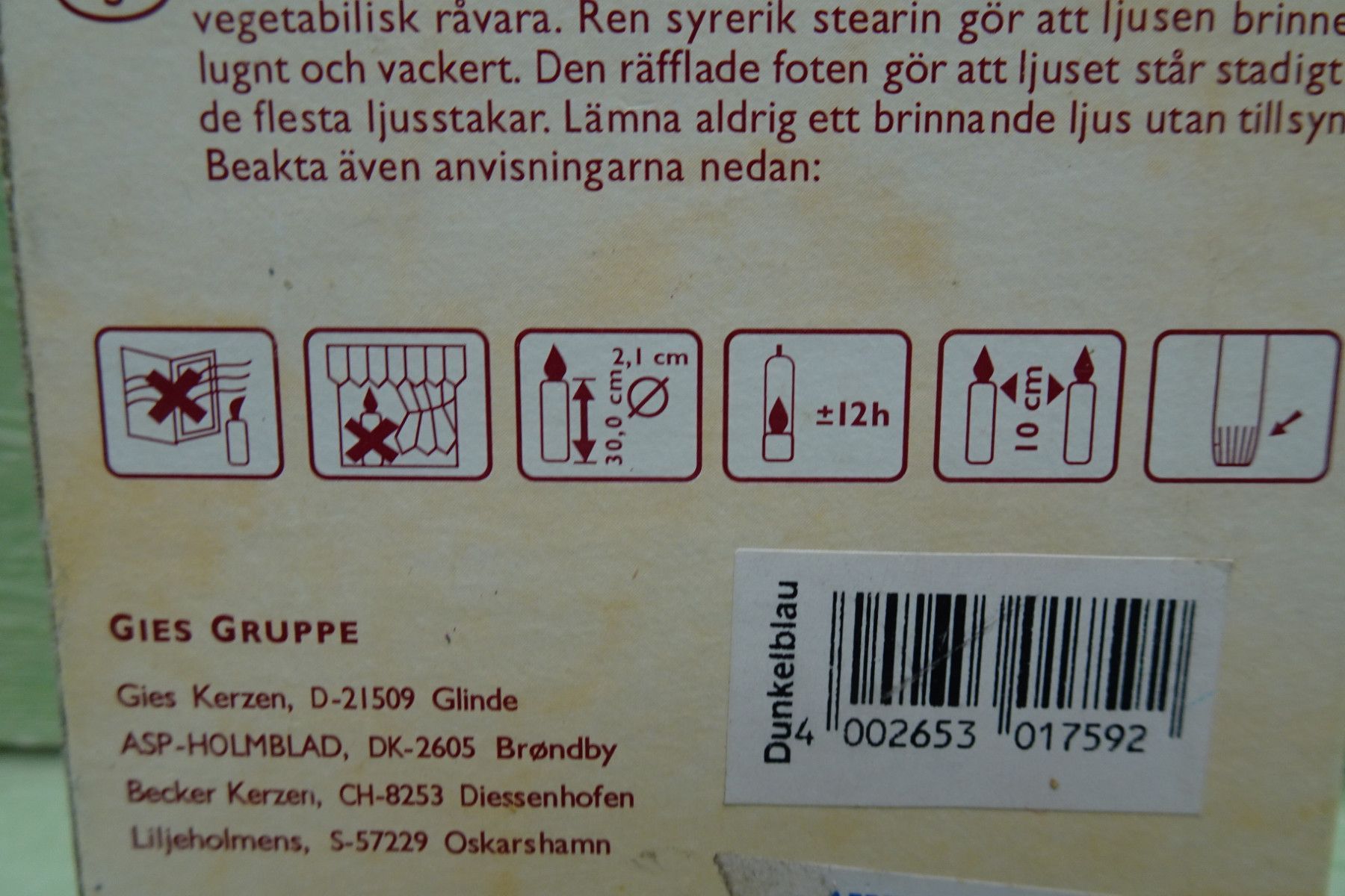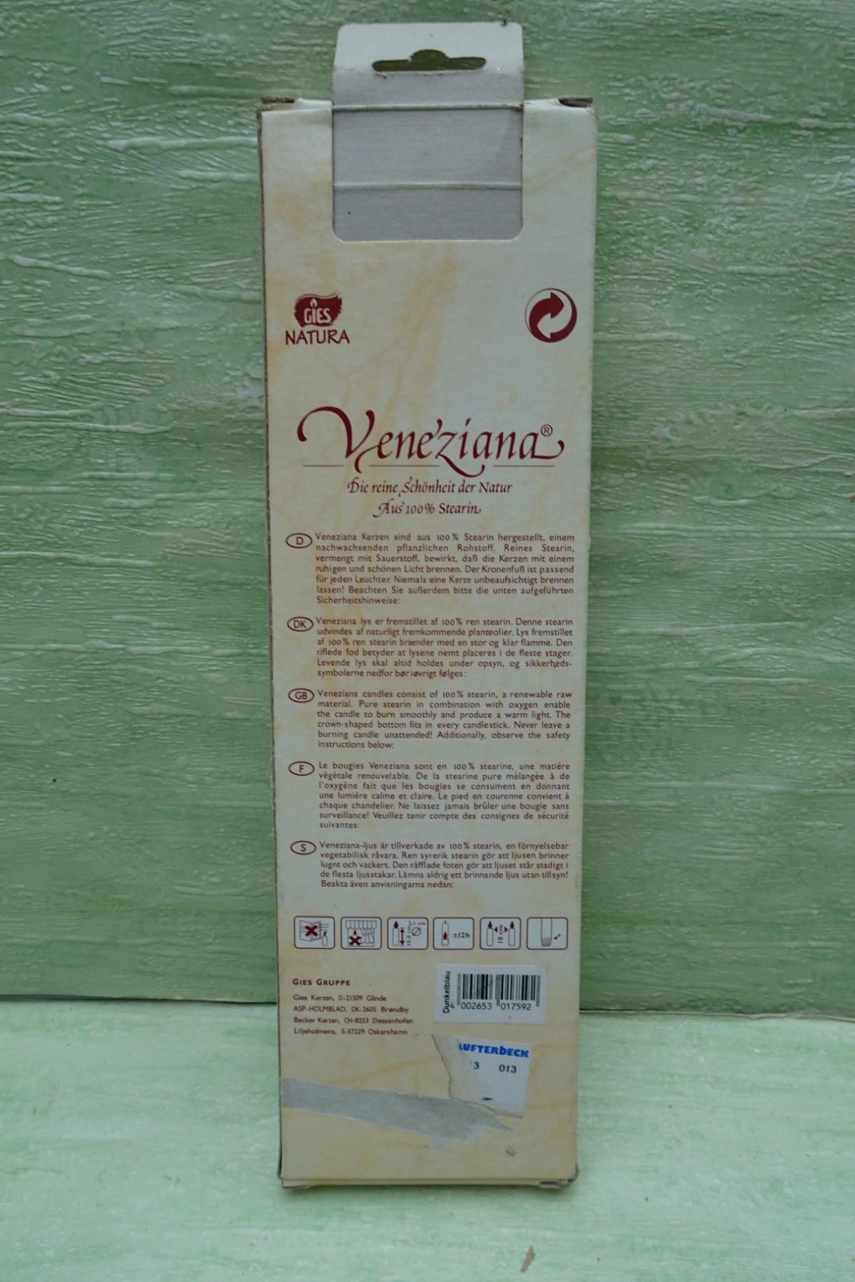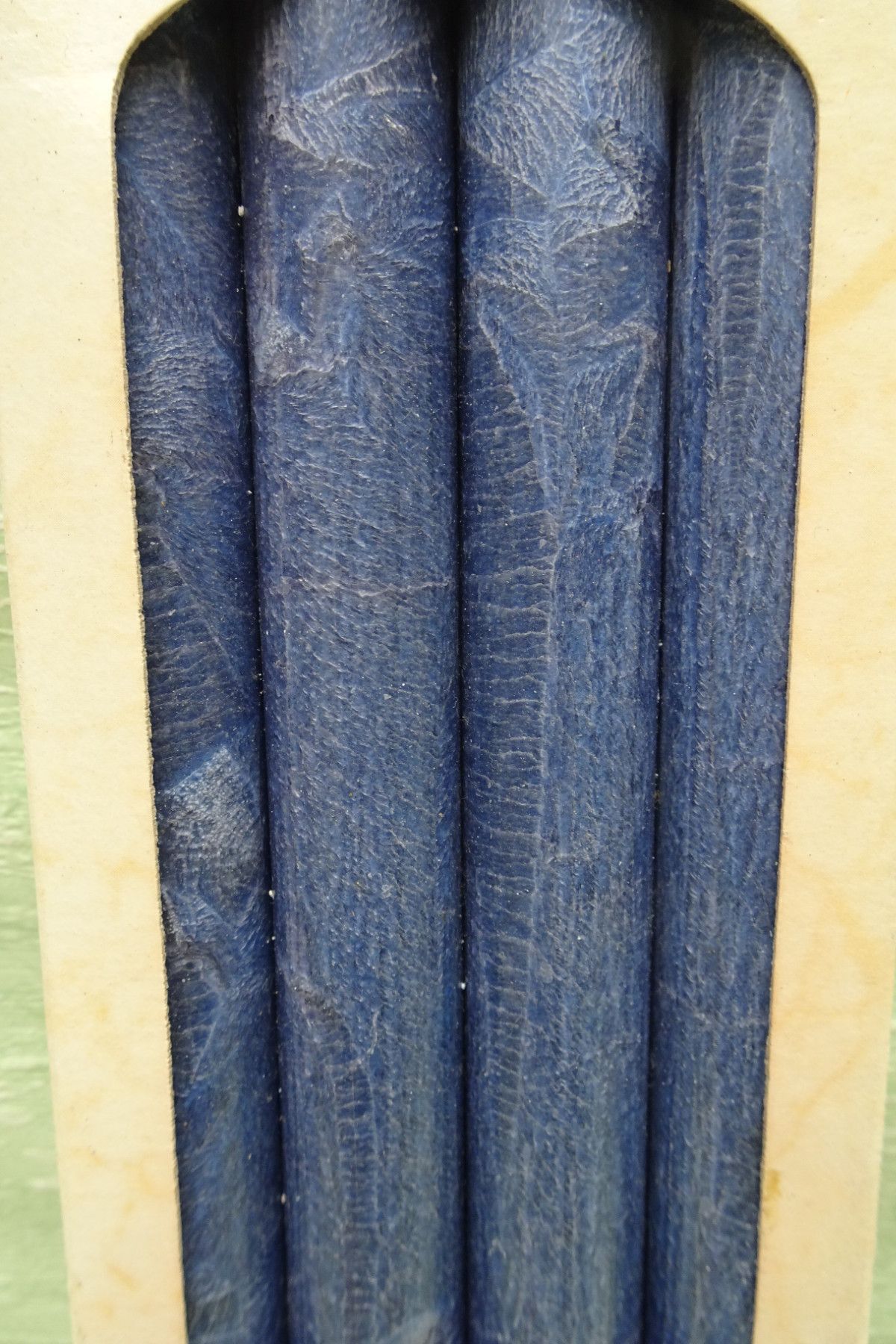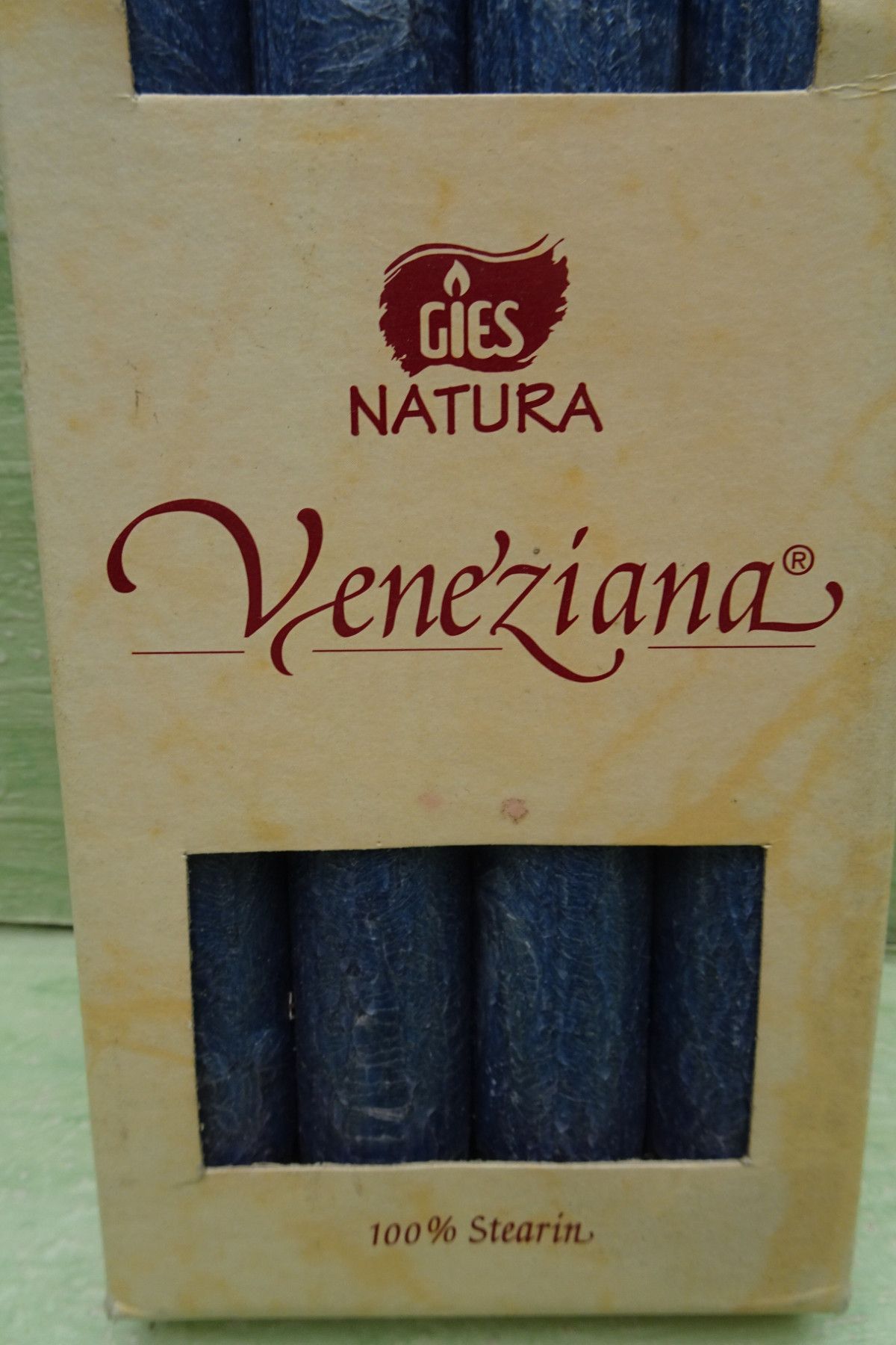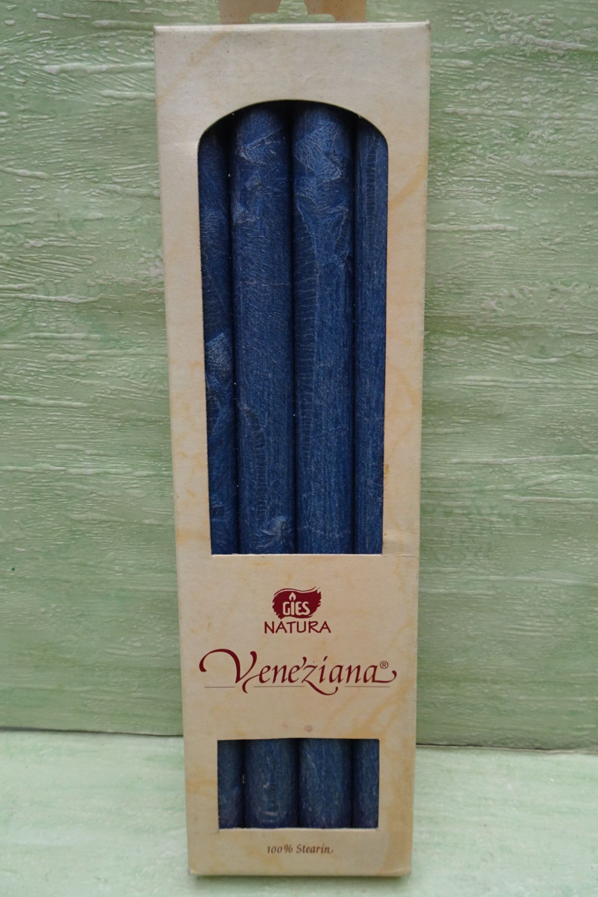 4 Tafelkerzen marmorierte blaue Venezia Natura Gies 100% Stearin 30x2,1cm 12 Std
