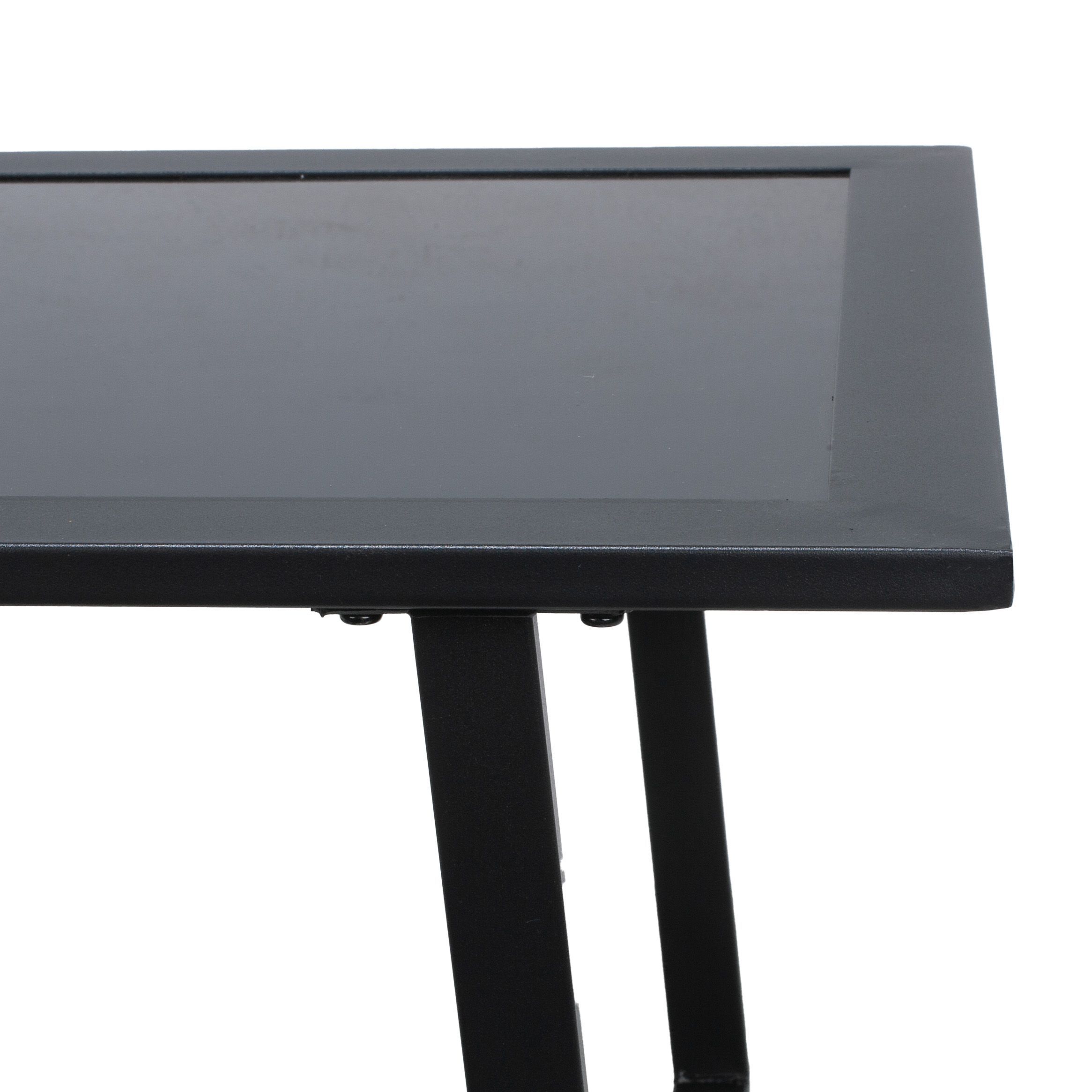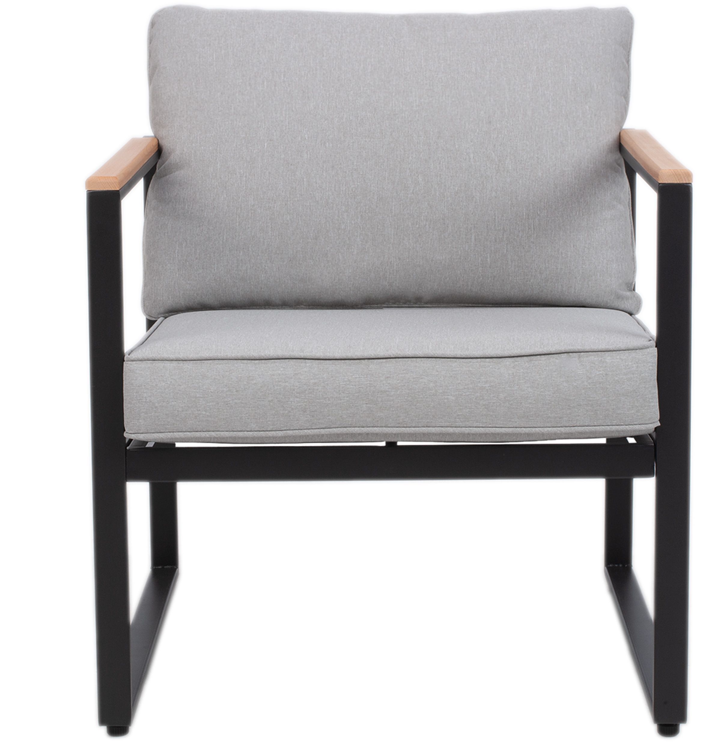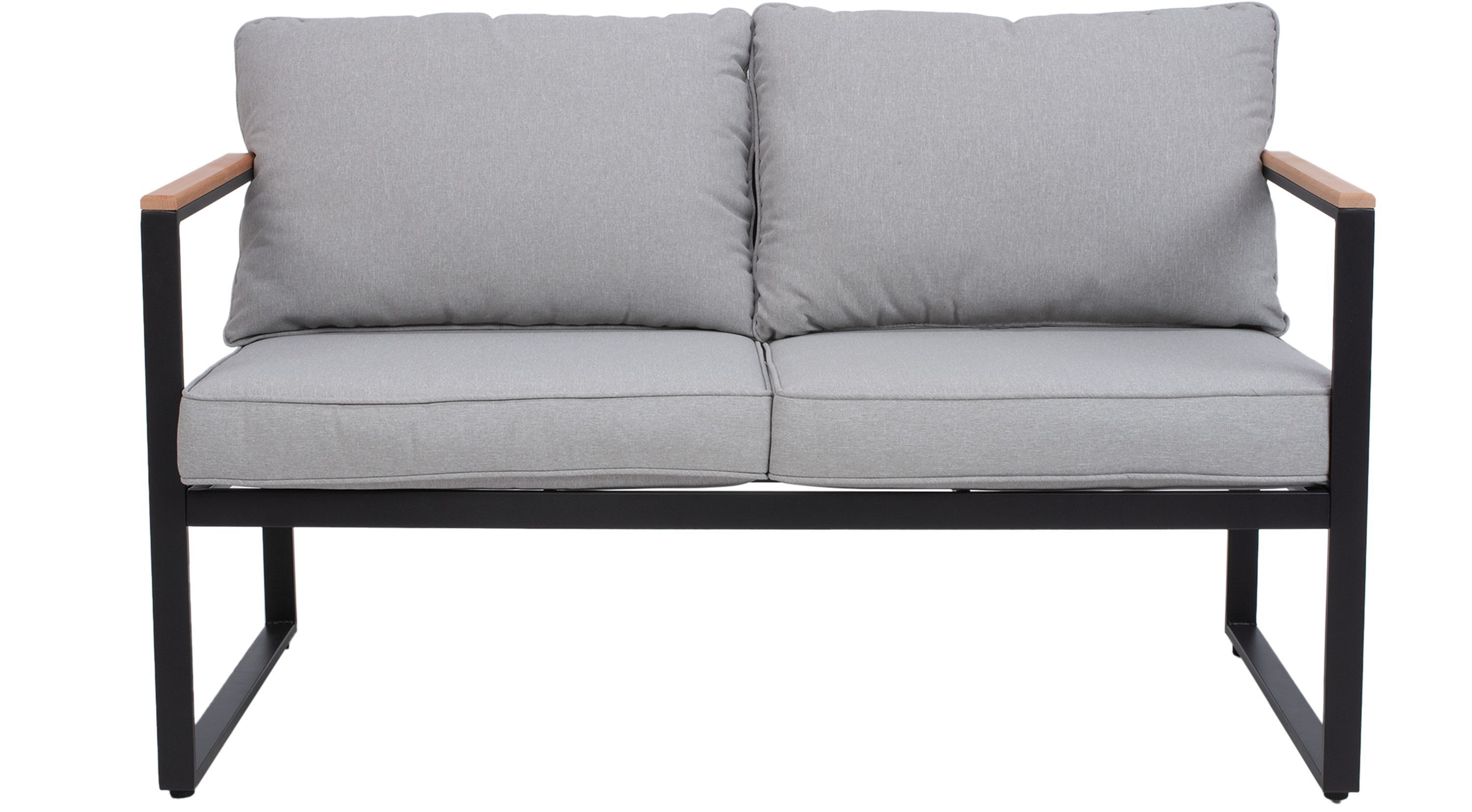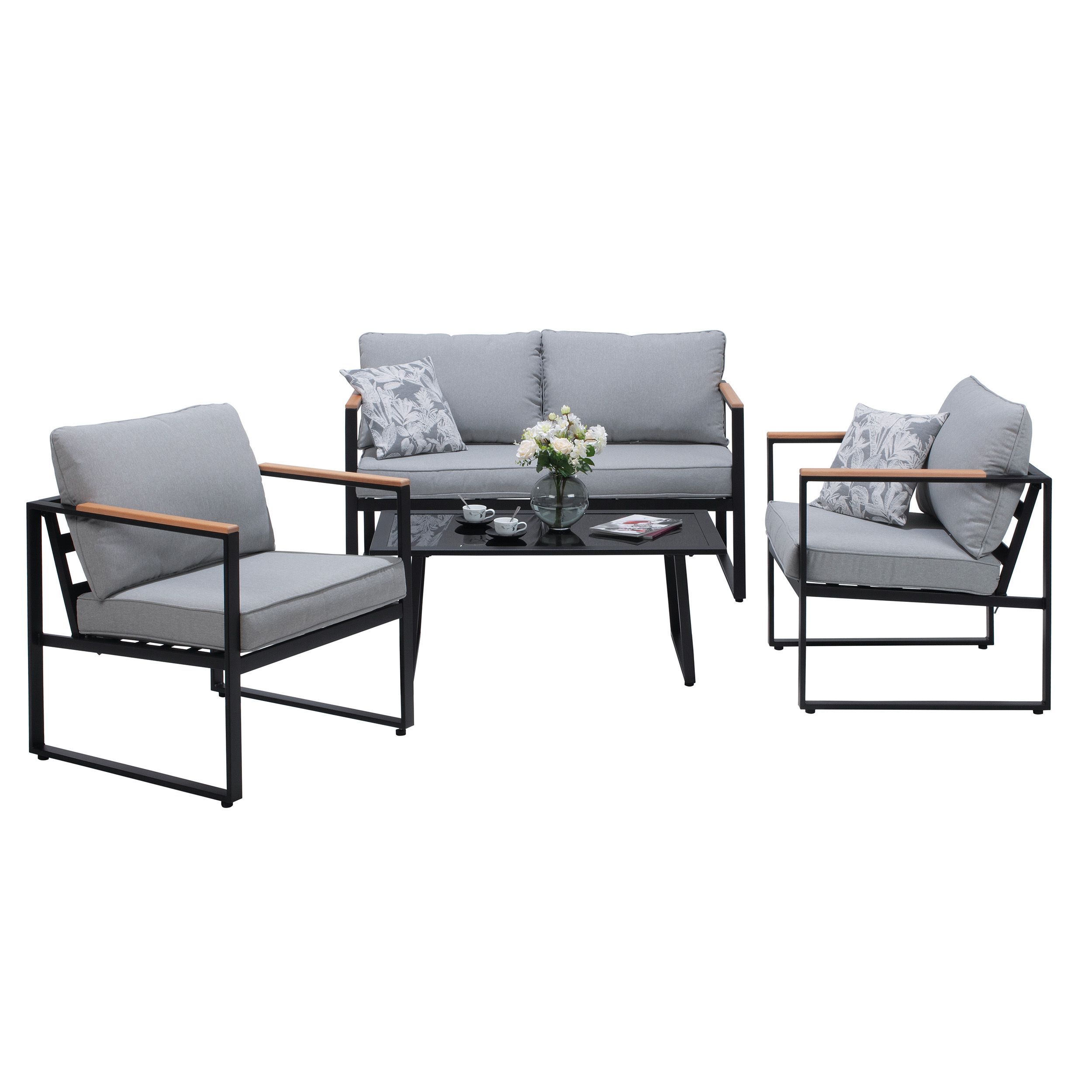 4-teilige Gartenlounge Stahl Schwarz Polster Grau Holz Akzente Outdoor