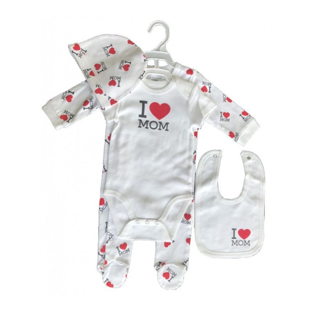 4-teiliges Baby-Bekleidungs-Set 'I Love MOM' | Body, Strampler, Mütze,