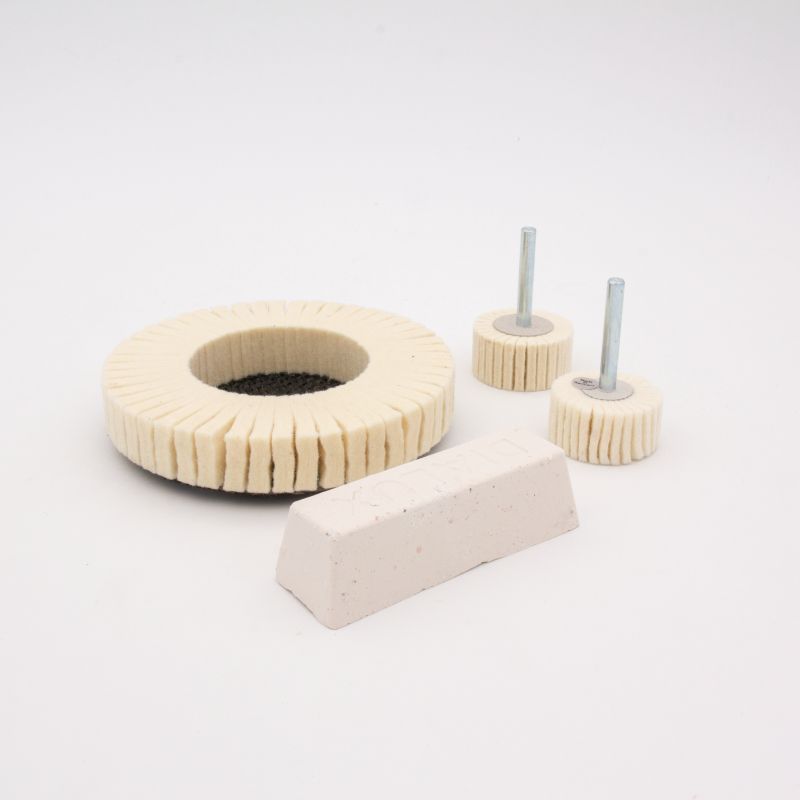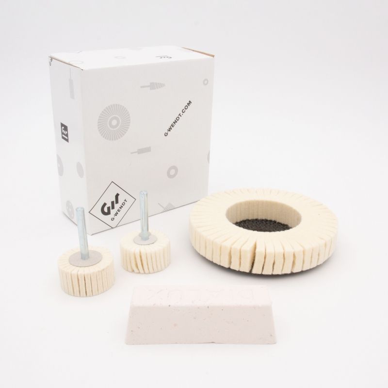 4-teiliges Filz-Polierset mit Fächerscheibe und Lamellenschleifer