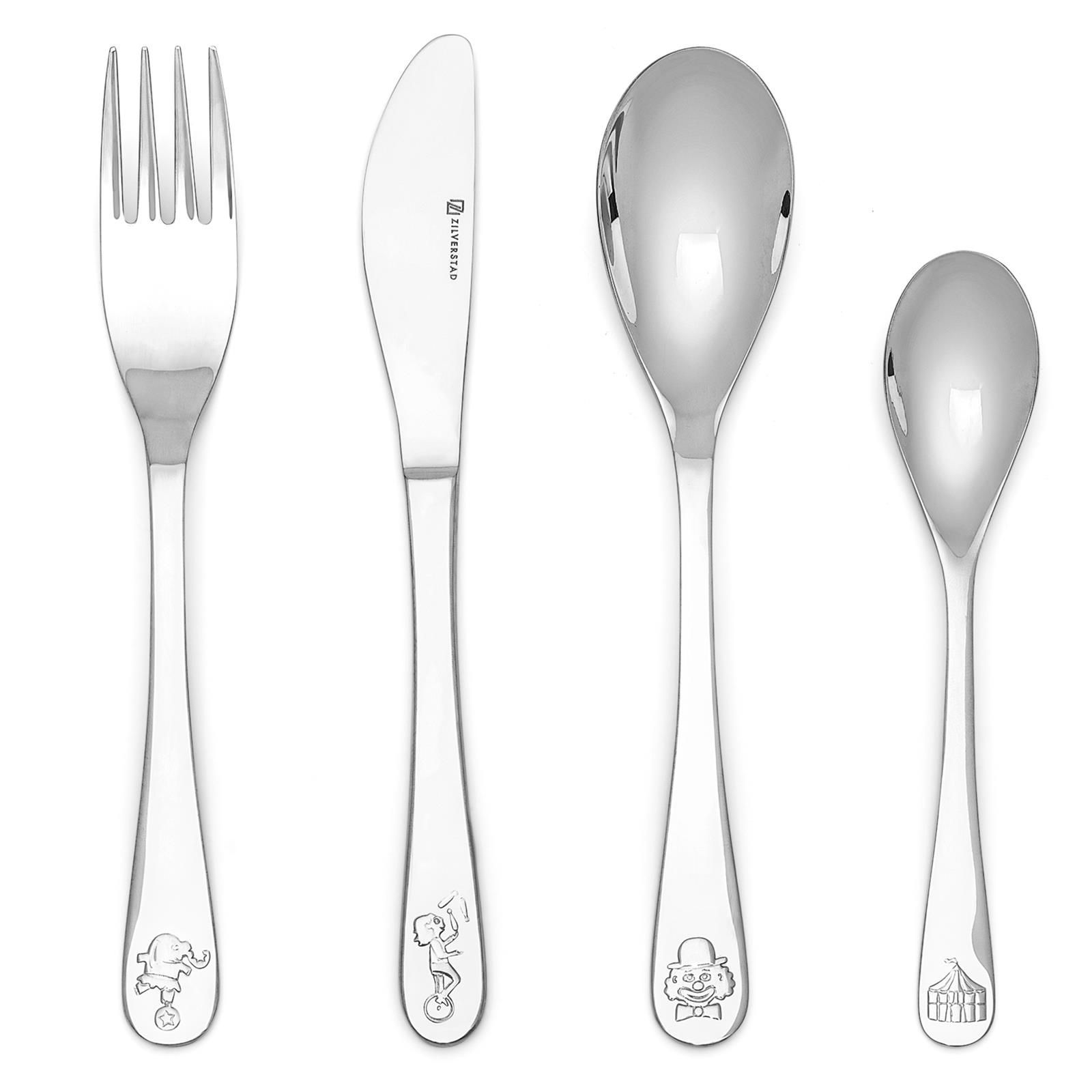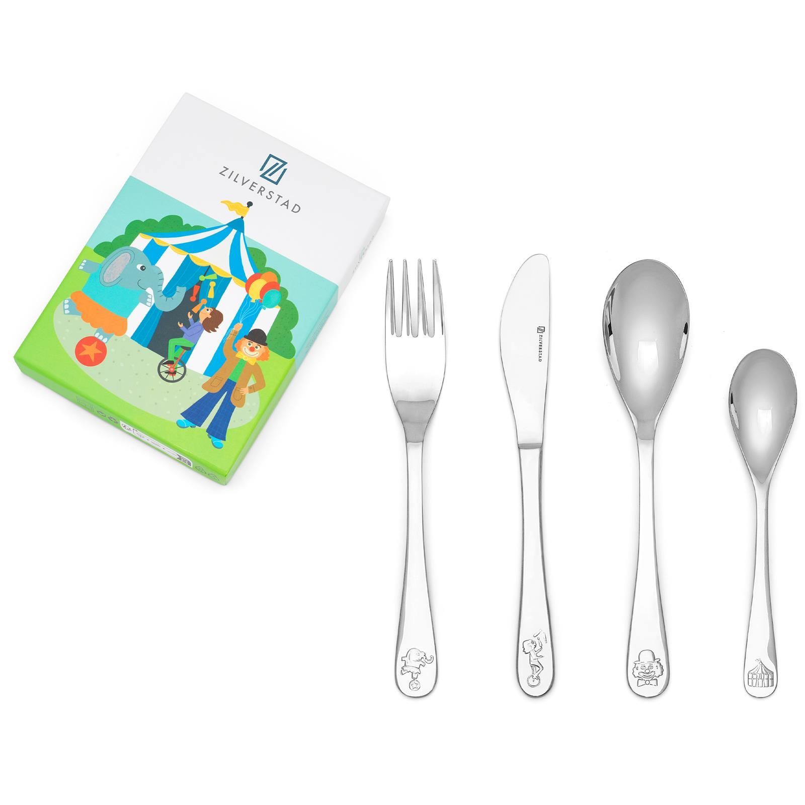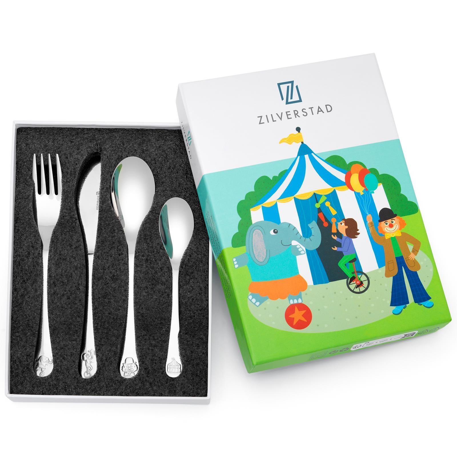 Zilverstad 4-teiliges Kinder Essbesteck Set 18/10 Edelstahl Besteck Motiv Zirkus rostfrei