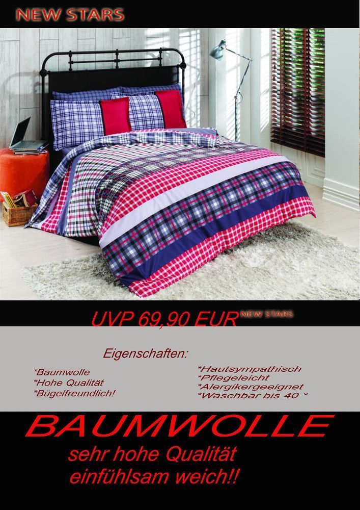 4 tlg Bettwäsche Bettgarnitur Baumwolle Renforcè 200x200 cm Scarlet #04 neu!