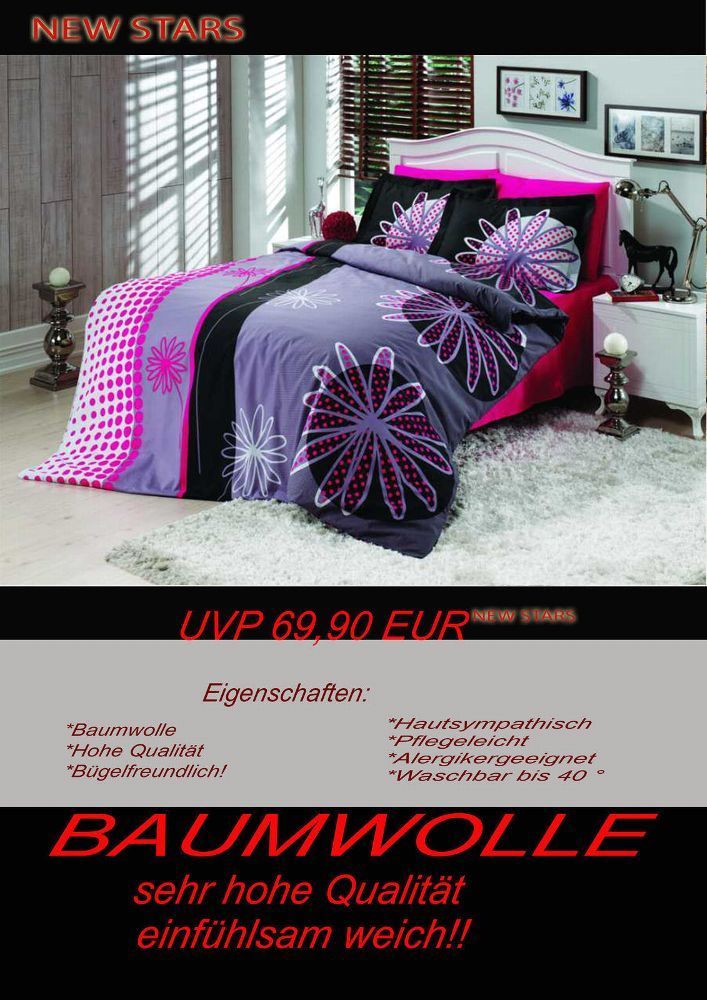 4 tlg Bettwäsche Bettgarnitur Baumwolle Renforcè 200x200 cm Scarlet #04 neu!