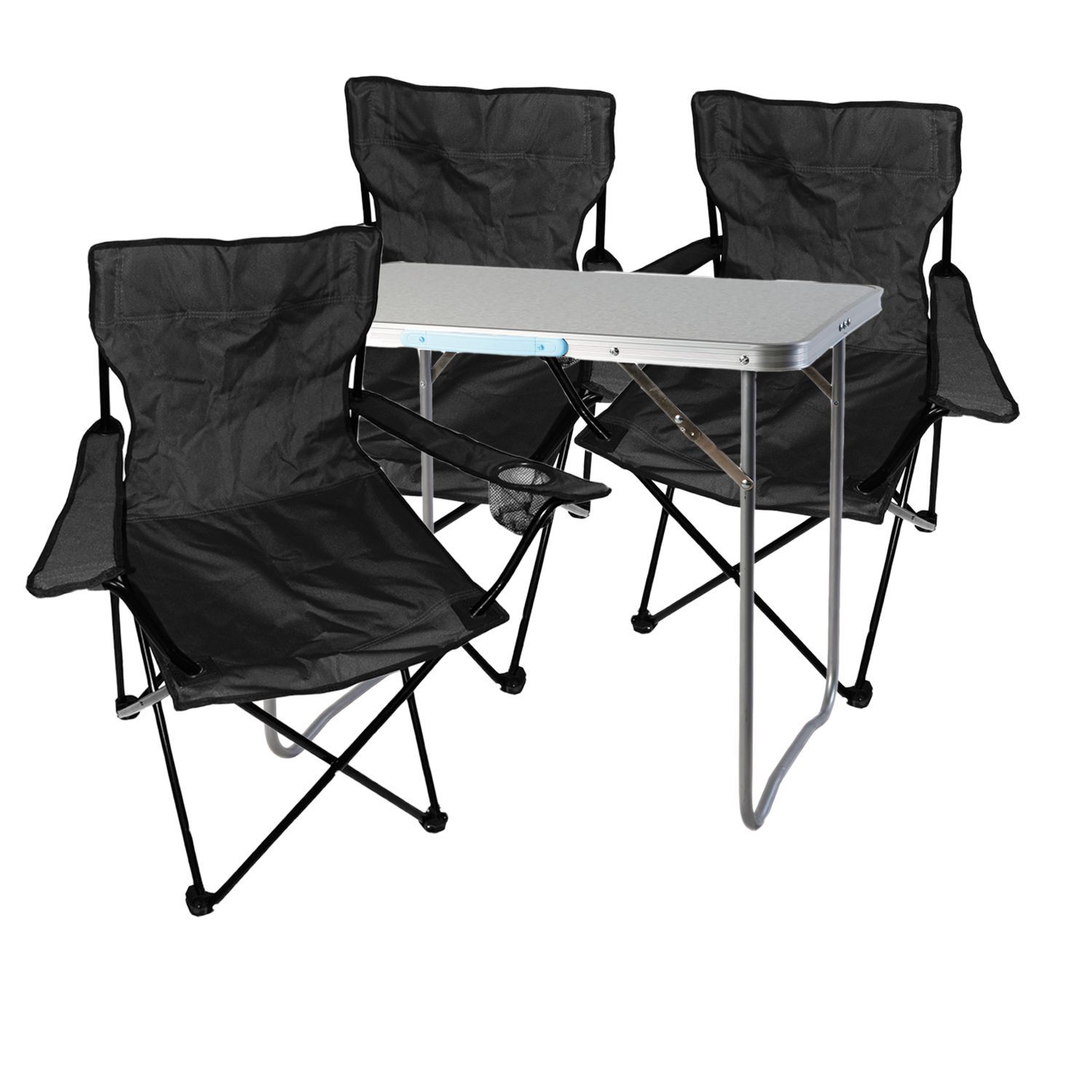 4-tlg. Schwarz Campingmöbel Set, Tisch mit Tragegriff und Stühle mit Tasche