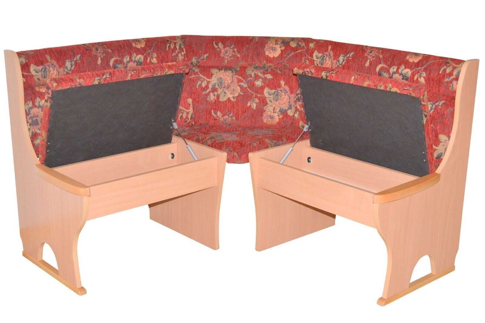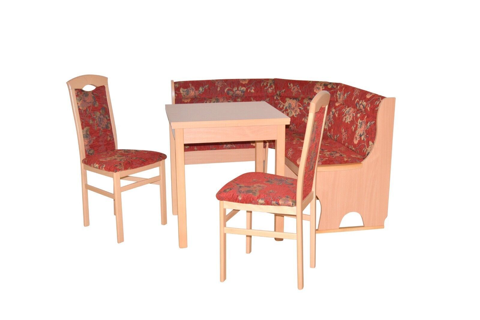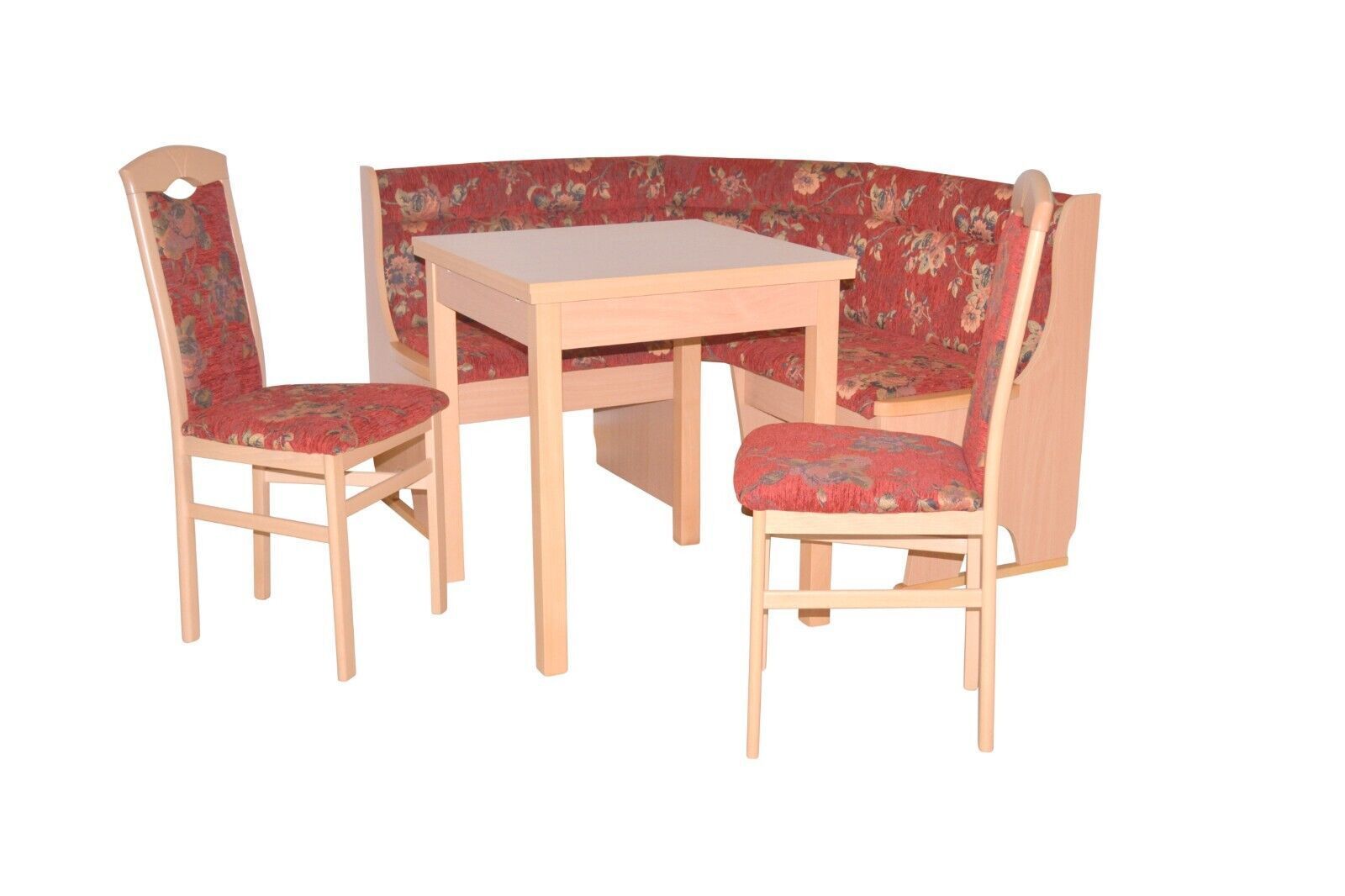 4 tlg. Truheneckbankgruppe Buche/ Blumen Stoff rot Essgruppe Tischgruppe Essecke