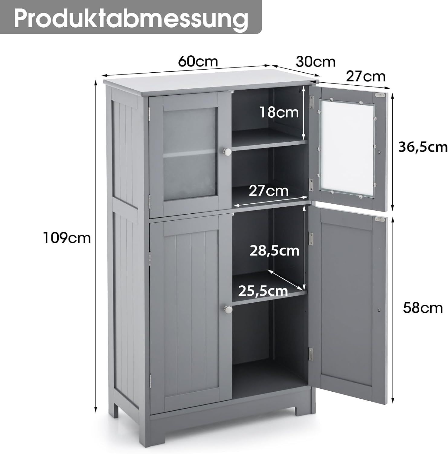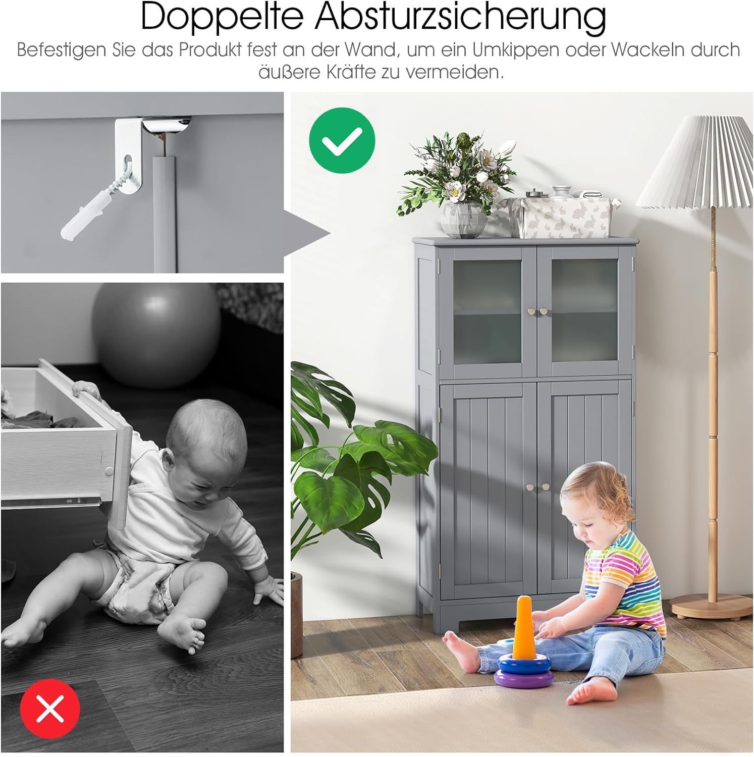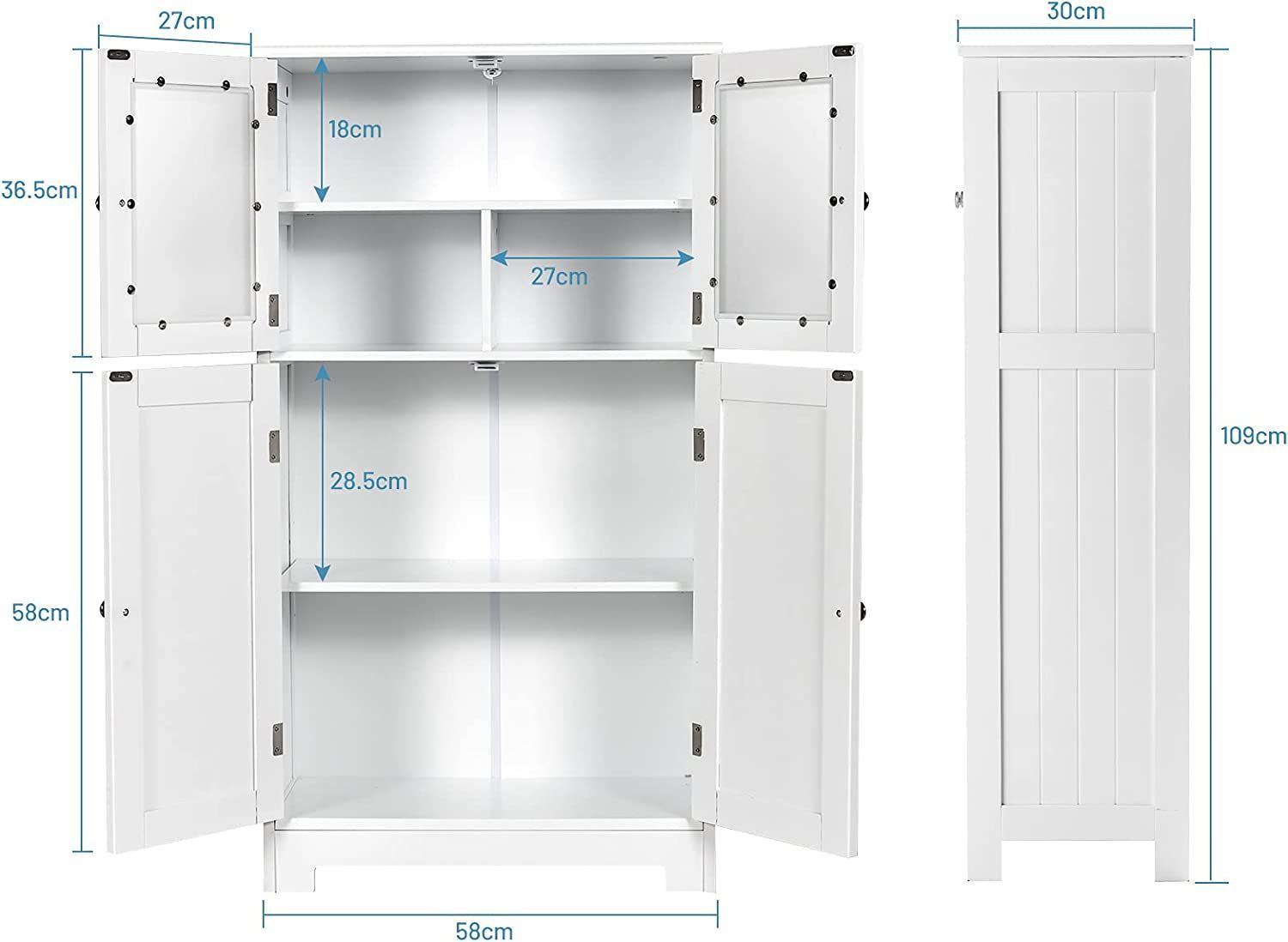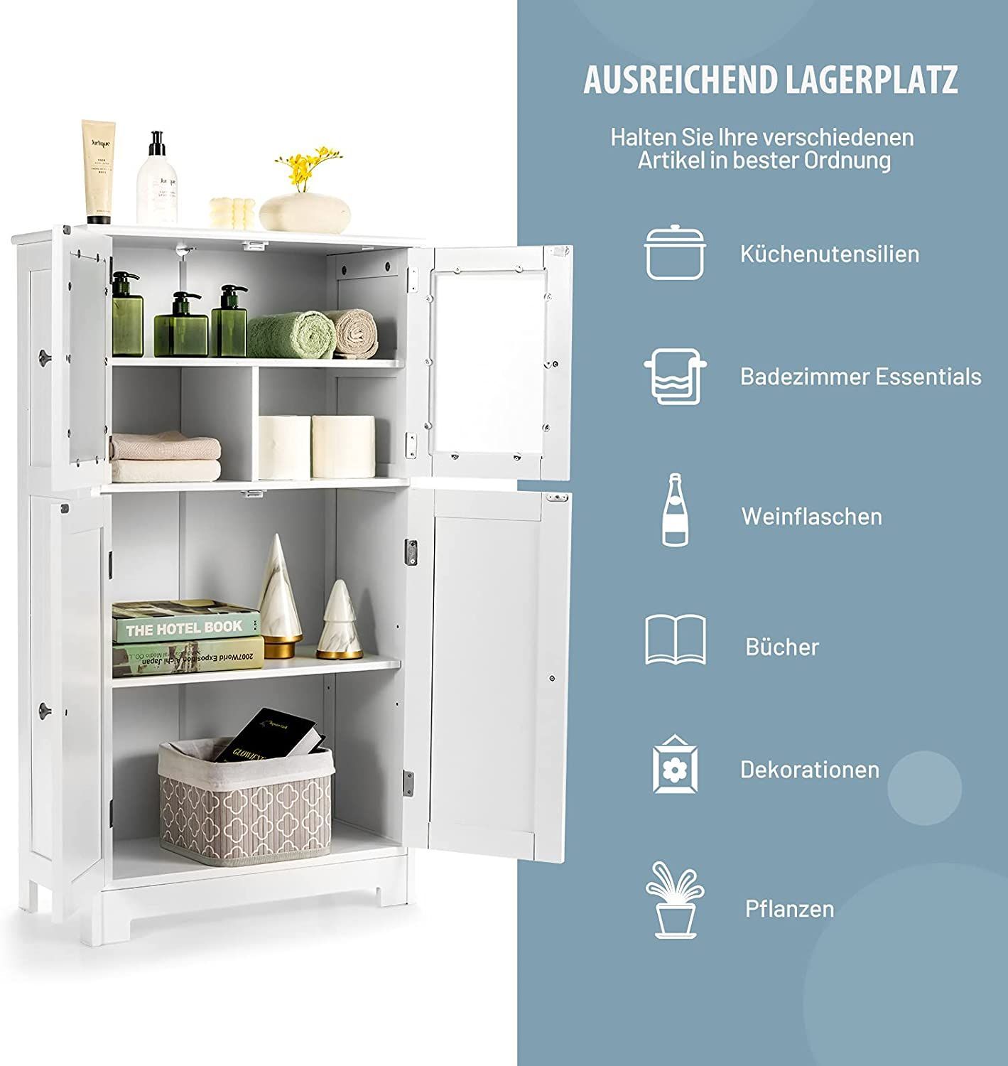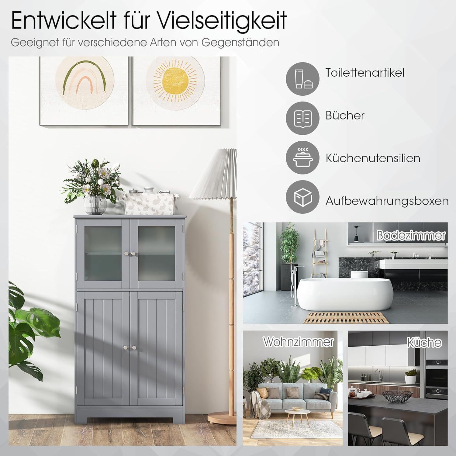 4-türiger Wohnzimmerschrank, Badezimmerschrank freistehend Aufbewahrungsschrank