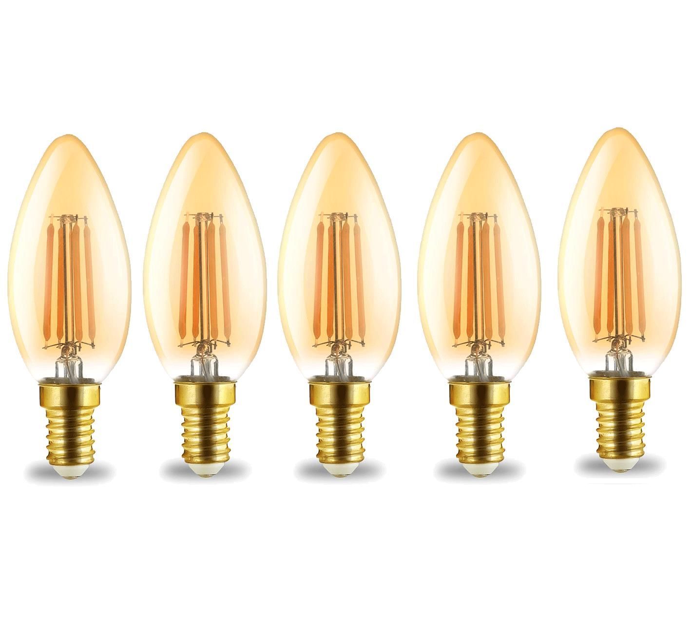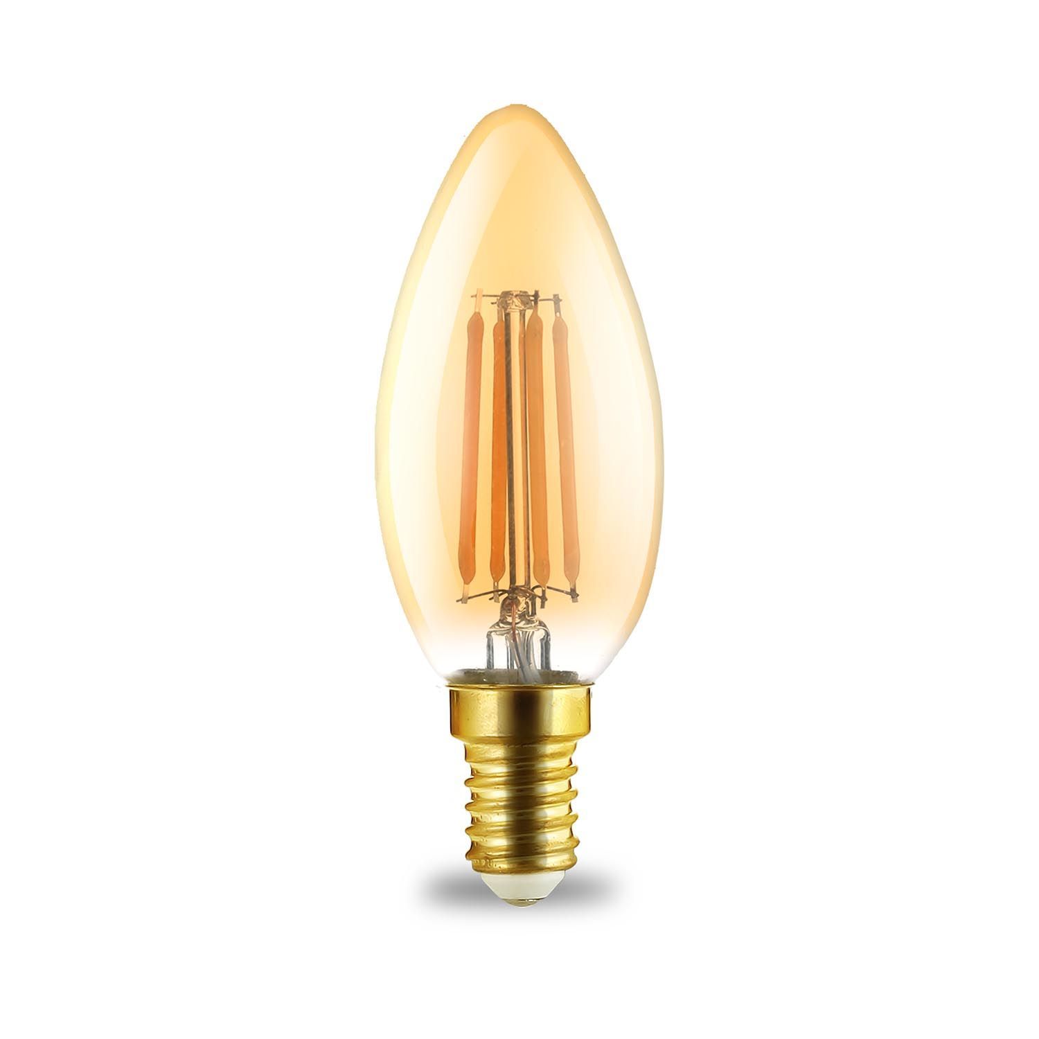 4 W E14 LED Leuchtmittel E14 Filament Kerze | bernstein | C35 | 360 Lumen warmweiß
