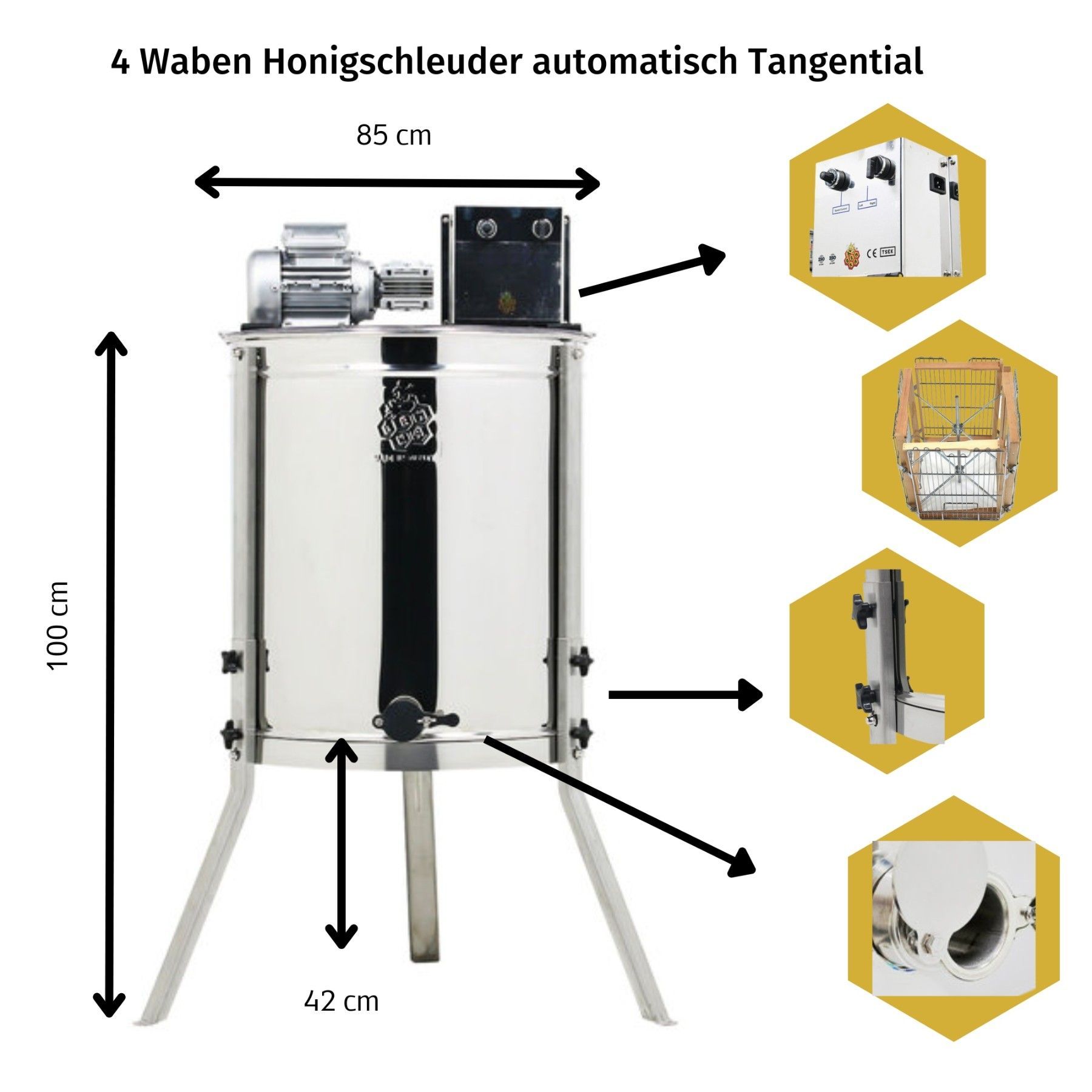 4 Waben elektrische Honigschleuder automatisch Tangential 180W Dadant Zander DNM