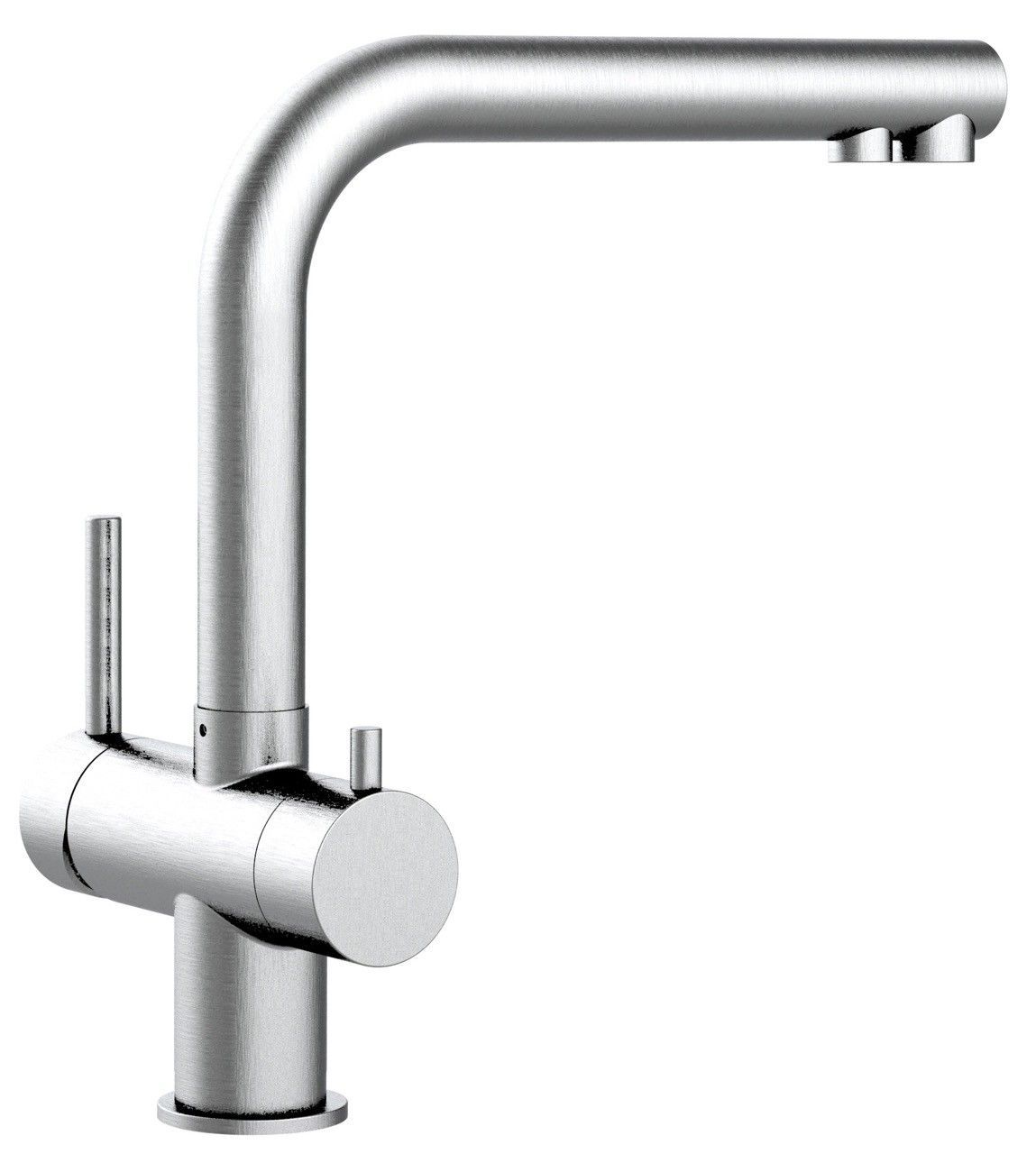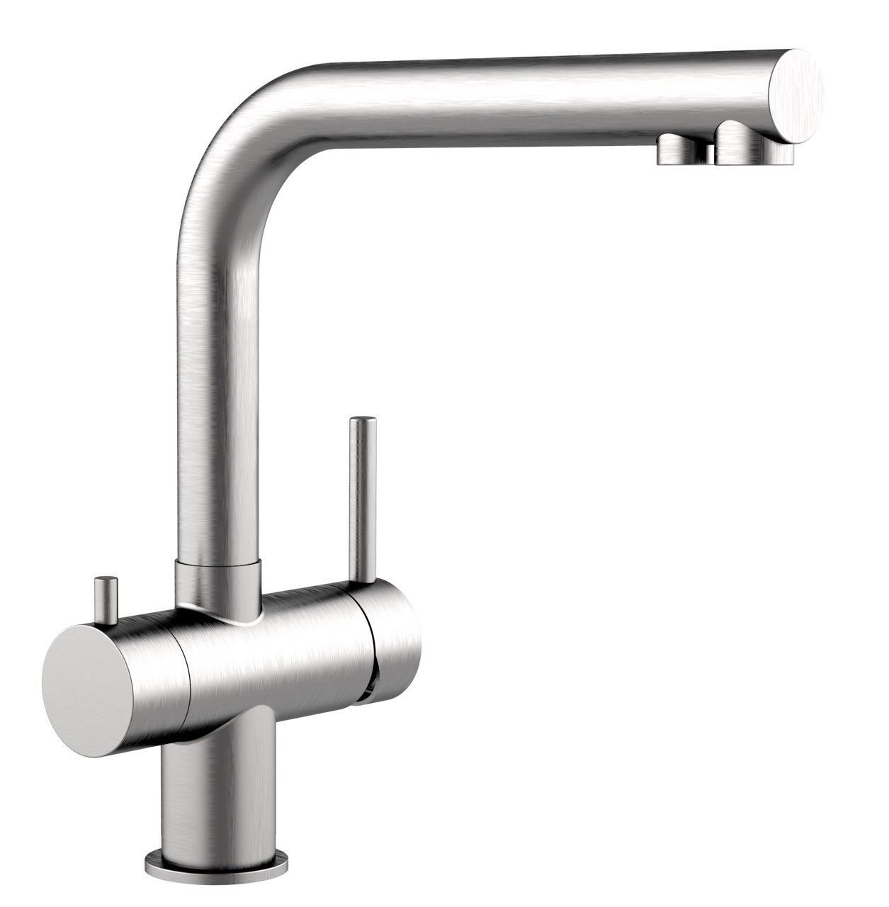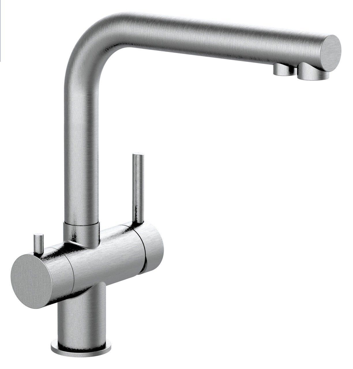 4-Wege-Wasserhahn Edelstahl Massiv Küchenarmatur schwenkbarer Auslauf, Gebürstet