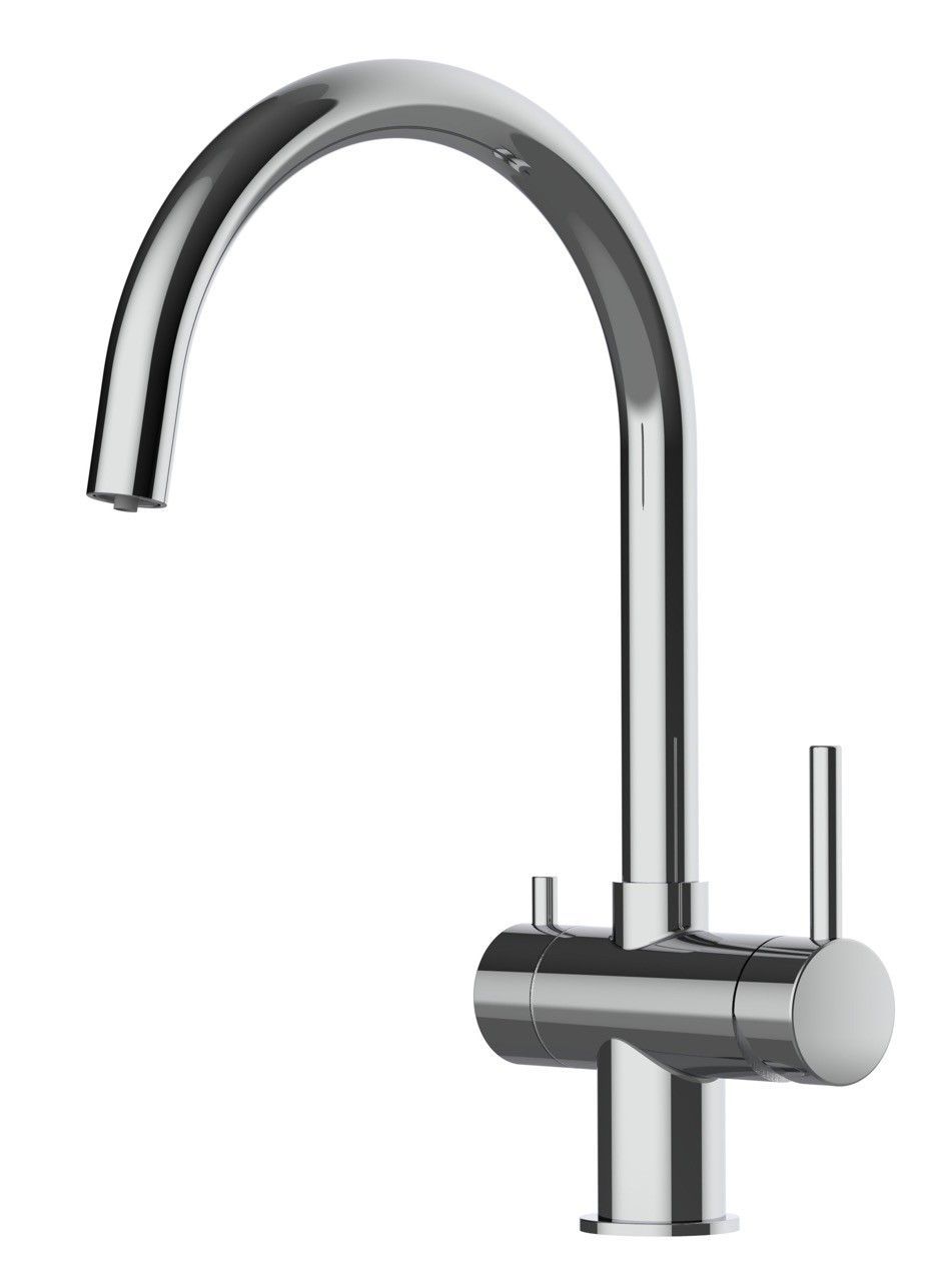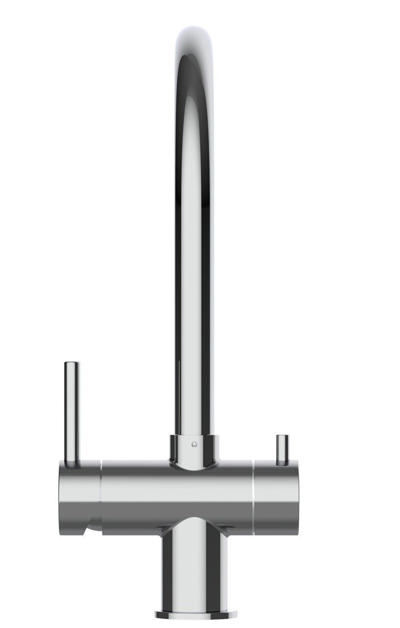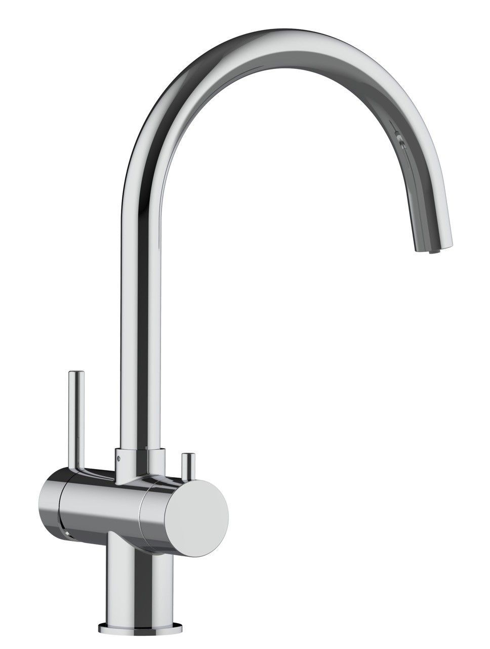 4-Wege-Wasserhahn Edelstahl Massiv Küchenarmatur schwenkbarer Auslauf, Hochglanz