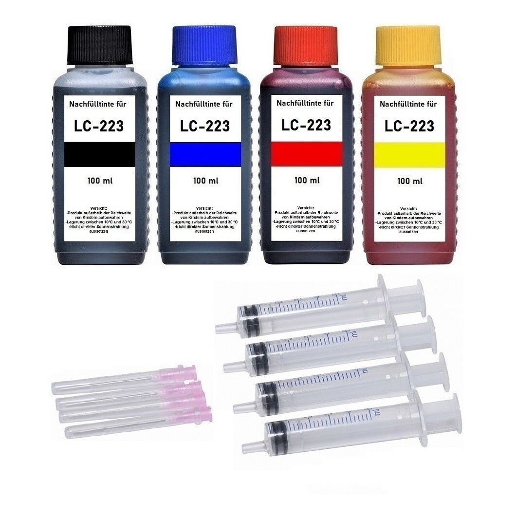 4 x 100 ml Nachfülltinte kompatibel mit Brother LC-221, LC-223, LC-225, LC-227