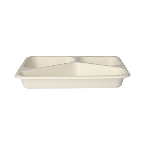 PAPSTAR 4 x 125 Siegelschalen, Zuckerrohr 3-geteilt 850 ml 3 cm x 17,5 cm x 22,5 cm weiss