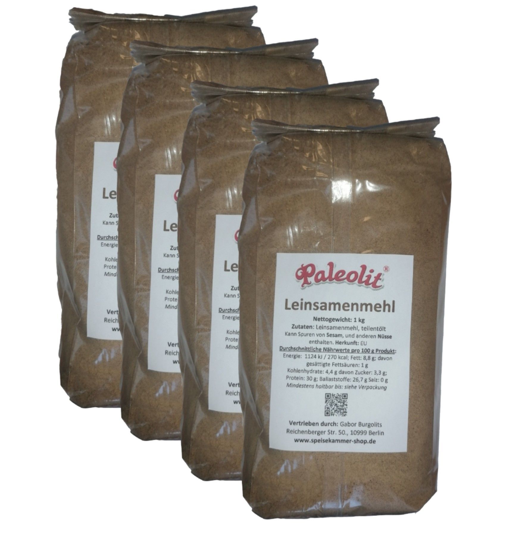 4 x 1kg Leinsamenmehl teilentölt Glutenfrei Leinmehl Vegan