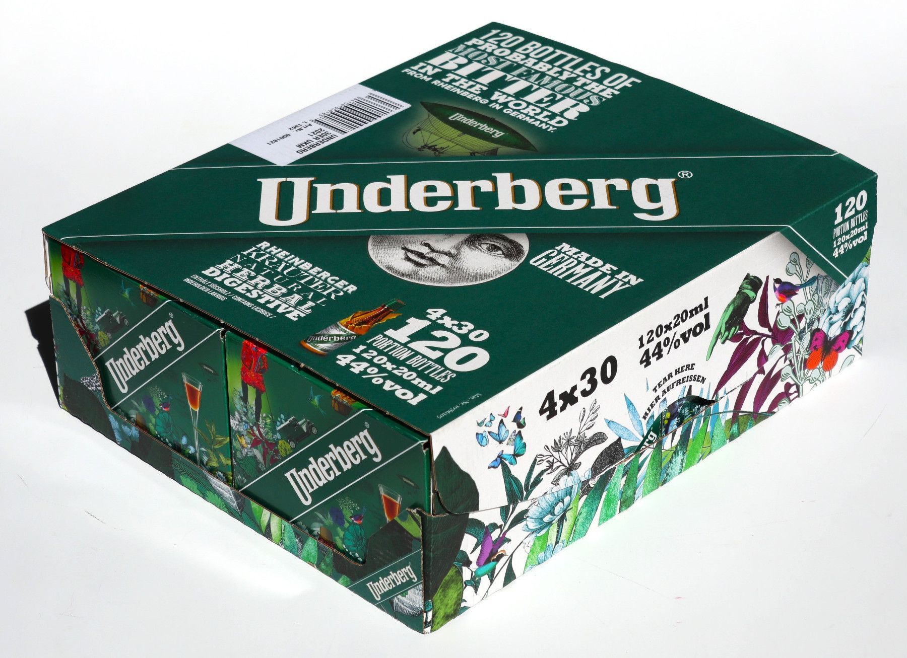 4 x 30 = 120 Flaschen Underberg Kräuterlikör 44% Vol. 0,02 l im Karton