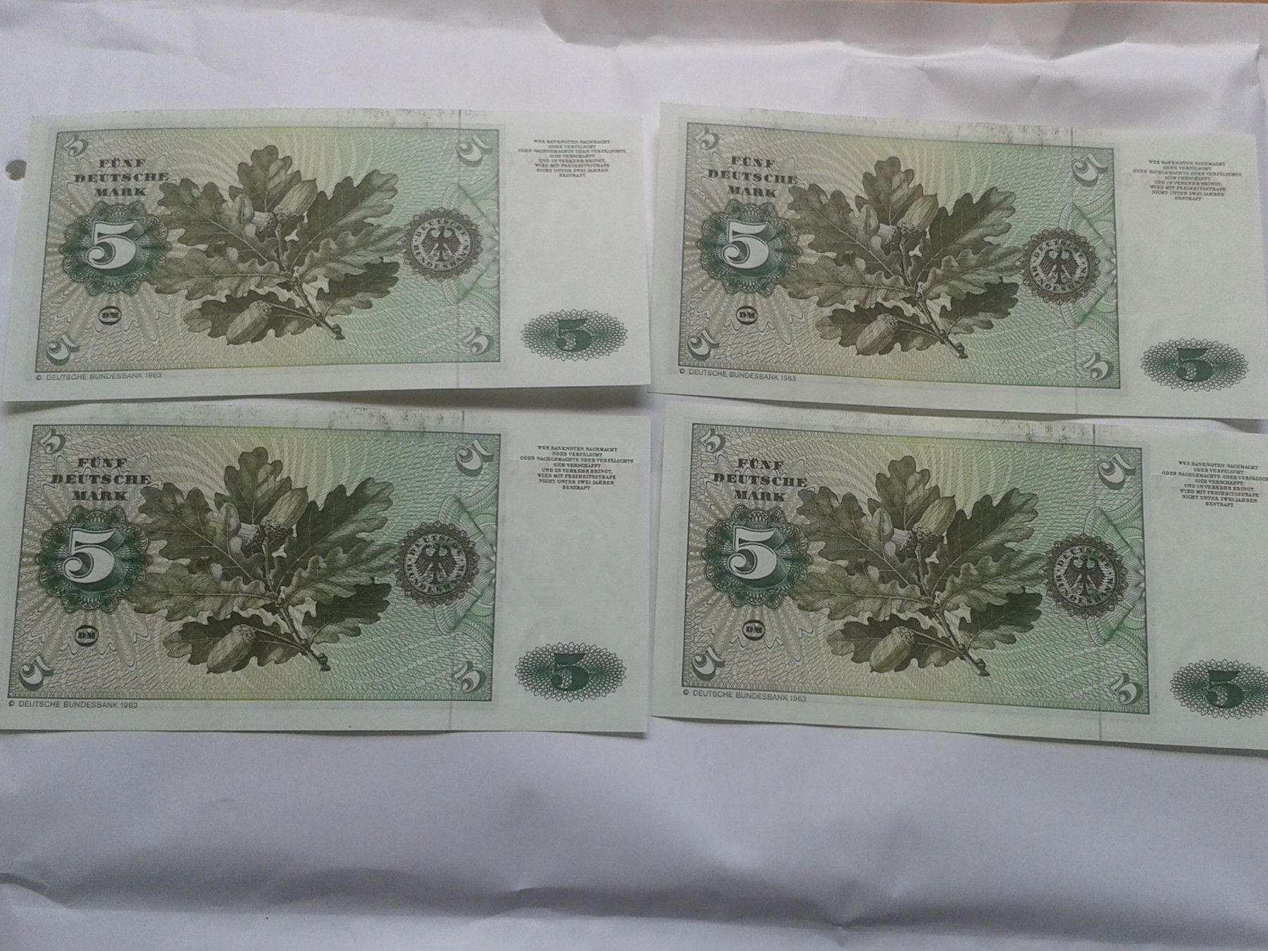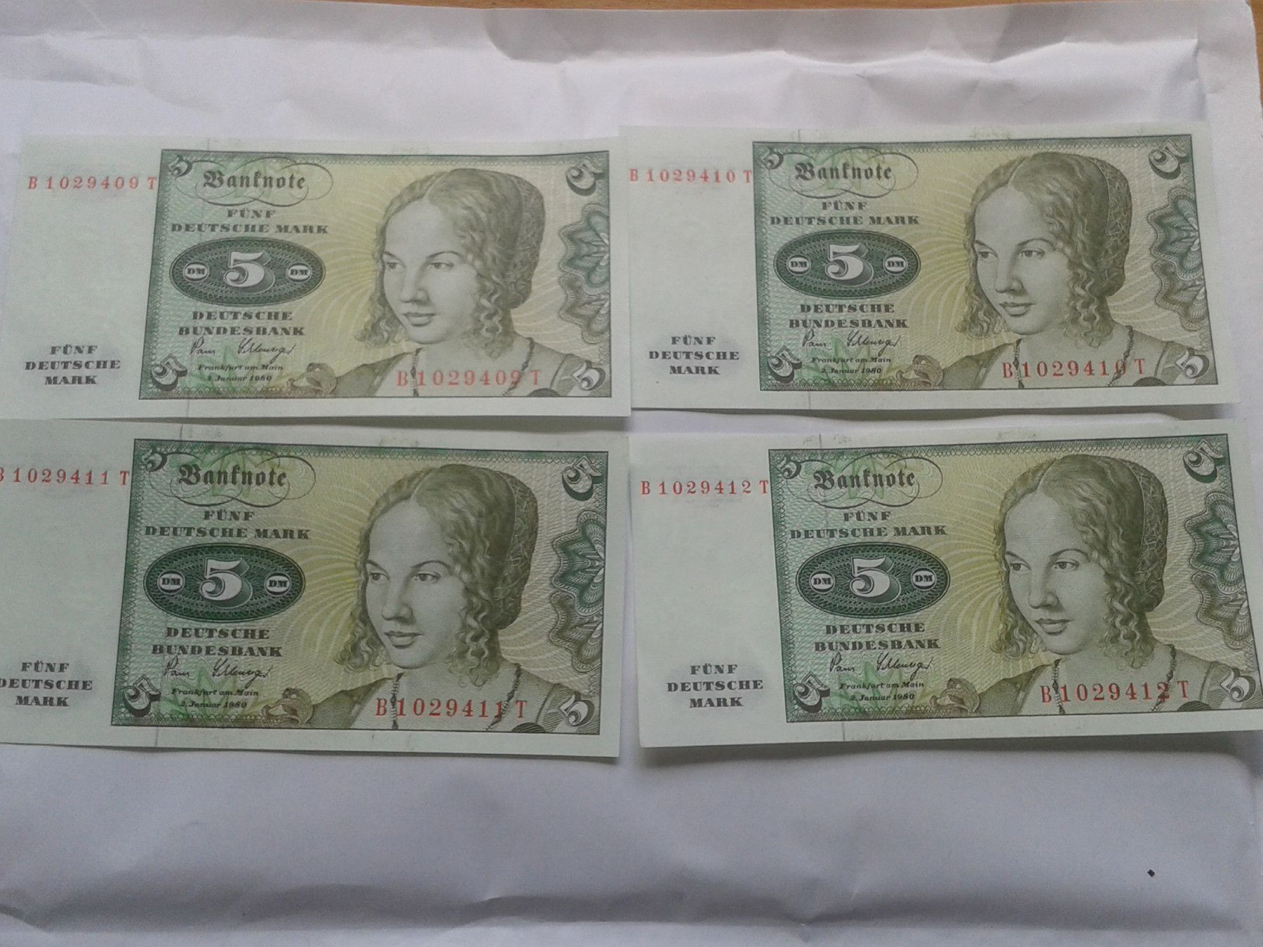 4 x 5 Mark 2.1.1980 Scheine Deutschland kassenfrisch fortlaufend nummeriert