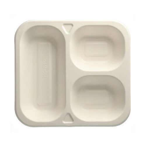 PAPSTAR 4 x 50 Siegelschalen, Zuckerrohr 3-geteilt 1350 ml 4,2 cm x 24,5 cm x 26,5 cm weiss