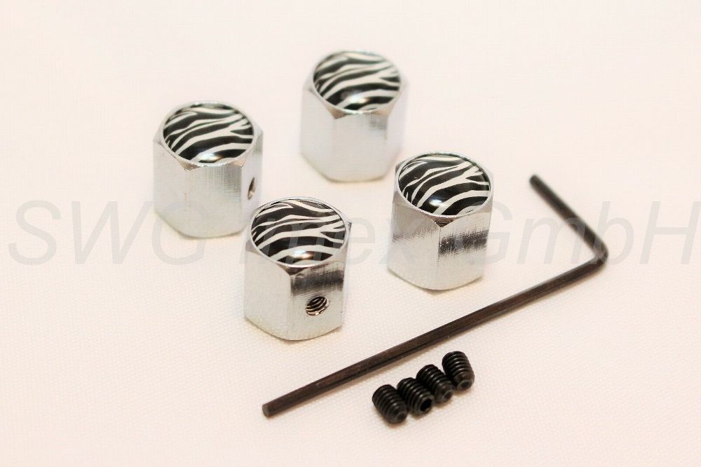 4 X Auto Ventilkappe Ventilkappen Chrom Farbe ZEBRA zebras für alle KFZ PKW