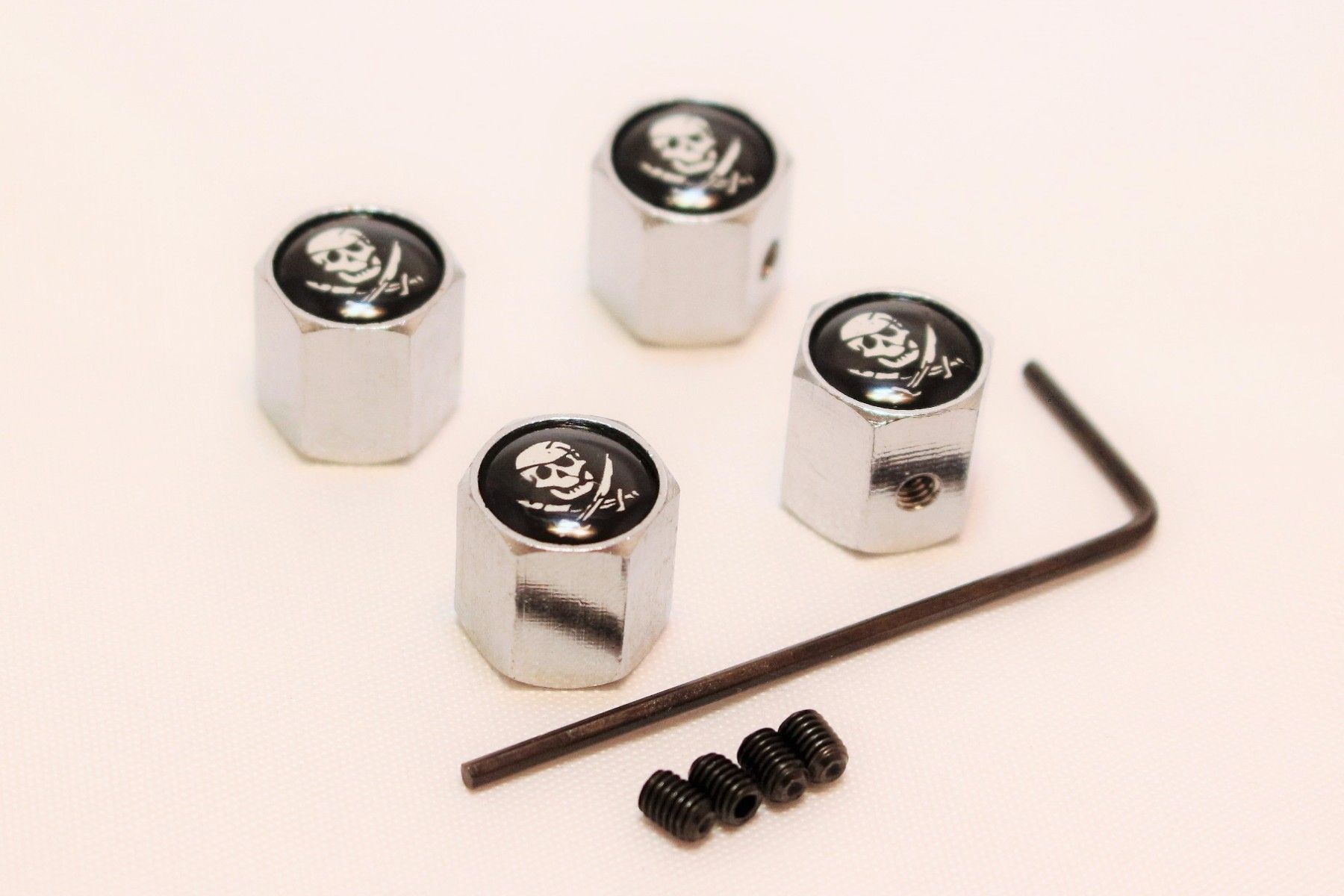 4 X Auto Ventilkappe Ventilkappen Chrom Piratenschädel Piraten schädel KFZ PKW
