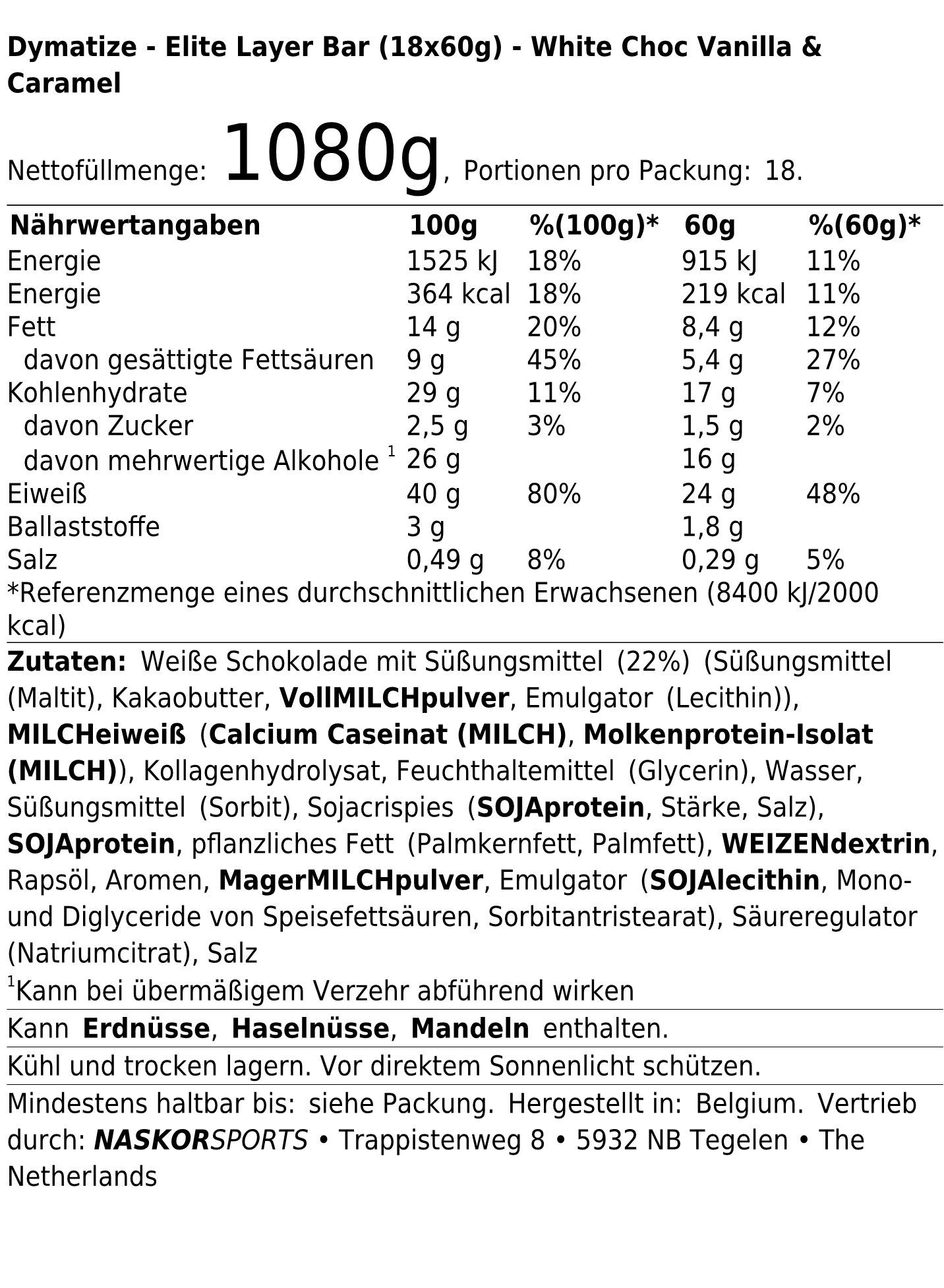 4 x Dymatize Elite Layer Bar (18x60g) White Choc Vanilla and Caramel