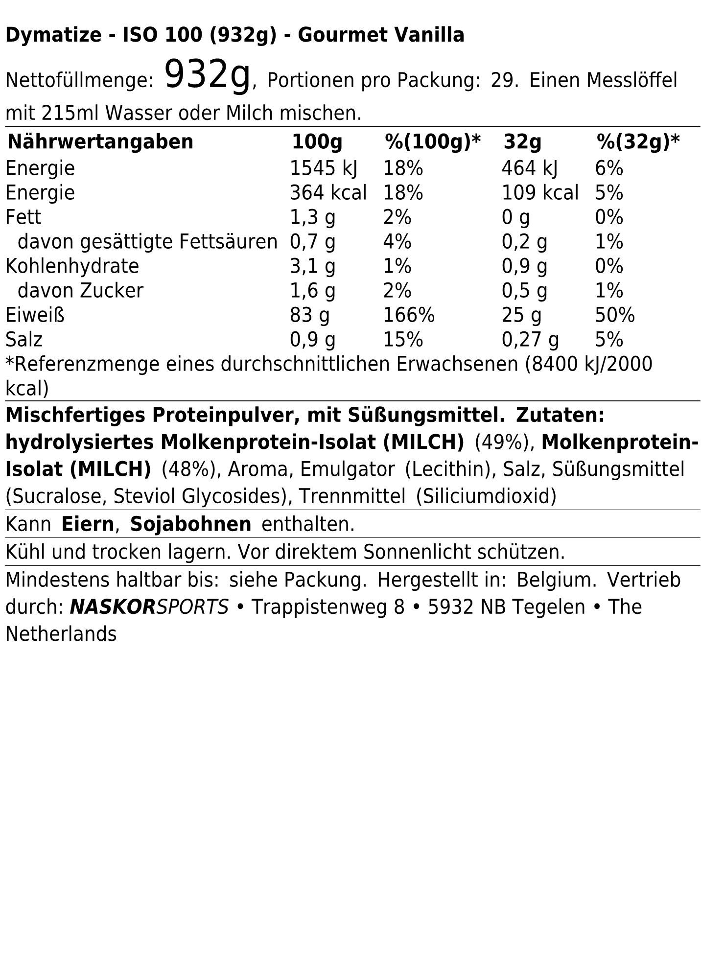 4 x Dymatize ISO 100 (932g) Gourmet Vanilla